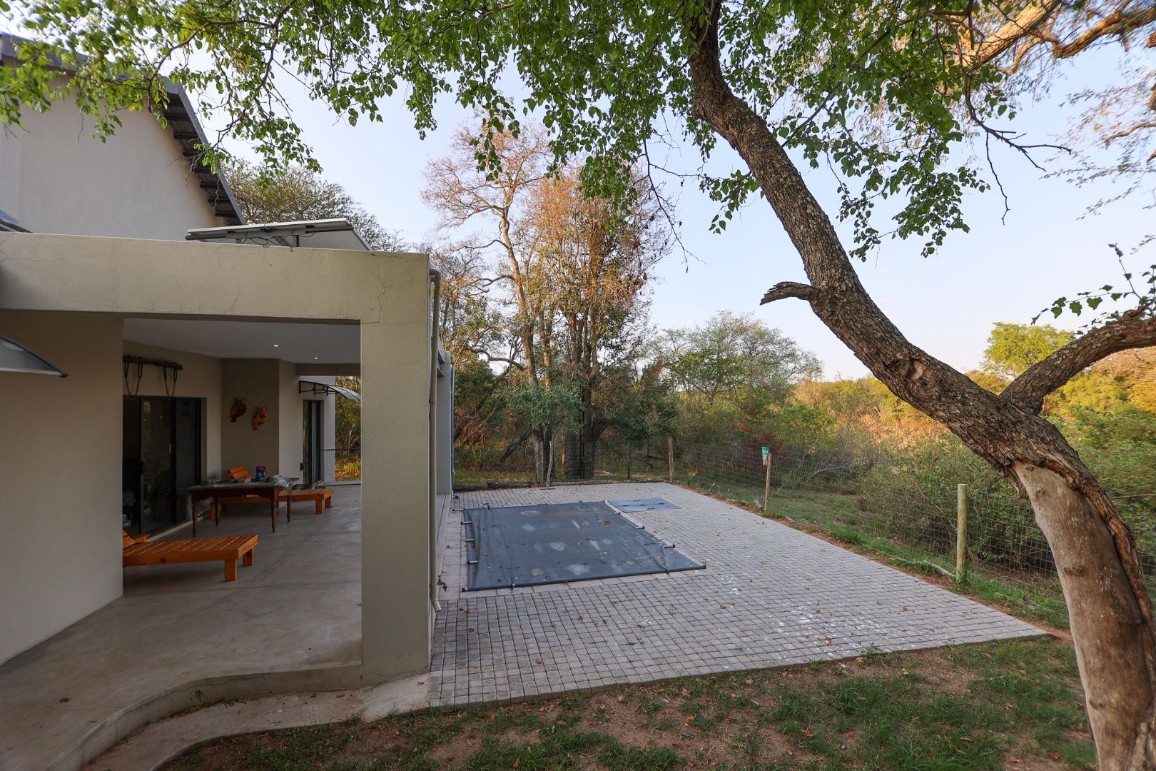 Outside, the large covered patio is just waiting for you to kick back and relax, with sliding doors creating a seamless indoor-outdoor flow. You've got your own private plunge pool, a lapa, and a fantastic outdoor braai area with built-in seating – ideal for entertaining. The natural garden and scenic views truly complete this bushveld oasis. The modern architectural style blends beautifully with the natural surroundings, offering a unique and appealing aesthetic.