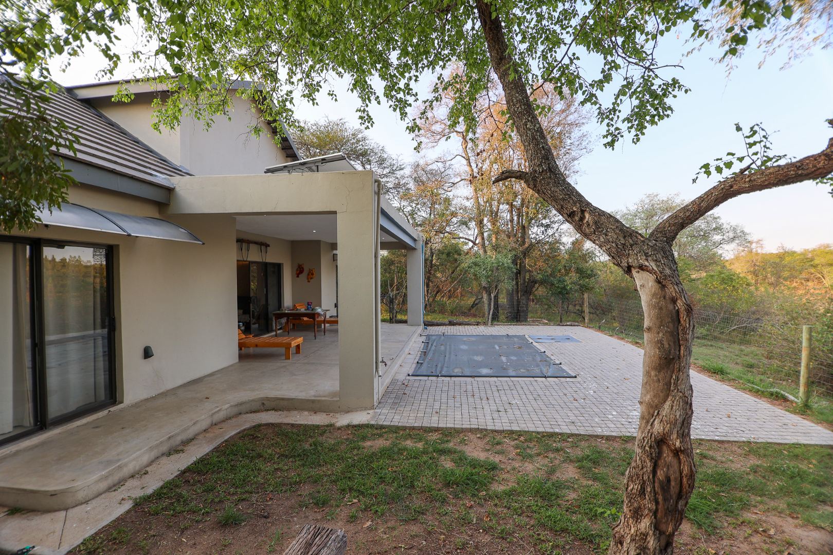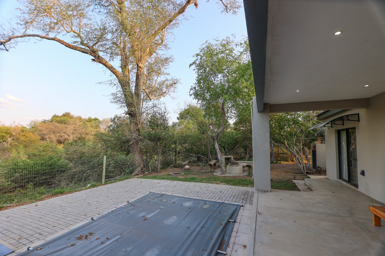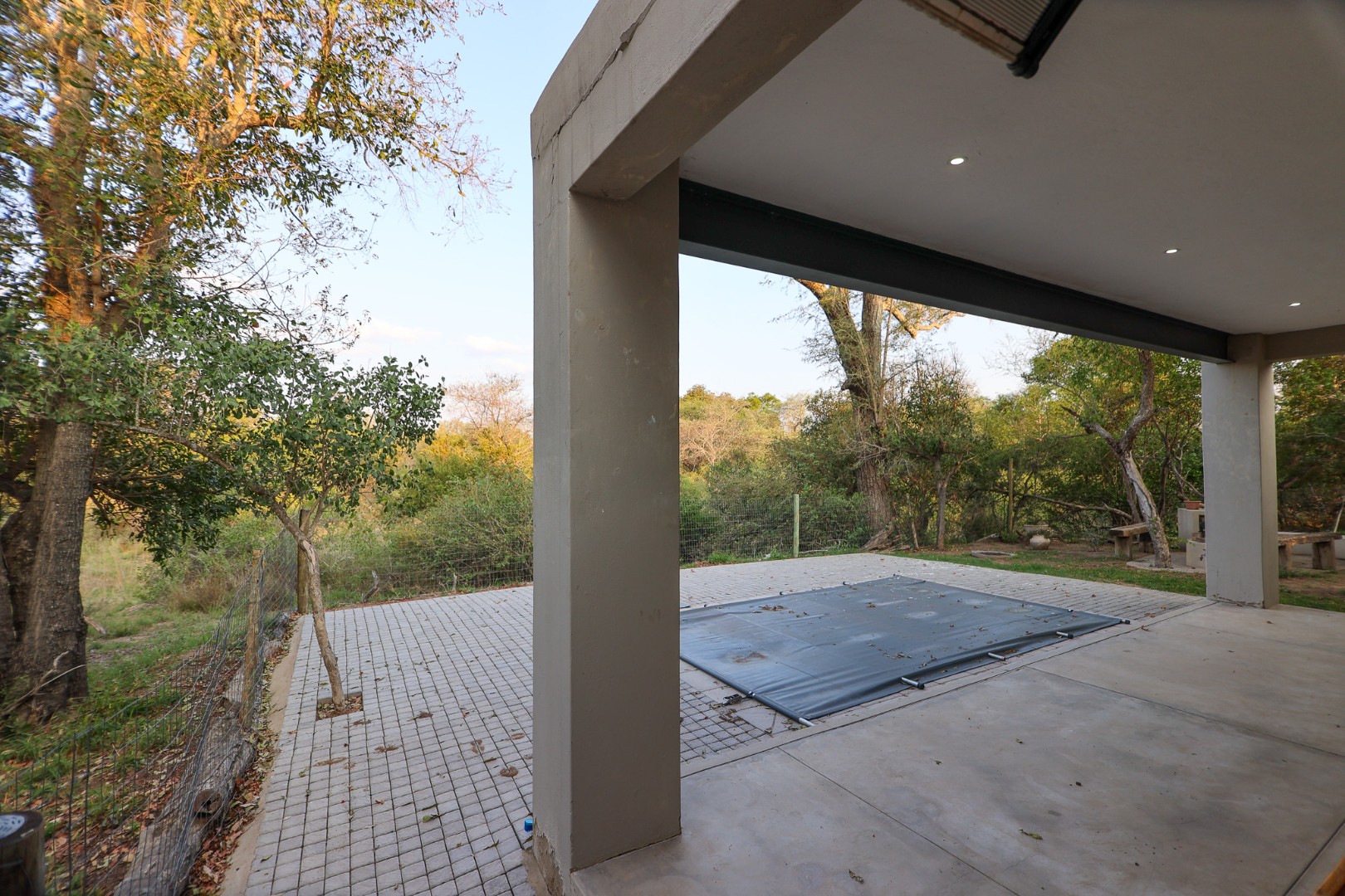 Outside, the large covered patio is just waiting for you to kick back and relax, with sliding doors creating a seamless indoor-outdoor flow. You've got your own private plunge pool, a lapa, and a fantastic outdoor braai area with built-in seating – ideal for entertaining. The natural garden and scenic views truly complete this bushveld oasis. The modern architectural style blends beautifully with the natural surroundings, offering a unique and appealing aesthetic.