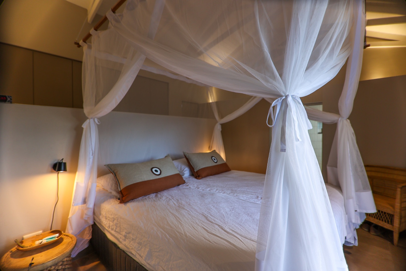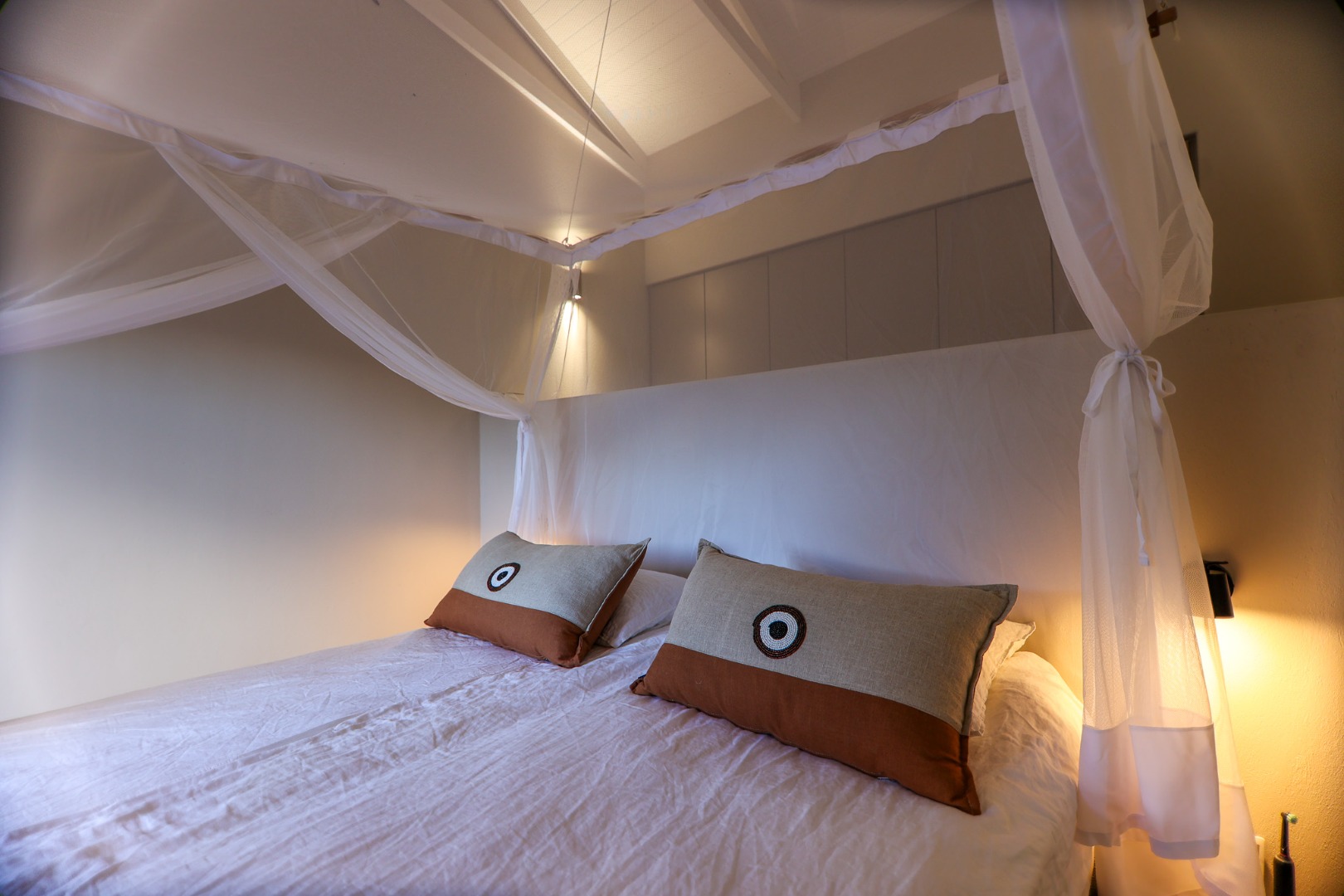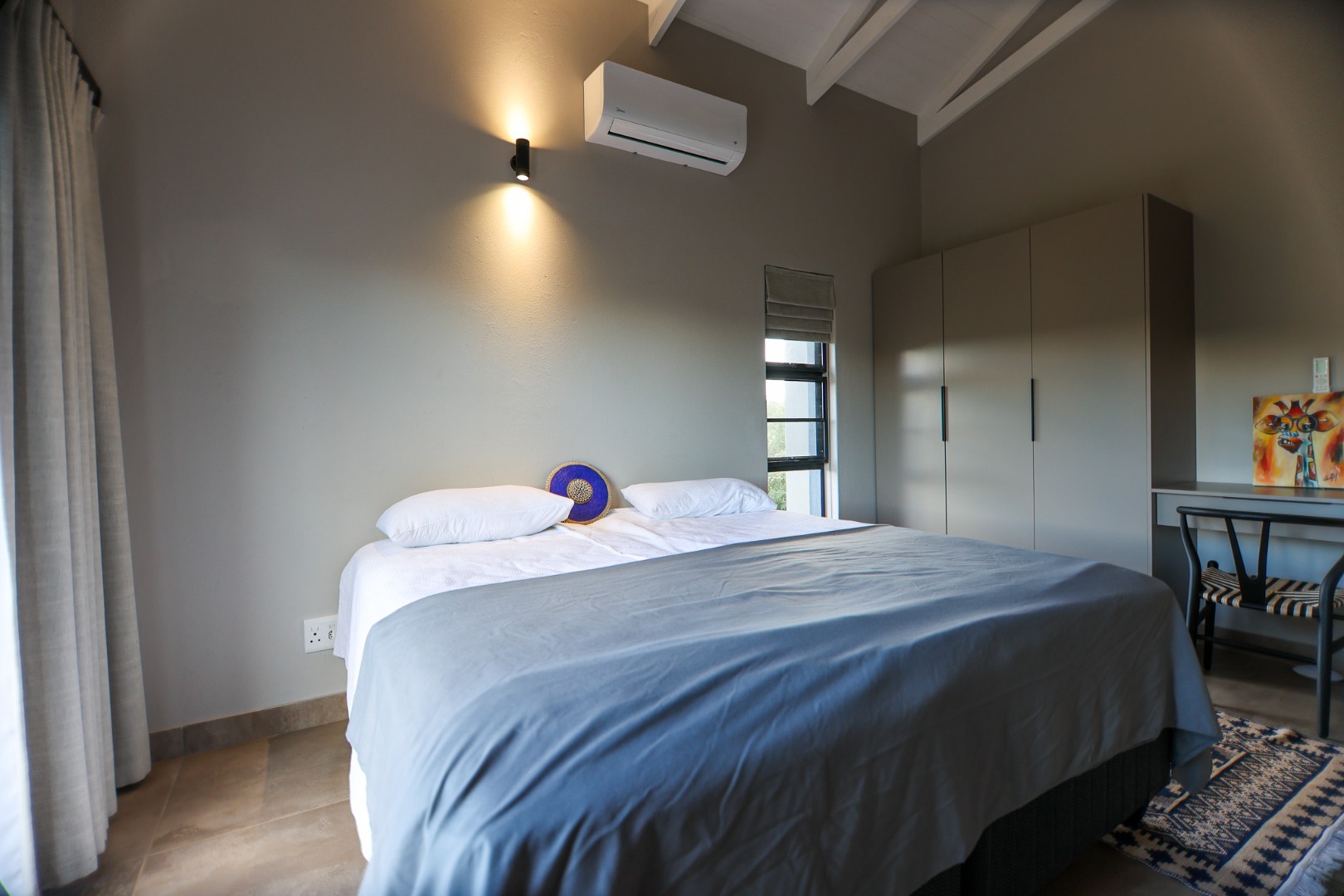features three spacious bedrooms, each equipped with air conditioning, ceiling fans, and mozzie screens to ensure a restful night’s sleep. The main bedroom