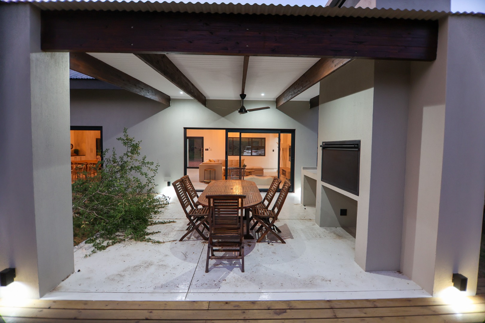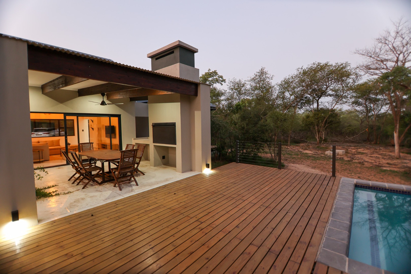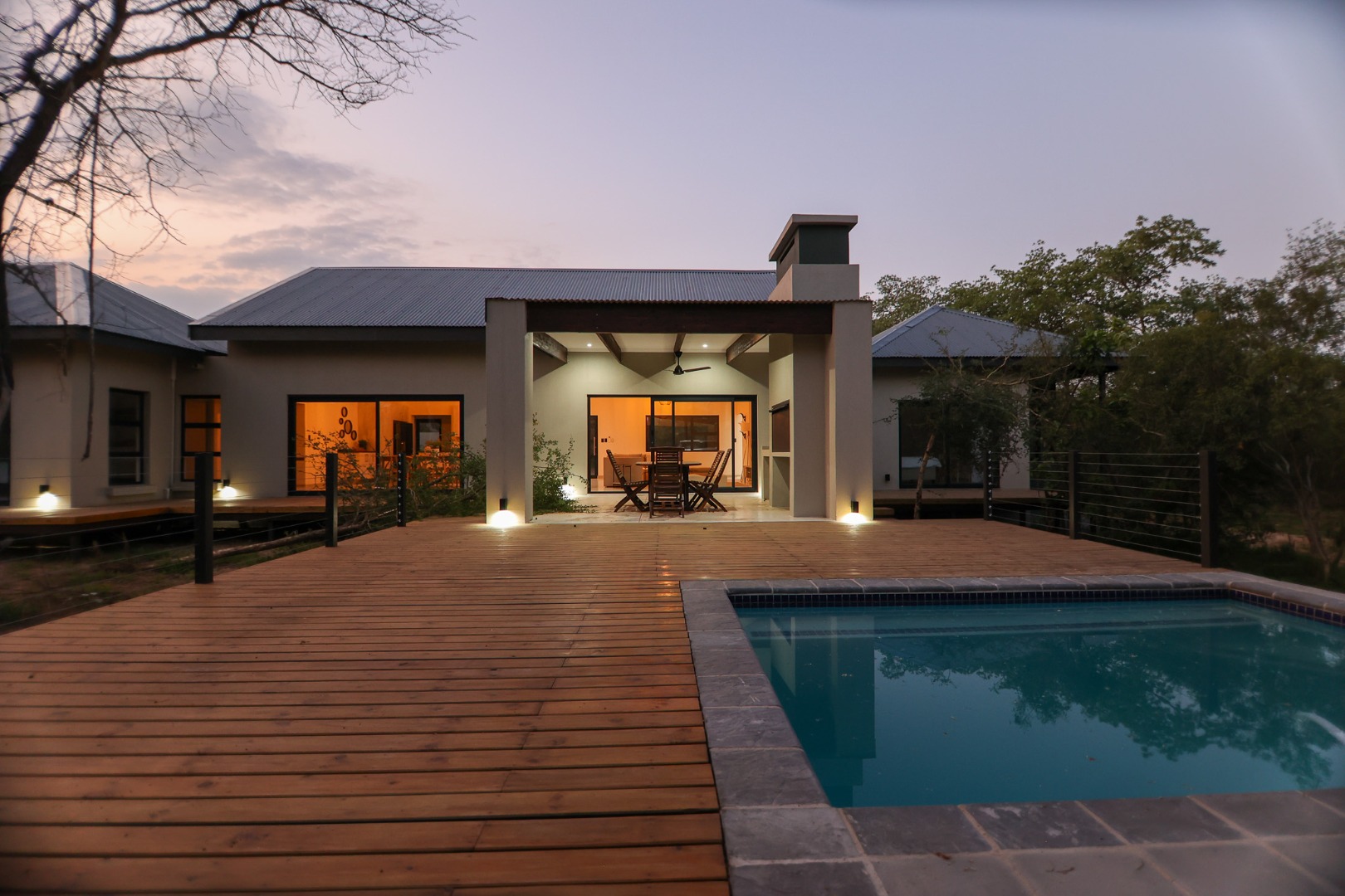 Discover an exceptional furnished rental opportunity within the prestigious Moditlo Nature Reserve, Hoedspruit. This modern 3-bedroom, 3.5-bathroom home offers a seamless blend of contemporary design and immersive bushveld living, ideal for those seeking a tranquil escape or a long-term nature-inspired lifestyle. The property boasts an expansive open-plan layout, featuring high vaulted ceilings with exposed trusses and large sliding doors that invite abundant natural light and connect effortlessly to the outdoors. The interior comprises a well-appointed kitchen, a dedicated dining room, a comfortable lounge, and an additional family TV room, all designed for spacious and functional living. Each of the three bedrooms benefits from an en-suite bathroom, ensuring privacy and convenience for all residents. The home is fully furnished, providing a ready-to-move-in experience with air conditioning for comfort in the African climate and a fireplace for cooler evenings. Step outside to embrace the quintessential bushveld lifestyle. The property features a generous patio, an expansive wooden deck, and a private swimming pool, perfect for relaxation and entertaining amidst the natural surroundings. A lapa further enhances the outdoor living experience, offering a shaded retreat. With 10,000 sqm of erf size, this eco-estate residence provides ample space and a scenic view, integrating seamlessly into the wildlife state environment. Security is paramount within this gated community and security estate, offering 24-hour security, a security post, access gates, electric fencing, and security gates for peace of mind. This property offers a unique opportunity to reside within a secure nature reserve, combining luxury with the untamed beauty of South Africa's Lowveld region, a renowned hub for wildlife and country living. Key Features: * Furnished 3-bedroom, 3.5-bathroom home * Open-plan living with vaulted ceilings * Private swimming pool, deck, and patio * Air conditioning and fireplace * Located in Moditlo Nature Reserve * Gated community with 24-hour security * Scenic bushveld views * 10,000 sqm erf size