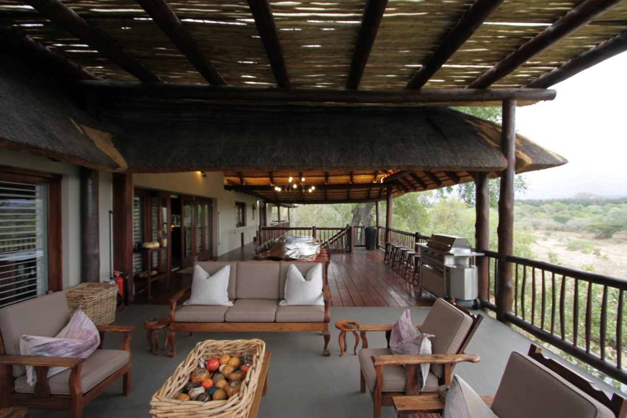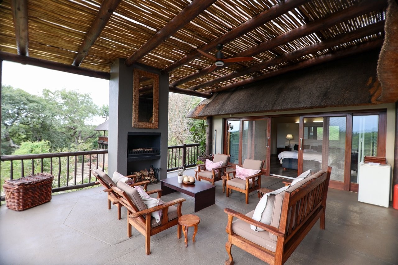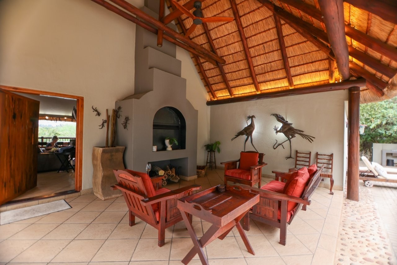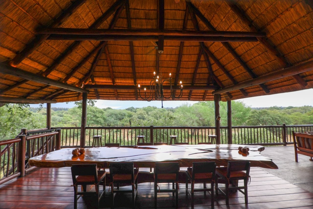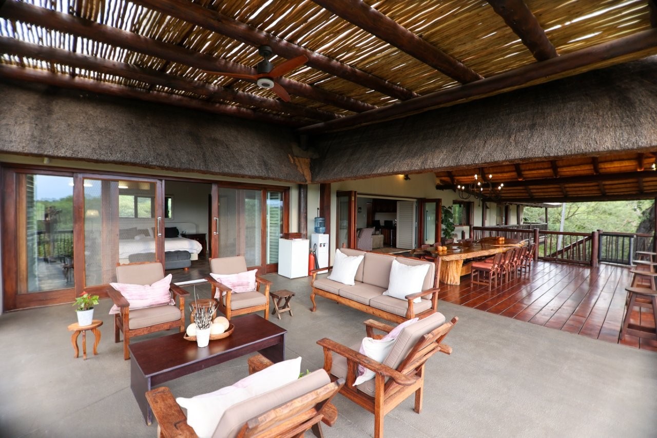 overlooks the pool, boma, and landscaped garden with sweeping mountain vistas.