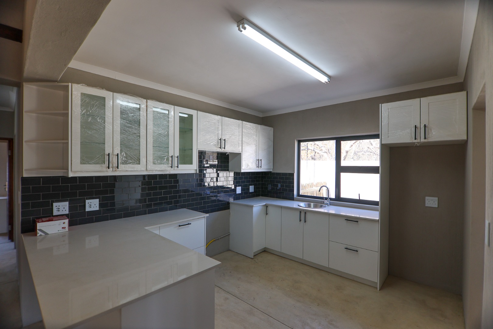 The home is thoughtfully laid out, offering an effortless open-plan flow from the kitchen through the dining and living areas, creating an inviting atmosphere filled with natural light. Premium finishes, sleek quartz countertops and a freestanding 90cm Elba gas stove bring quality and sophistication into the kitchen, while large sliding doors lead out to a covered patio complete with a built-in braai—ideal for relaxed evenings and entertaining.