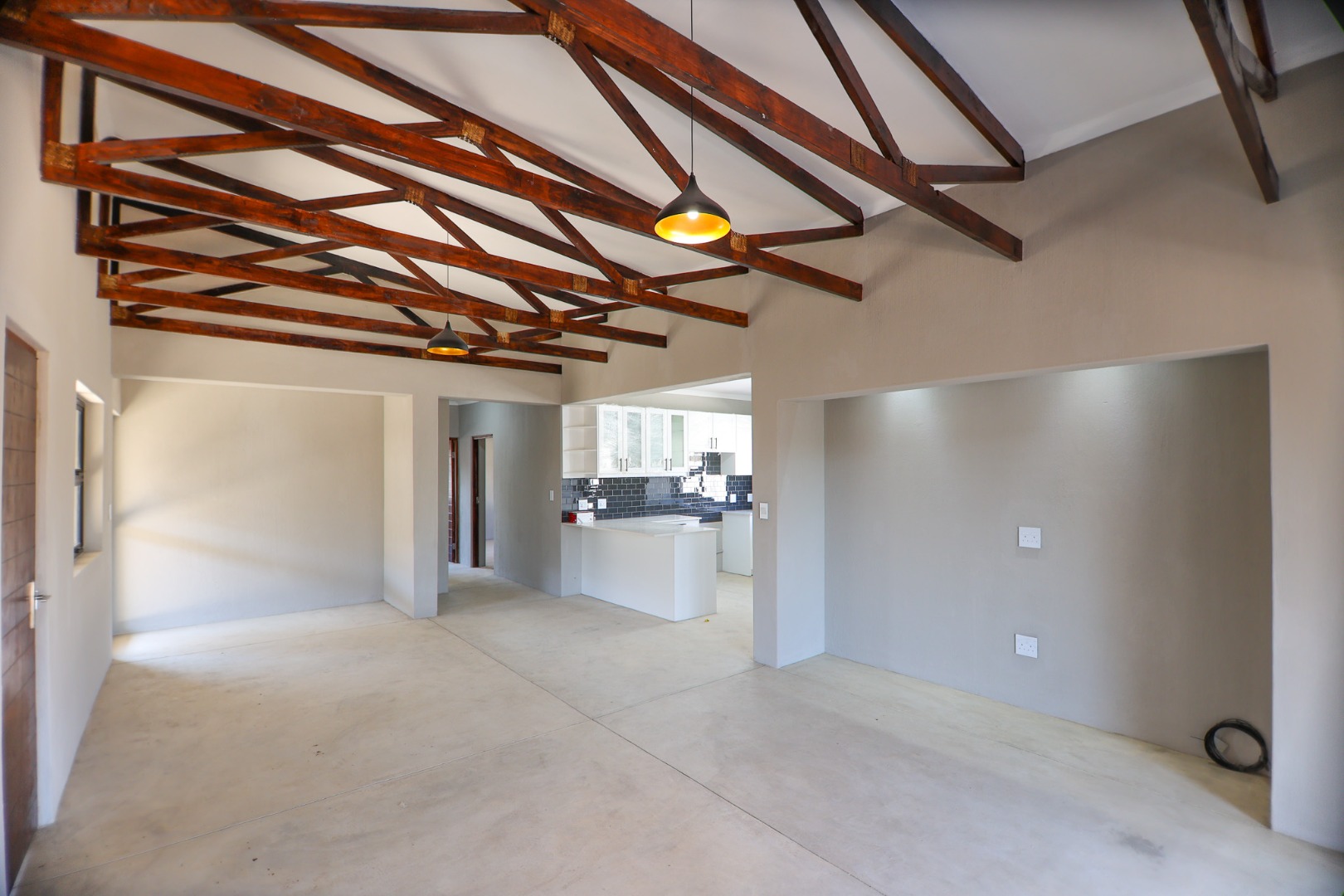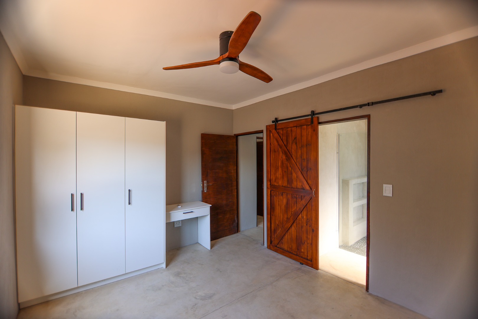The home welcomes you with a seamless open-plan layout where the kitchen, dining and living areas flow effortlessly together, creating a bright and inviting central space. High-quality finishes, quartz countertops and a freestanding 90cm Elba gas stove elevate the kitchen, while large sliding doors open onto a covered patio fitted with a built-in braai—perfect for relaxed gatherings and everyday enjoyment of the Lowveld lifestyle.