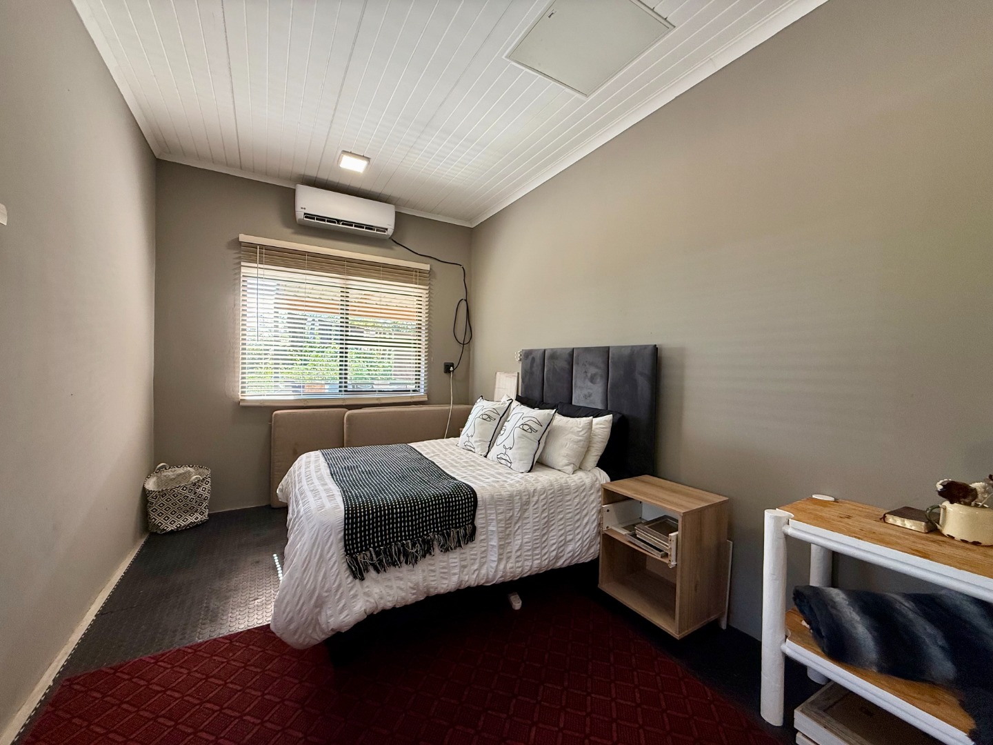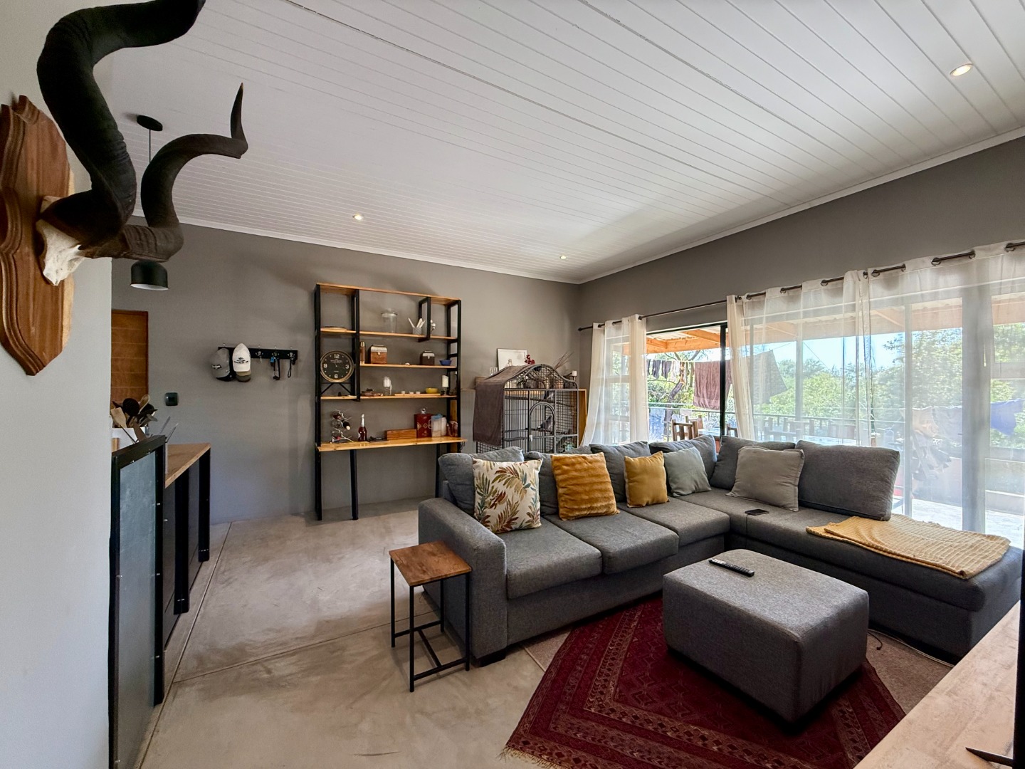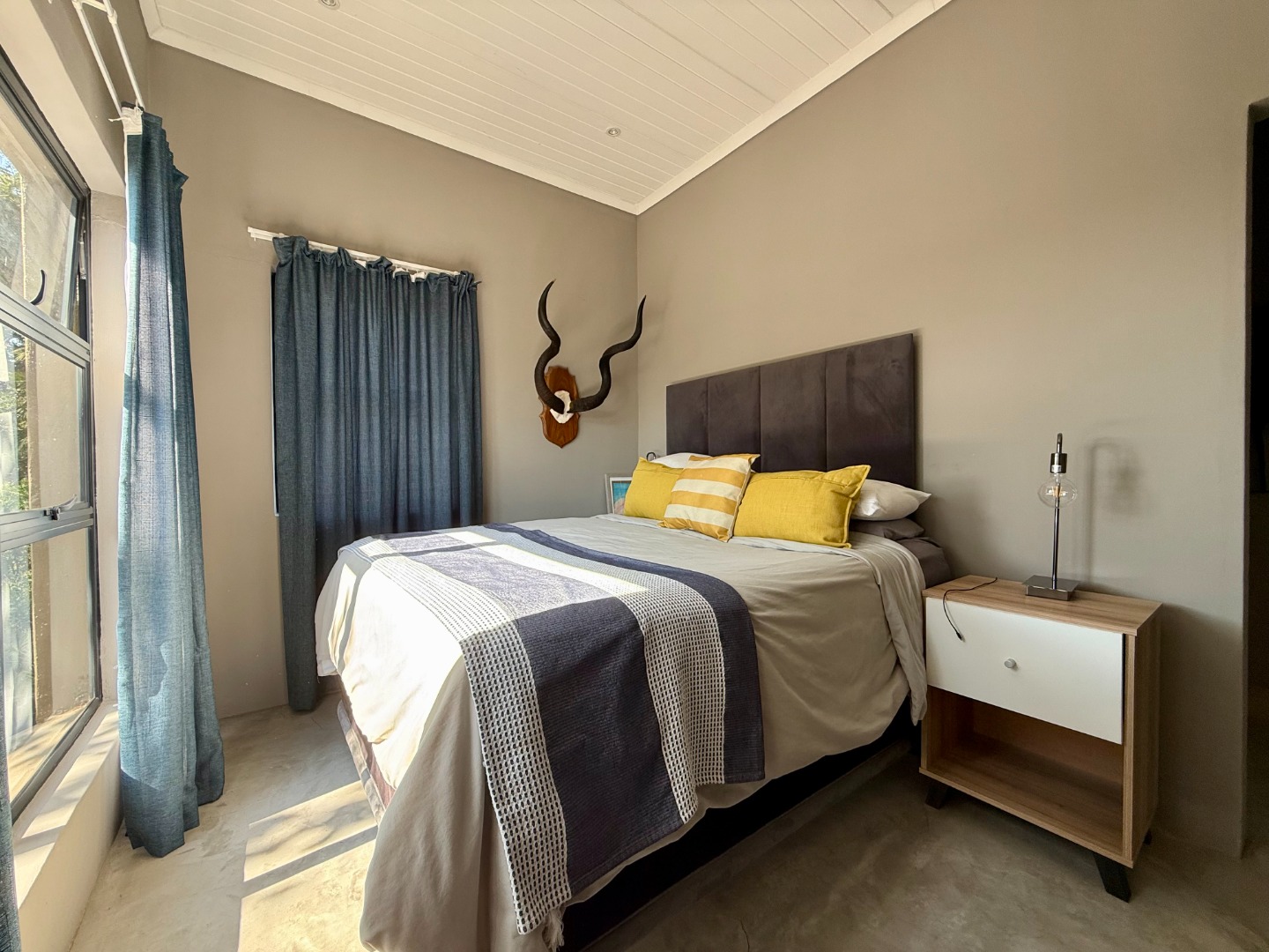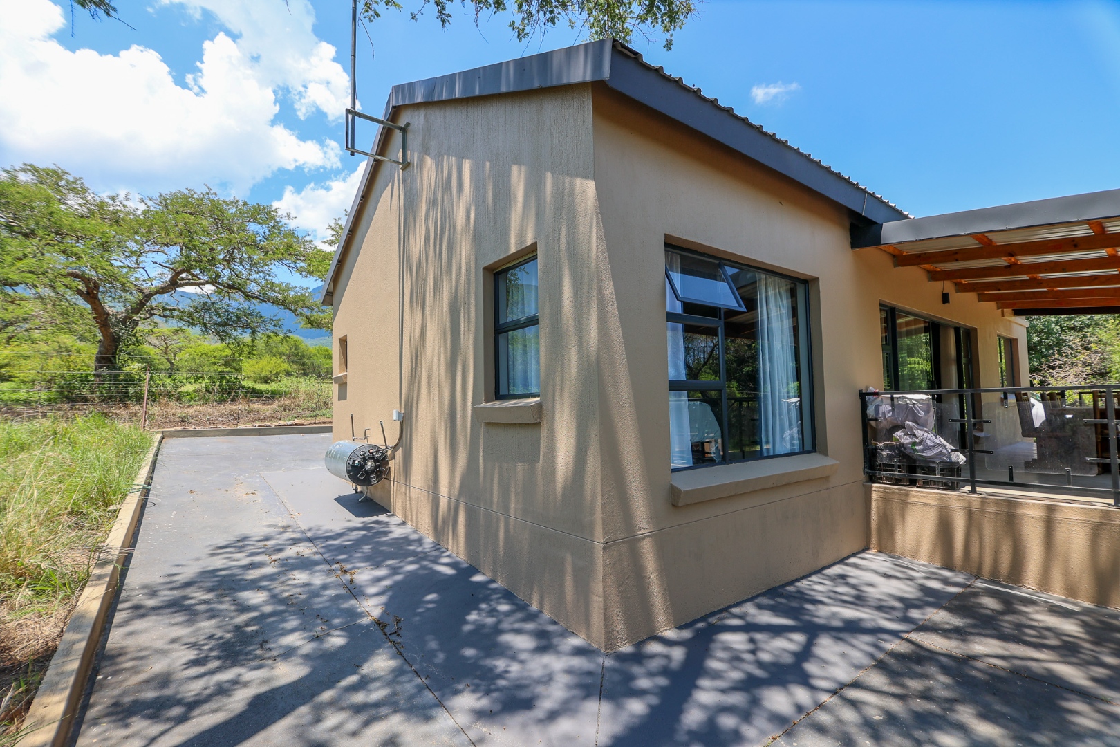 Discover an exceptional opportunity for country living in the serene Kampersrus, Hoedspruit. This modern residential sale property, nestled within a secure and gated community, offers breathtaking mountain views and a tranquil bushveld environment, characteristic of an eco-estate and wildlife state. The contemporary architectural design, featuring a neutral exterior and a corrugated roof, provides excellent kerb appeal. The interior of this 112 sqm home is thoughtfully designed for comfort and functionality. It boasts an open-plan layout, seamlessly connecting the lounge and dining room, creating an inviting space for relaxation and entertaining. The well-appointed kitchen ensures practical living, while sliding doors enhance the indoor-outdoor flow and allow natural light to flood the living areas. Air conditioning is installed for year-round comfort. This charming residence comprises two comfortable bedrooms and a single well-equipped bathroom, providing ample space for residents. The design prioritises ease of living within its compact yet efficient footprint. Outdoor living is a highlight, with a spacious covered patio offering an ideal setting for entertaining or simply enjoying the scenic views and lush garden. The property also features a refreshing pool, perfect for warm South African days, and extensive paving for convenient off-street parking on the generous 2500 sqm erf. A dedicated storage area adds to the practicality of the home. Security is paramount within this estate, featuring 24-hour security, a security post, access gates, and electric fencing, ensuring peace of mind. As part of a complex and gated community, residents benefit from a secure and well-maintained environment, embracing a lifestyle farm and nature reserve ambiance. Key Features: * 2 Bedrooms, 1 Bathroom * 1 Lounge, 1 Dining Room, 1 Kitchen * Open-plan living with sliding doors * Spacious covered patio and garden * Private swimming pool * Air conditioning * 24-hour security, access gate, electric fencing * Paved parking and storage * Scenic mountain views in an eco-estate setting
