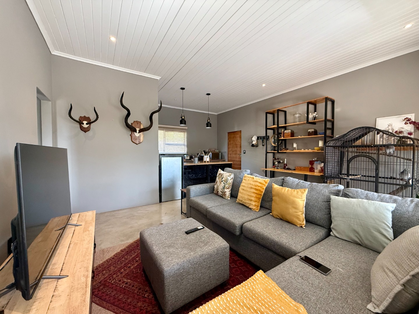 Discover an exceptional opportunity for country living in the serene Kampersrus, Hoedspruit. This modern residential sale property, nestled within a secure and gated community, offers breathtaking mountain views and a tranquil bushveld environment, characteristic of an eco-estate and wildlife state. The contemporary architectural design, featuring a neutral exterior and a corrugated roof, provides excellent kerb appeal. The interior of this 112 sqm home is thoughtfully designed for comfort and functionality. It boasts an open-plan layout, seamlessly connecting the lounge and dining room, creating an inviting space for relaxation and entertaining. The well-appointed kitchen ensures practical living, while sliding doors enhance the indoor-outdoor flow and allow natural light to flood the living areas. Air conditioning is installed for year-round comfort. This charming residence comprises two comfortable bedrooms and a single well-equipped bathroom, providing ample space for residents. The design prioritises ease of living within its compact yet efficient footprint. Outdoor living is a highlight, with a spacious covered patio offering an ideal setting for entertaining or simply enjoying the scenic views and lush garden. The property also features a refreshing pool, perfect for warm South African days, and extensive paving for convenient off-street parking on the generous 2500 sqm erf. A dedicated storage area adds to the practicality of the home. Security is paramount within this estate, featuring 24-hour security, a security post, access gates, and electric fencing, ensuring peace of mind. As part of a complex and gated community, residents benefit from a secure and well-maintained environment, embracing a lifestyle farm and nature reserve ambiance. Key Features: * 2 Bedrooms, 1 Bathroom * 1 Lounge, 1 Dining Room, 1 Kitchen * Open-plan living with sliding doors * Spacious covered patio and garden * Private swimming pool * Air conditioning * 24-hour security, access gate, electric fencing * Paved parking and storage * Scenic mountain views in an eco-estate setting