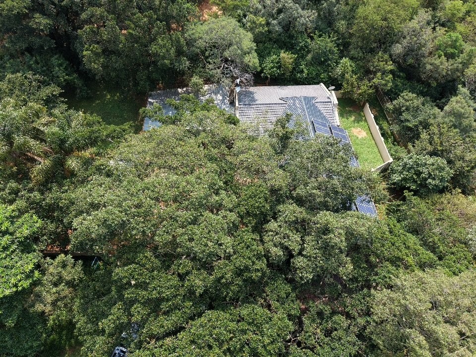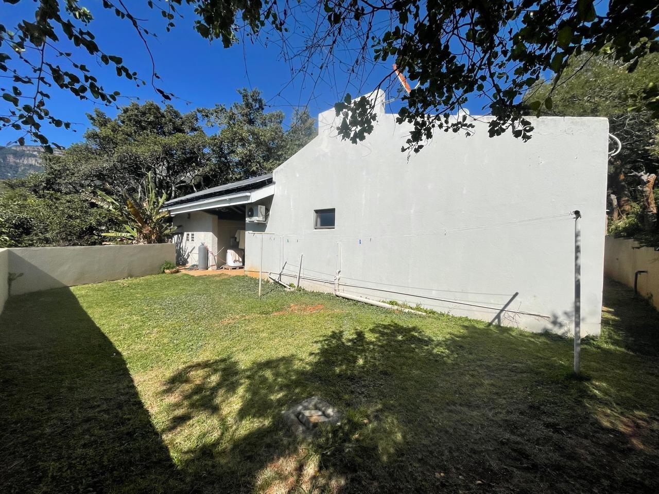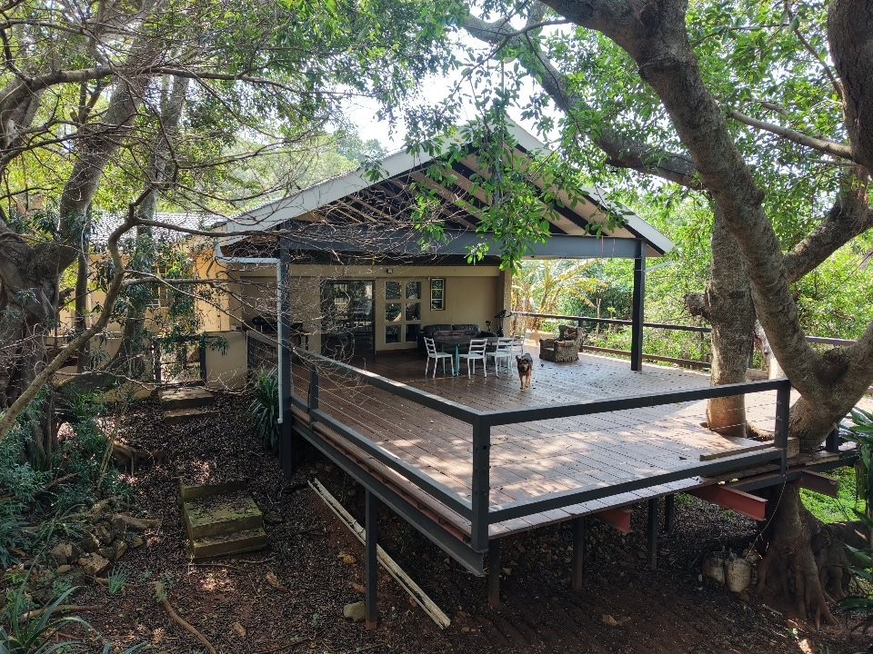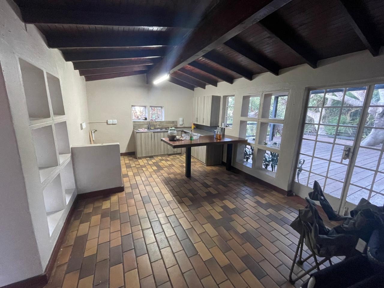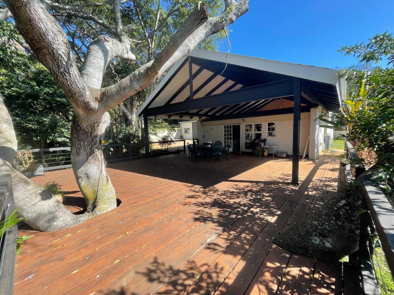 Outdoor living is exceptionally catered for by a substantial 90-square-metre wooden deck, gracefully positioned beneath the canopy of a mature fig tree, offering an exquisite space for relaxation and entertaining. The property benefits from a private borehole, supplementary water tanks, and an Eskom connection, ensuring reliable services. Enhanced security features, including a perimeter fence, access gate, and security gate, provide peace of mind within this gated community setting.