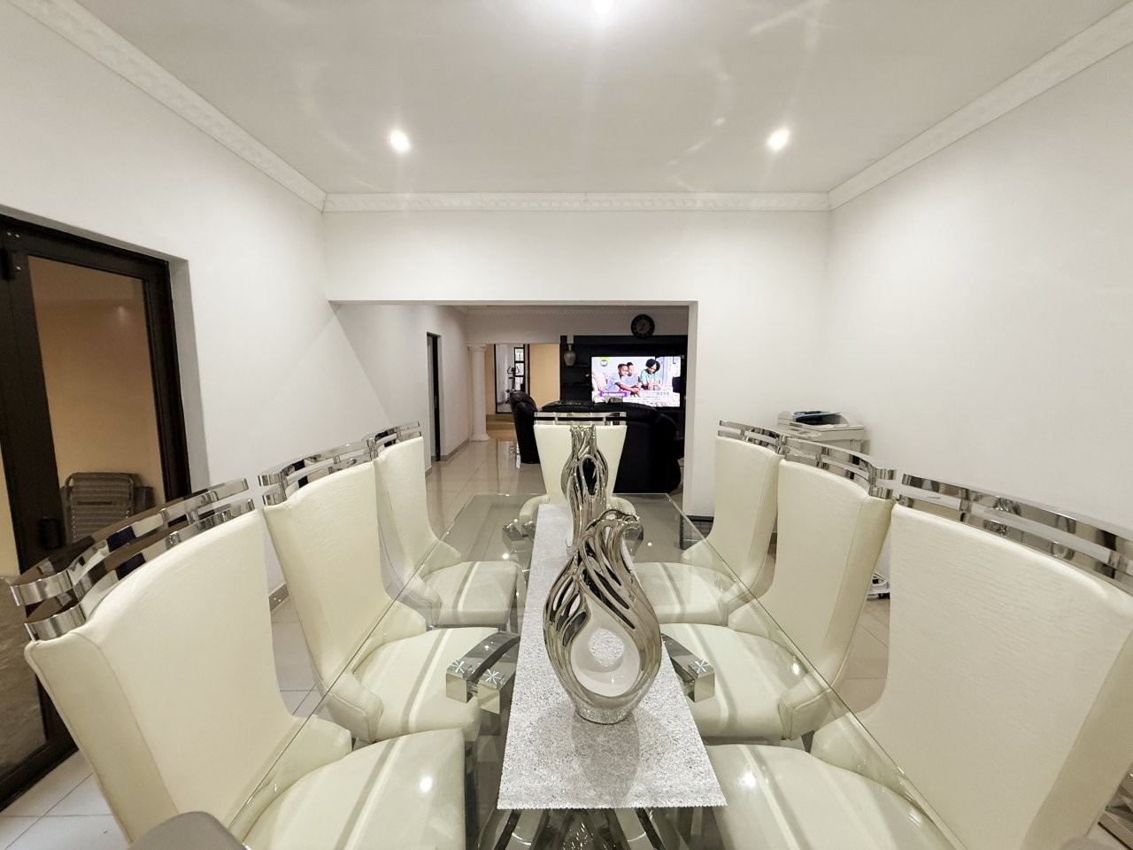 This exceptional double-story family home offers a combination of modern comfort, spacious living, and breathtaking mountain views. Nestled in a prime location in Kampersrus, the property features a spacious 3-bedroom, 3-bathroom layout, all en-suite, designed to offer privacy and convenience for every family member. 3 generously sized bedrooms, each with its own en-suite bathroom, providing maximum privacy and comfort. All rooms are fitted with air-conditioning for year-round comfort. Open-plan living with a large, stylish kitchen perfect for entertaining or family meals. Spacious lounges on both the ground and upper levels, offering versatile living spaces and spectacular mountain views from the second-story lounge. Additional guest toilet for convenience. Two double garages on the main house, with a separate double garage for the cottage. Electric gate access for added security and convenience.