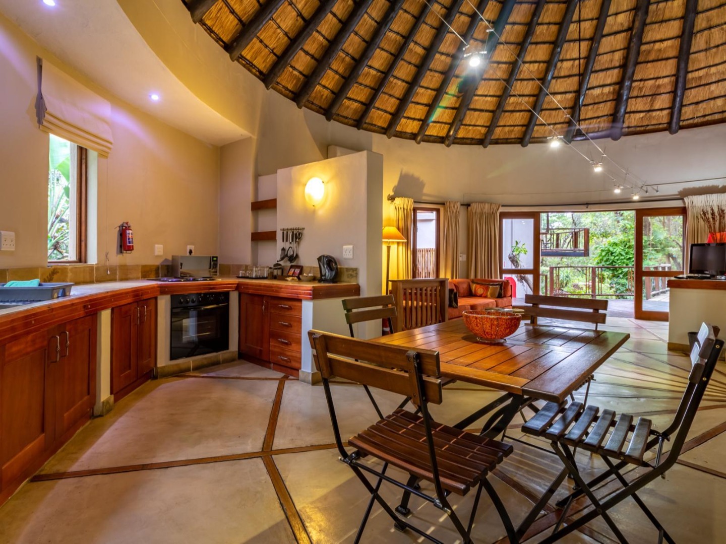 - Kingfisher Self-Catering Lodge: Under thatch with full kitchen, dining and lounge area, en-suite bathroom with oversized bath and shower, DSTV, and all essentials supplied – perfect for couples.
