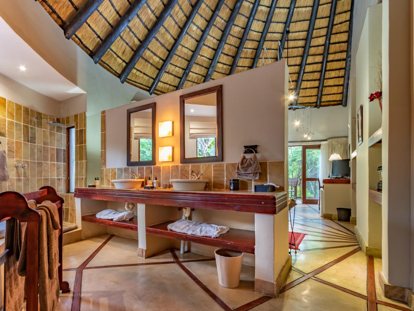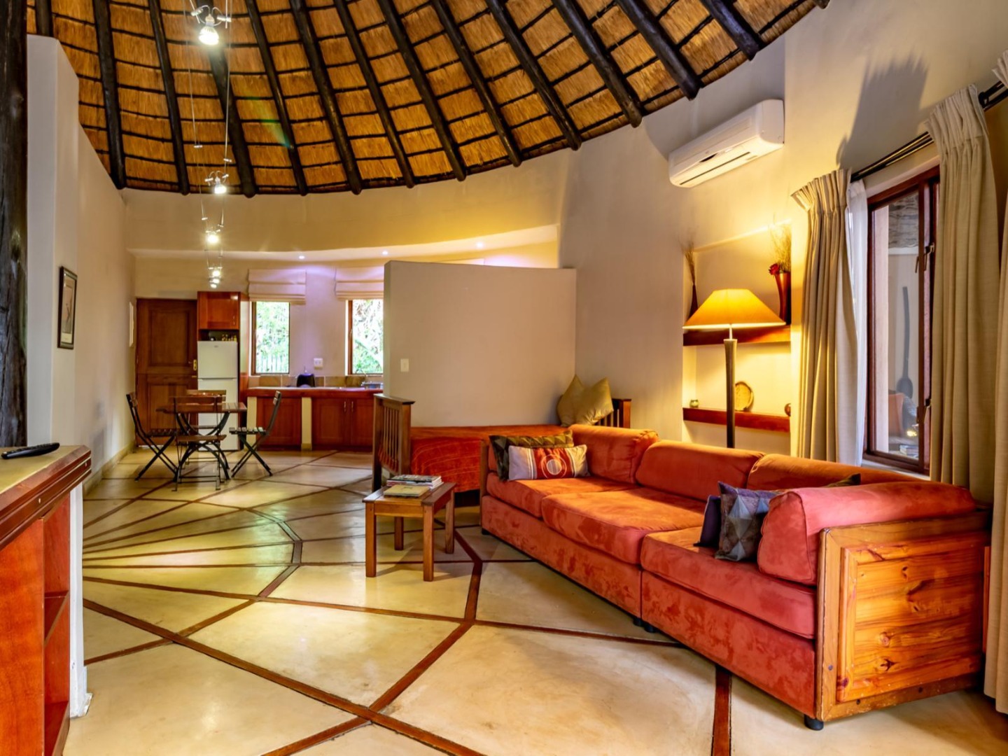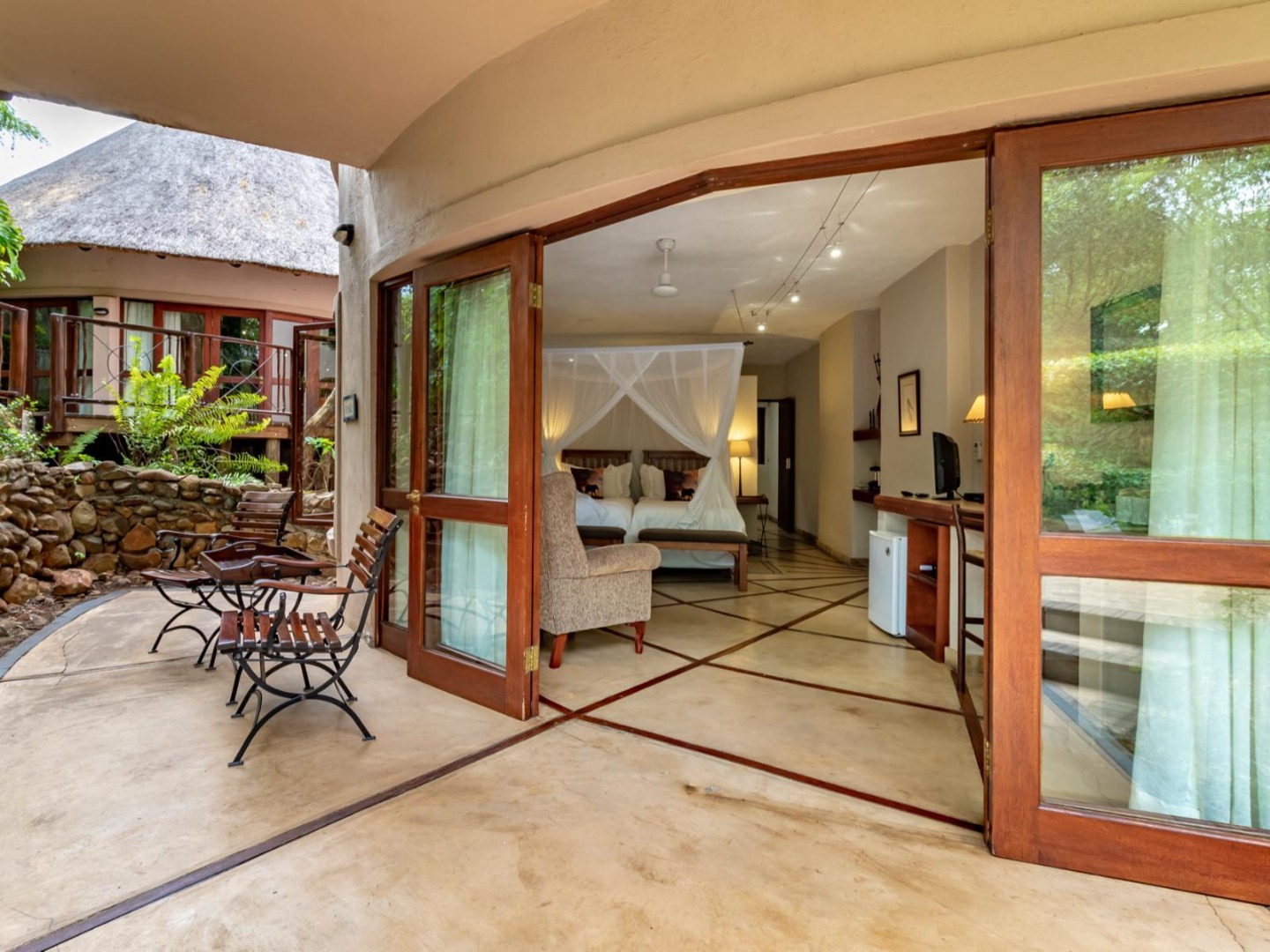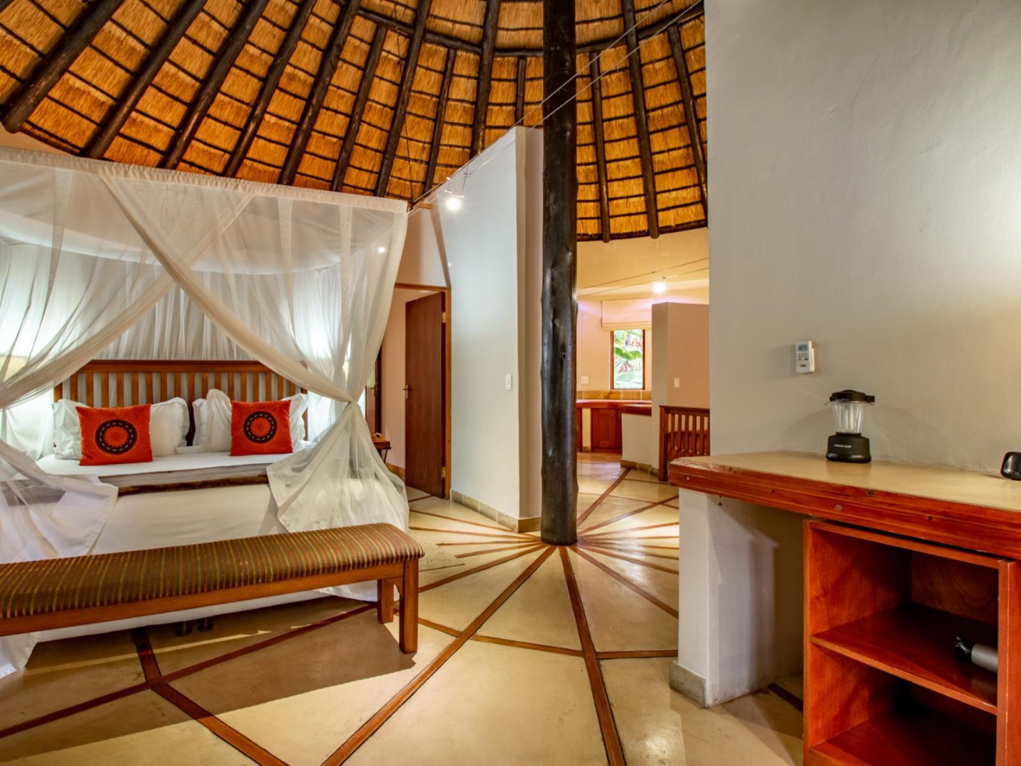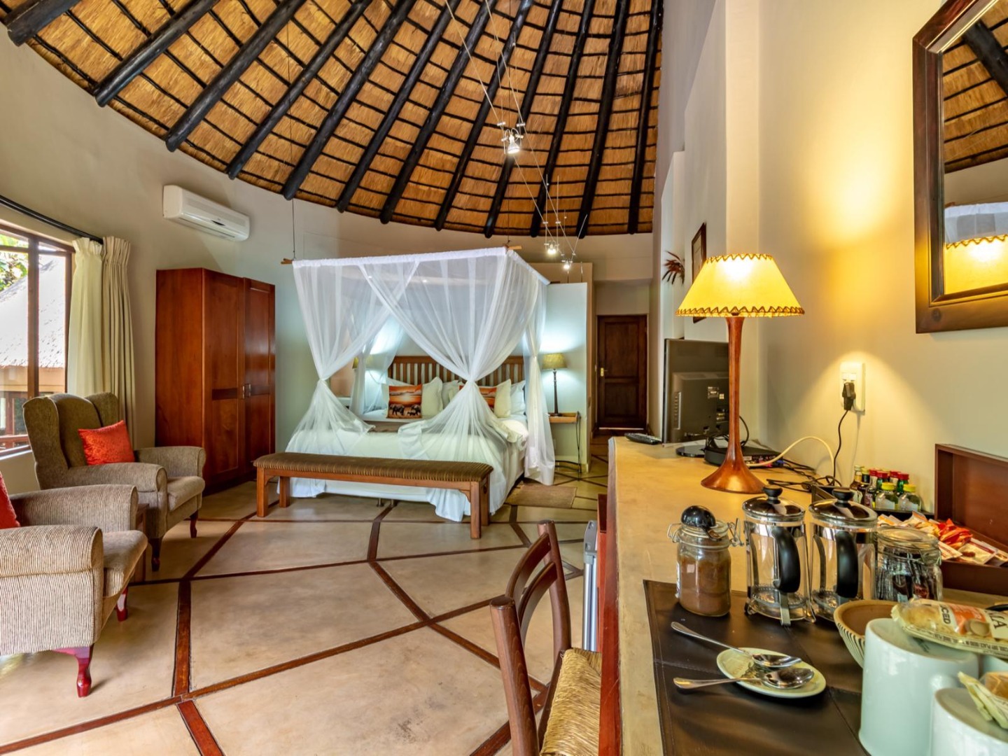 - Kingfisher Self-Catering Lodge: Under thatch with full kitchen, dining and lounge area, en-suite bathroom with oversized bath and shower, DSTV, and all essentials supplied – perfect for couples.