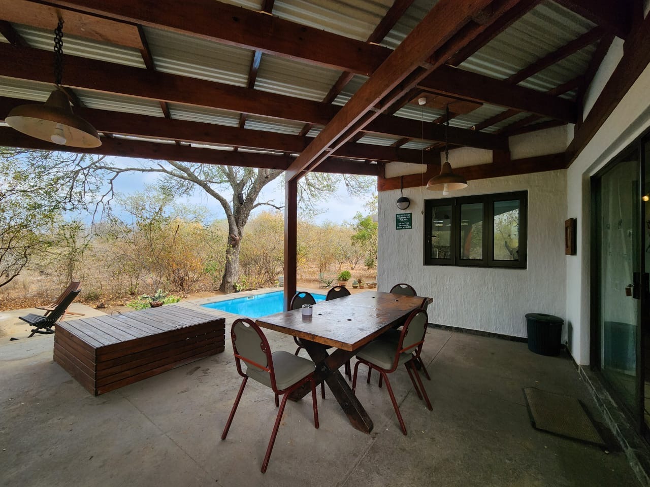 Welcome to your dream home nestled within the picturesque Hoedspruit Wildlife Estate! This exquisite 3-bedroom, 2-bathroom house offers an unparalleled living experience, combining modern comforts with the tranquility of nature. The property features spacious bedrooms designed for comfort and relaxation, well-appointed bathrooms, and an open plan living and dining area perfect for entertaining or unwinding with family. The fully equipped kitchen boasts, ensuring a seamless cooking experience. Outside, you'll find a private swimming pool, ideal for cooling off on warm days or enjoying a leisurely swim, with a covered patio, perfect for outdoor dining and enjoying the serene surroundings. The house comes tastefully furnished, ensuring a move-in ready experience.