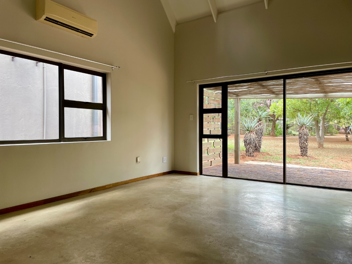 Discover modern living in this inviting 3-bedroom, 2-bathroom home available for rent within the esteemed Hoedspruit Wildlife Estate. The residence features an open-plan layout, seamlessly connecting the lounge and dining areas, perfect for contemporary lifestyles. The kitchen is equipped with modern white cabinetry, ample countertop space, and a stove/oven, ensuring a functional and stylish culinary experience. Special lighting and air conditioning enhance comfort throughout the home, while sliding doors promote excellent indoor-outdoor flow. One of the bathrooms is an ensuite, offering added privacy and convenience.