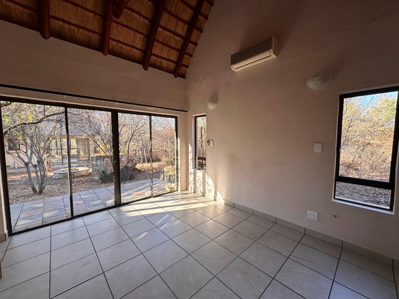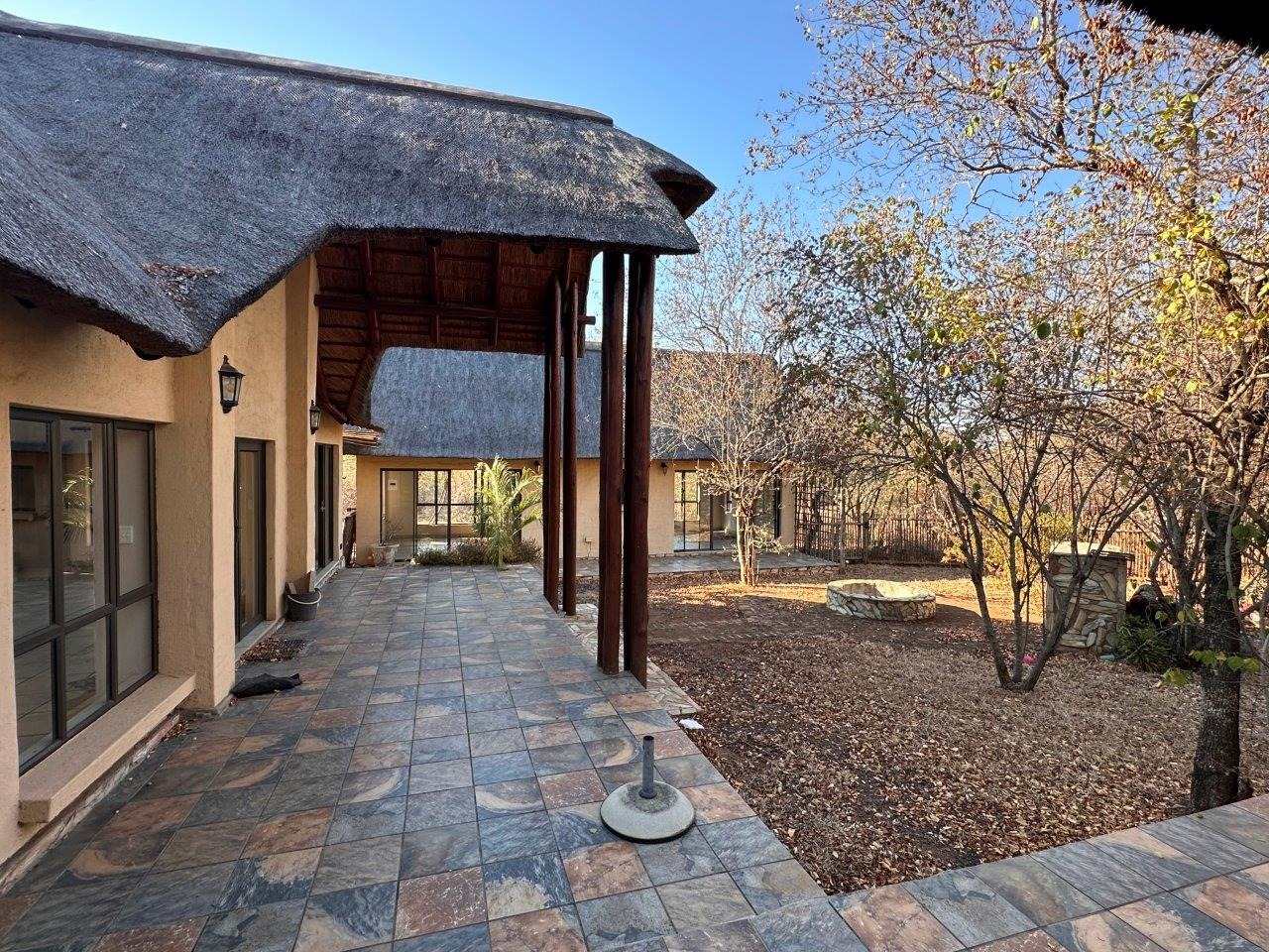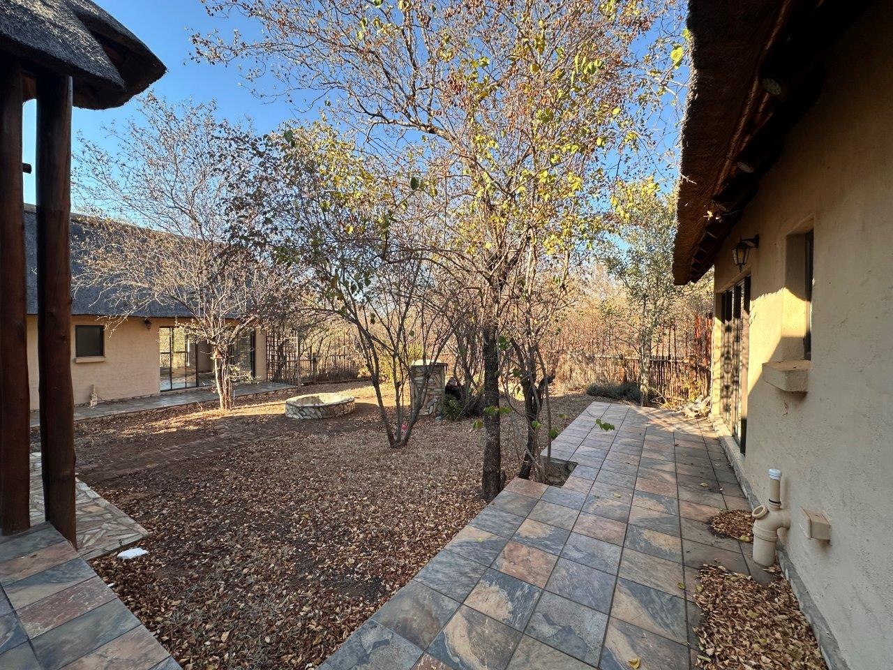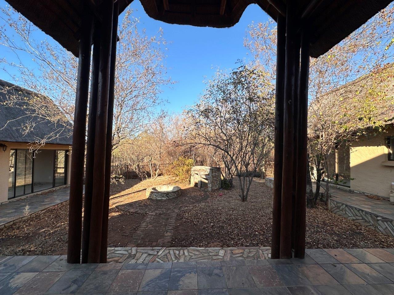 Step outside to embrace the quintessential bushveld lifestyle. The property offers a generous covered patio, perfect for relaxation and entertaining, complete with a built-in braai and a charming stone fire pit. The natural, rustic garden setting, surrounded by mature trees, provides a serene backdrop and a true connection to nature. Pets are welcome, making this an ideal home for animal lovers seeking a tranquil environment.