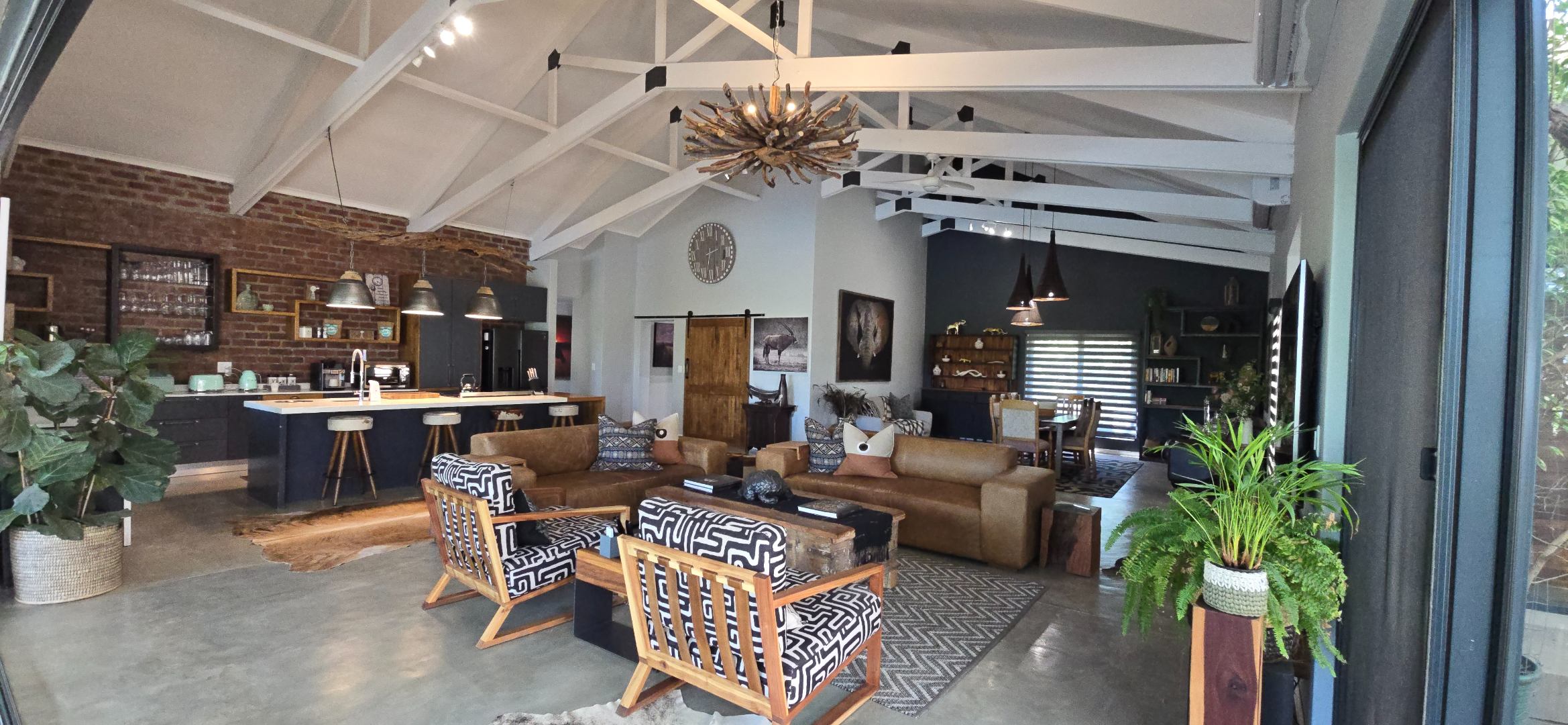 Discover an exceptional residential rental opportunity within the prestigious Hoedspruit Wildlife Estate, Hoedspruit, South Africa. This fully furnished property offers a unique blend of modern comfort and immersive bushveld living, ideal for those seeking a tranquil holiday home or a permanent escape in a secure eco-estate. The residence features three spacious bedrooms, each complemented by its own en-suite bathroom, ensuring privacy and convenience. The open-plan layout seamlessly integrates the kitchen, dining room, and lounge, creating an expansive and inviting living space. Architectural highlights include high vaulted ceilings with exposed trusses, exposed brickwork, and polished concrete floors, all enhanced by natural wood accents. Air-conditioning throughout ensures comfort, while a dedicated pantry adds practical storage. Step outside to an impressive outdoor entertainment area, a true extension of the home. A large patio leads to a private swimming pool and an extensive wooden deck, perfect for relaxation and enjoying the scenic views. The built-in braai and ample outdoor lounge and dining areas facilitate effortless entertaining amidst the lush, natural garden. Sliding and special doors ensure a seamless indoor-outdoor flow, connecting you directly with the surrounding wildlife state. Sustainability and security are paramount. The property benefits from solar panels, a solar geyser, and a battery inverter, promoting energy efficiency within this eco-estate. As part of a gated community with 24-hour security, access gates, electric fencing, and security posts, residents enjoy peace of mind. Fibre connectivity is also available, catering to modern lifestyle needs. The inclusion of a flatlet offers versatile living arrangements. Hoedspruit Wildlife Estate provides an unparalleled lifestyle, combining country living with the allure of a game stock farm, mountain views, and river frontage. This suburban yet wild setting offers a wellness estate experience, making it a sought-after location for those desiring a connection with nature without compromising on amenities. Key Features: * 3 Bedrooms, 3 En-suite Bathrooms * Fully Furnished * Private Swimming Pool & Wooden Deck * Expansive Outdoor Living & Built-in Braai * Solar Panels, Geyser & Battery Inverter * 24-Hour Security Estate with Gated Access * Fibre Connectivity * Air-conditioning * Separate Flatlet * Scenic Bushveld Views