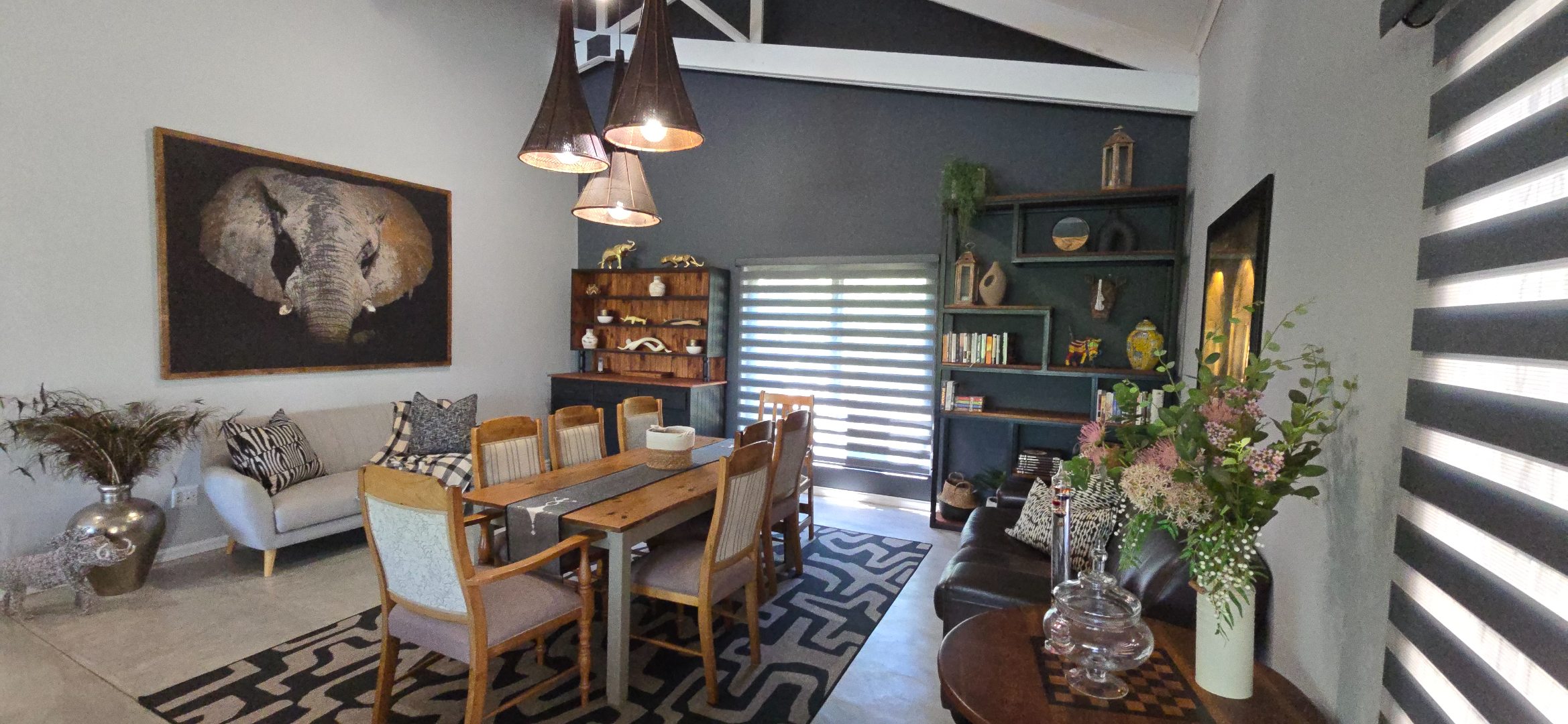 Discover an exceptional residential rental opportunity within the prestigious Hoedspruit Wildlife Estate, Hoedspruit, South Africa. This fully furnished property offers a unique blend of modern comfort and immersive bushveld living, ideal for those seeking a tranquil holiday home or a permanent escape in a secure eco-estate. The residence features three spacious bedrooms, each complemented by its own en-suite bathroom, ensuring privacy and convenience. The open-plan layout seamlessly integrates the kitchen, dining room, and lounge, creating an expansive and inviting living space. Architectural highlights include high vaulted ceilings with exposed trusses, exposed brickwork, and polished concrete floors, all enhanced by natural wood accents. Air-conditioning throughout ensures comfort, while a dedicated pantry adds practical storage. Step outside to an impressive outdoor entertainment area, a true extension of the home. A large patio leads to a private swimming pool and an extensive wooden deck, perfect for relaxation and enjoying the scenic views. The built-in braai and ample outdoor lounge and dining areas facilitate effortless entertaining amidst the lush, natural garden. Sliding and special doors ensure a seamless indoor-outdoor flow, connecting you directly with the surrounding wildlife state. Sustainability and security are paramount. The property benefits from solar panels, a solar geyser, and a battery inverter, promoting energy efficiency within this eco-estate. As part of a gated community with 24-hour security, access gates, electric fencing, and security posts, residents enjoy peace of mind. Fibre connectivity is also available, catering to modern lifestyle needs. The inclusion of a flatlet offers versatile living arrangements. Hoedspruit Wildlife Estate provides an unparalleled lifestyle, combining country living with the allure of a game stock farm, mountain views, and river frontage. This suburban yet wild setting offers a wellness estate experience, making it a sought-after location for those desiring a connection with nature without compromising on amenities. Key Features: * 3 Bedrooms, 3 En-suite Bathrooms * Fully Furnished * Private Swimming Pool & Wooden Deck * Expansive Outdoor Living & Built-in Braai * Solar Panels, Geyser & Battery Inverter * 24-Hour Security Estate with Gated Access * Fibre Connectivity * Air-conditioning * Separate Flatlet * Scenic Bushveld Views