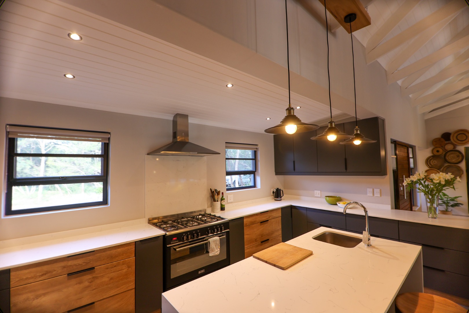 Each spacious bedroom features an en-suite bathroom. The master suite boasts a private deck, an ideal retreat for quiet mornings or evening relaxation. The open-plan living area flows effortlessly between the lounge, dining, and kitchen spaces, creating a warm and inviting atmosphere. Large sliding doors open onto a sprawling deck, while a cozy lounge ensures comfort on cooler nights.
