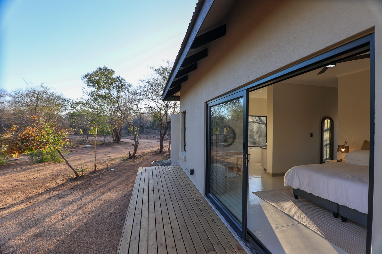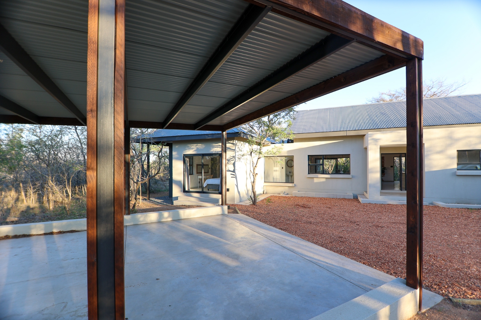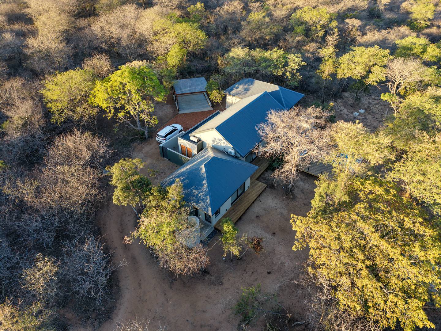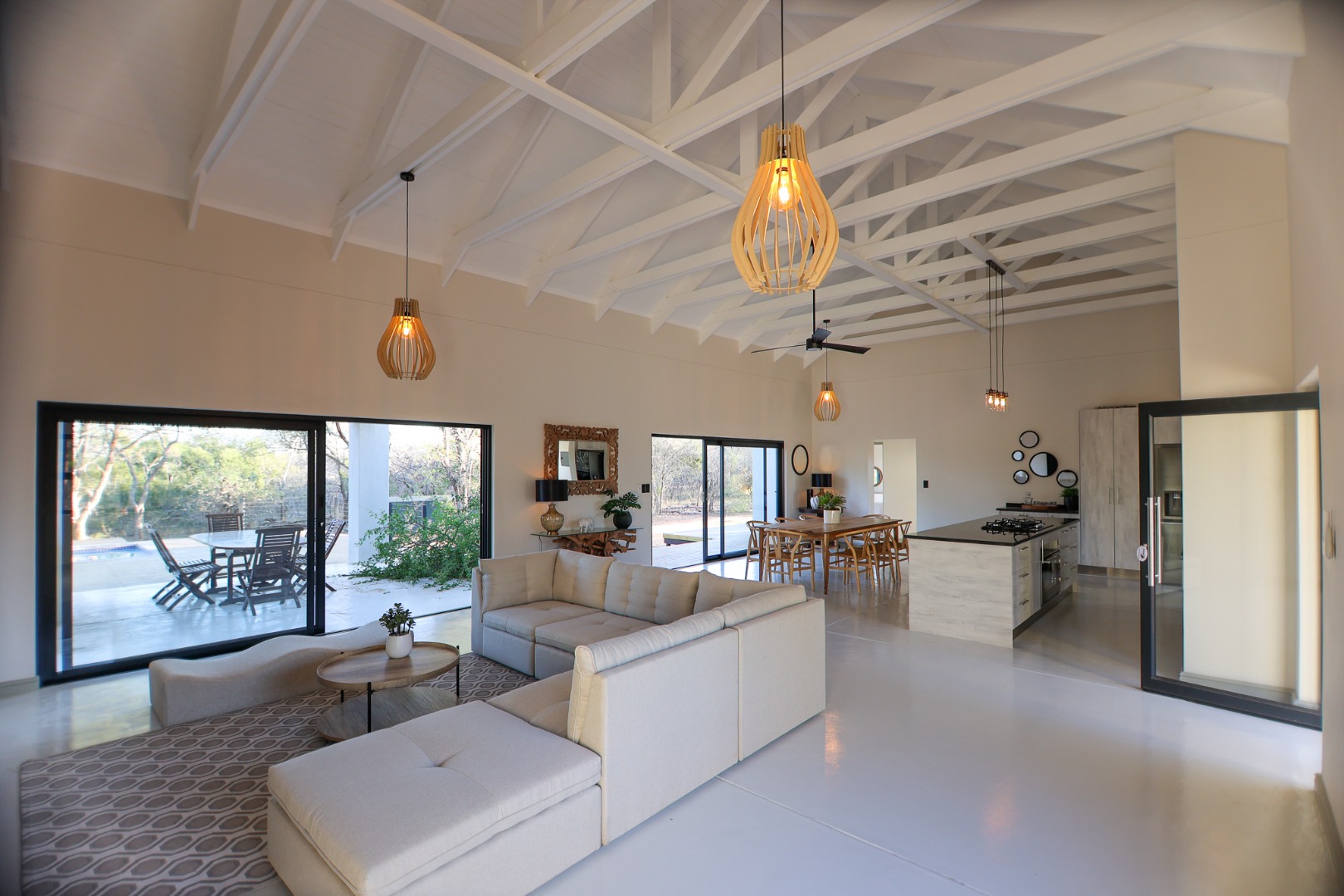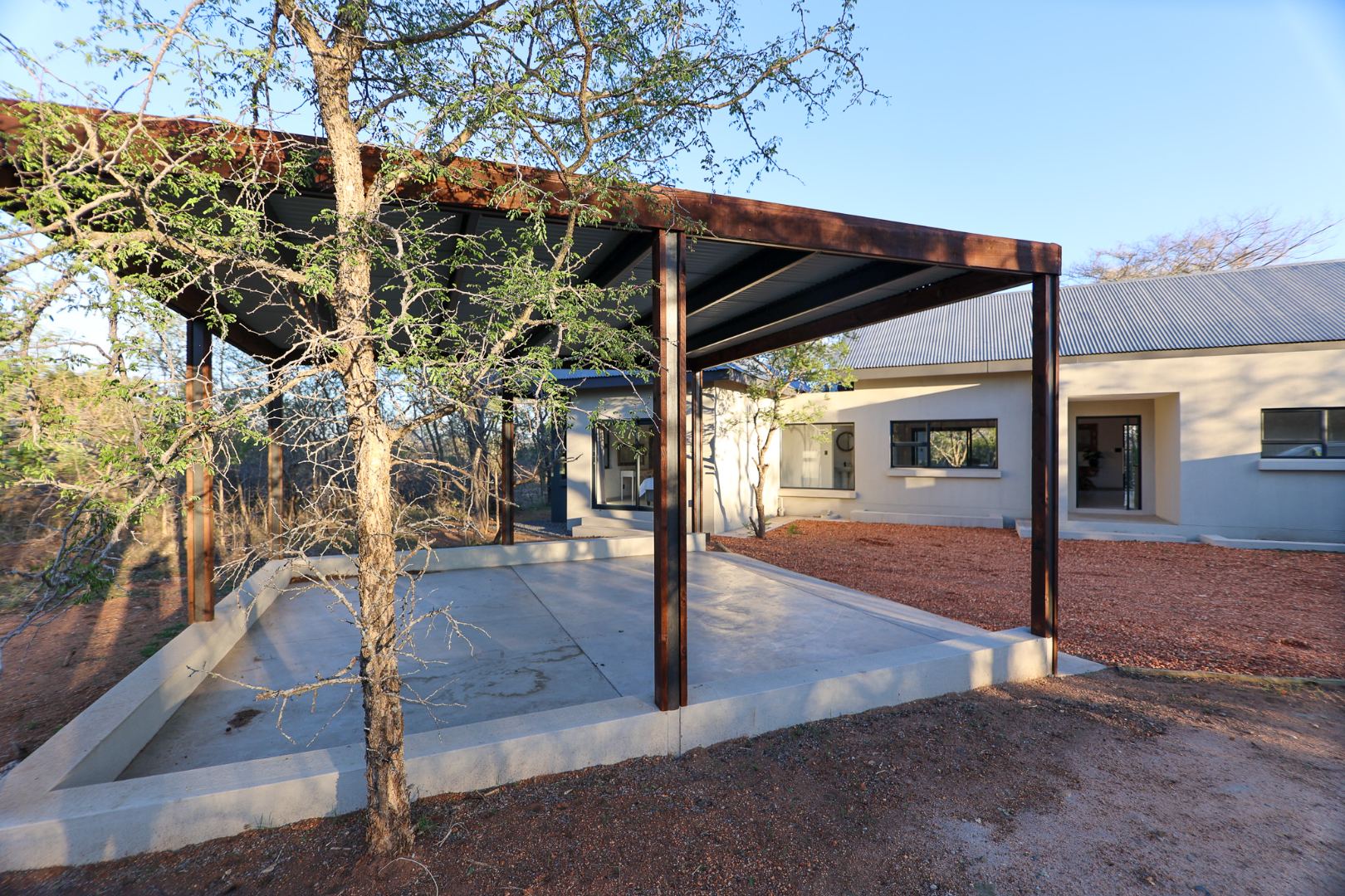 Discover an exceptional furnished rental opportunity within the prestigious Moditlo Nature Reserve, Hoedspruit. This modern 3-bedroom, 3.5-bathroom home offers a seamless blend of contemporary design and immersive bushveld living, ideal for those seeking a tranquil escape or a long-term nature-inspired lifestyle. The property boasts an expansive open-plan layout, featuring high vaulted ceilings with exposed trusses and large sliding doors that invite abundant natural light and connect effortlessly to the outdoors. The interior comprises a well-appointed kitchen, a dedicated dining room, a comfortable lounge, and an additional family TV room, all designed for spacious and functional living. Each of the three bedrooms benefits from an en-suite bathroom, ensuring privacy and convenience for all residents. The home is fully furnished, providing a ready-to-move-in experience with air conditioning for comfort in the African climate and a fireplace for cooler evenings. Step outside to embrace the quintessential bushveld lifestyle. The property features a generous patio, an expansive wooden deck, and a private swimming pool, perfect for relaxation and entertaining amidst the natural surroundings. A lapa further enhances the outdoor living experience, offering a shaded retreat. With 10,000 sqm of erf size, this eco-estate residence provides ample space and a scenic view, integrating seamlessly into the wildlife state environment. Security is paramount within this gated community and security estate, offering 24-hour security, a security post, access gates, electric fencing, and security gates for peace of mind. This property offers a unique opportunity to reside within a secure nature reserve, combining luxury with the untamed beauty of South Africa's Lowveld region, a renowned hub for wildlife and country living. Key Features: * Furnished 3-bedroom, 3.5-bathroom home * Open-plan living with vaulted ceilings * Private swimming pool, deck, and patio * Air conditioning and fireplace * Located in Moditlo Nature Reserve * Gated community with 24-hour security * Scenic bushveld views * 10,000 sqm erf size