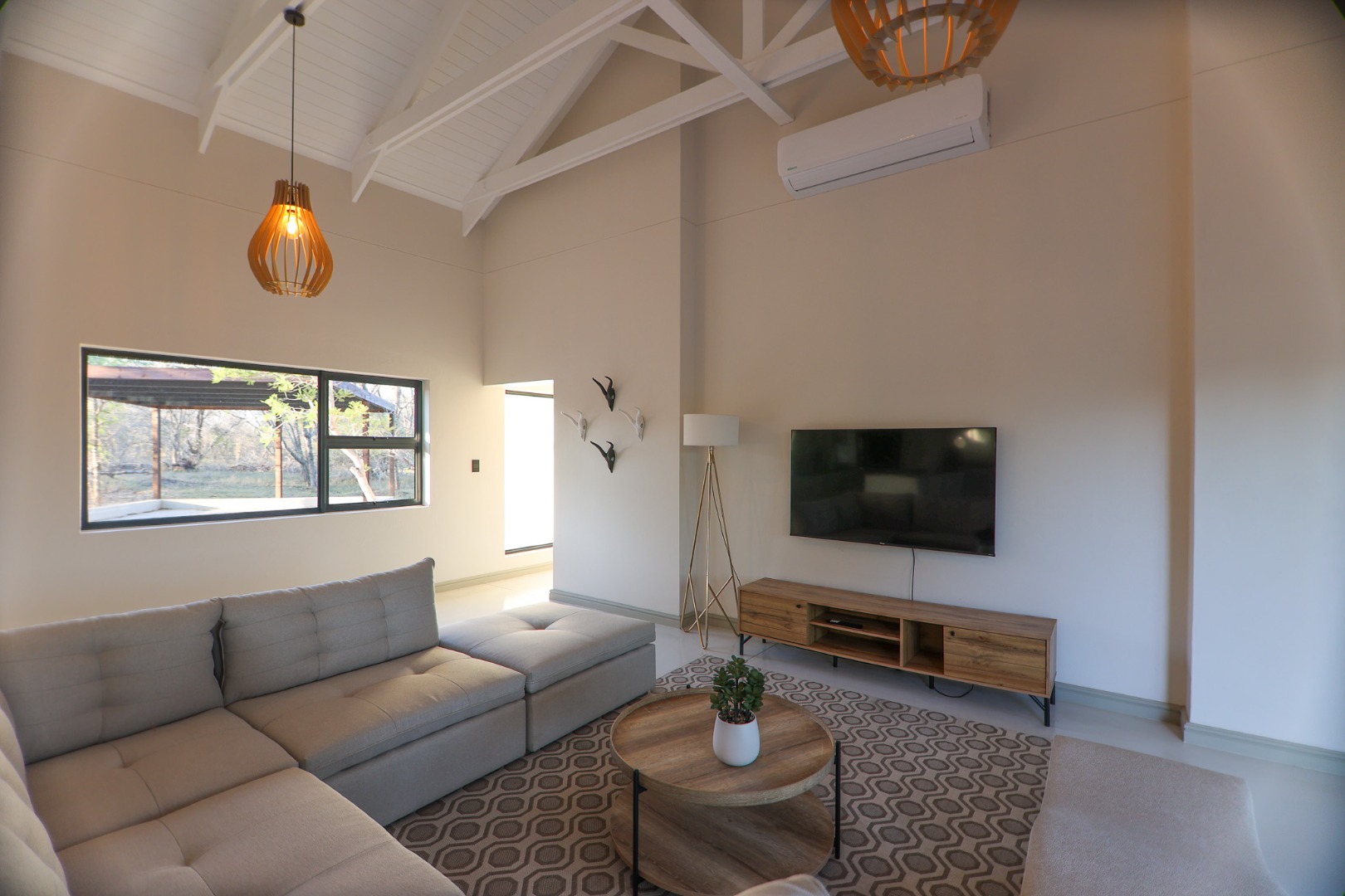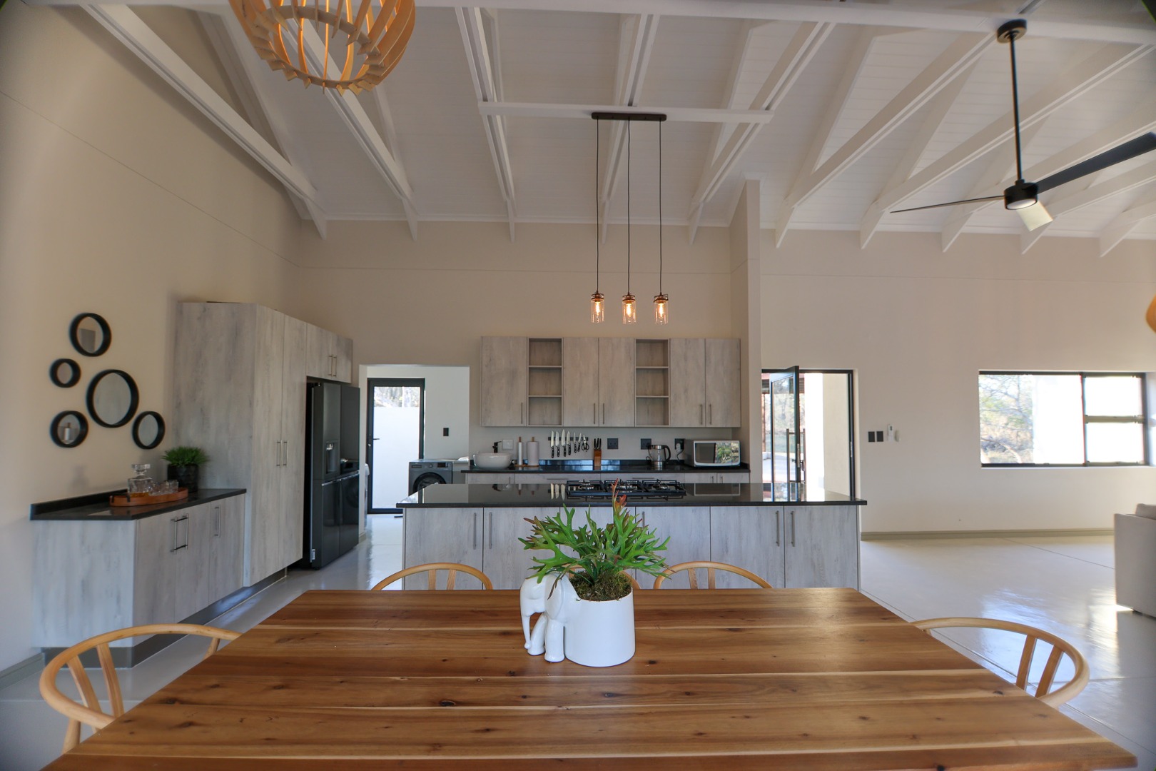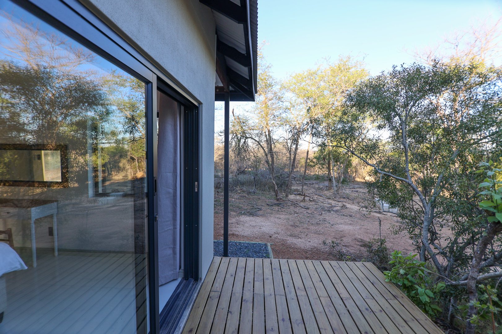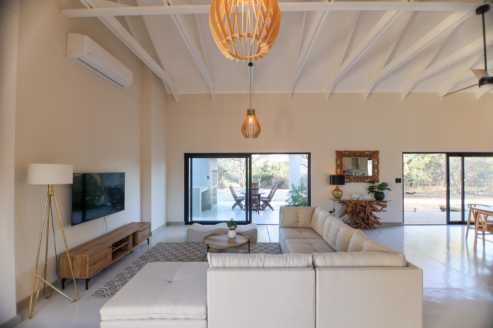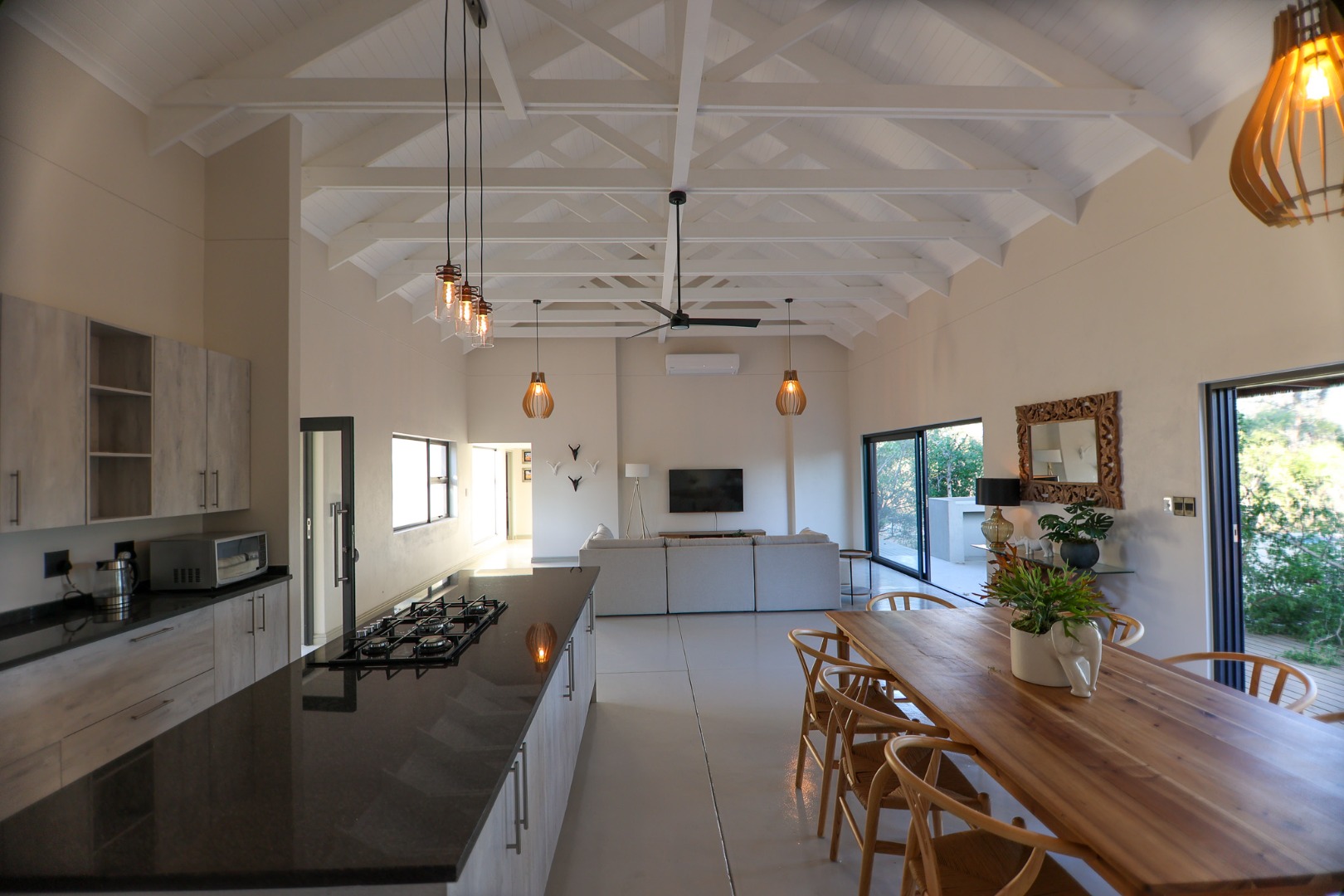Discover an exceptional furnished rental opportunity within the prestigious Moditlo Nature Reserve, Hoedspruit. This modern 3-bedroom, 3.5-bathroom home offers a seamless blend of contemporary design and immersive bushveld living, ideal for those seeking a tranquil escape or a long-term nature-inspired lifestyle. The property boasts an expansive open-plan layout, featuring high vaulted ceilings with exposed trusses and large sliding doors that invite abundant natural light and connect effortlessly to the outdoors. The interior comprises a well-appointed kitchen, a dedicated dining room, a comfortable lounge, and an additional family TV room, all designed for spacious and functional living. Each of the three bedrooms benefits from an en-suite bathroom, ensuring privacy and convenience for all residents. The home is fully furnished, providing a ready-to-move-in experience with air conditioning for comfort in the African climate and a fireplace for cooler evenings. Step outside to embrace the quintessential bushveld lifestyle. The property features a generous patio, an expansive wooden deck, and a private swimming pool, perfect for relaxation and entertaining amidst the natural surroundings. A lapa further enhances the outdoor living experience, offering a shaded retreat. With 10,000 sqm of erf size, this eco-estate residence provides ample space and a scenic view, integrating seamlessly into the wildlife state environment. Security is paramount within this gated community and security estate, offering 24-hour security, a security post, access gates, electric fencing, and security gates for peace of mind. This property offers a unique opportunity to reside within a secure nature reserve, combining luxury with the untamed beauty of South Africa's Lowveld region, a renowned hub for wildlife and country living. Key Features: * Furnished 3-bedroom, 3.5-bathroom home * Open-plan living with vaulted ceilings * Private swimming pool, deck, and patio * Air conditioning and fireplace * Located in Moditlo Nature Reserve * Gated community with 24-hour security * Scenic bushveld views * 10,000 sqm erf size