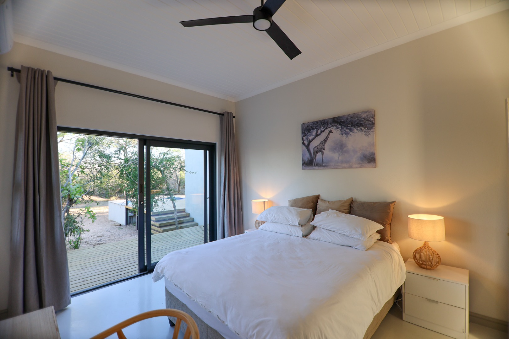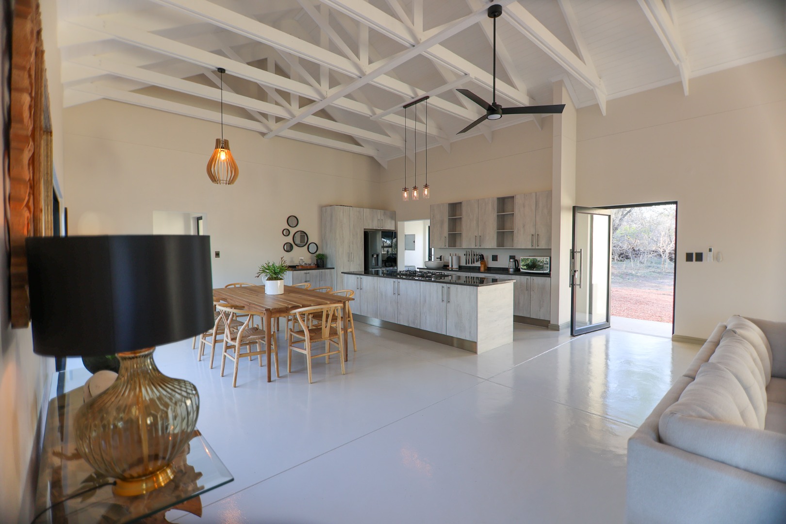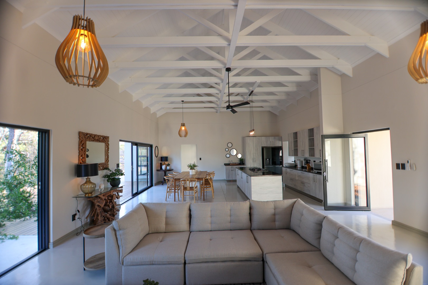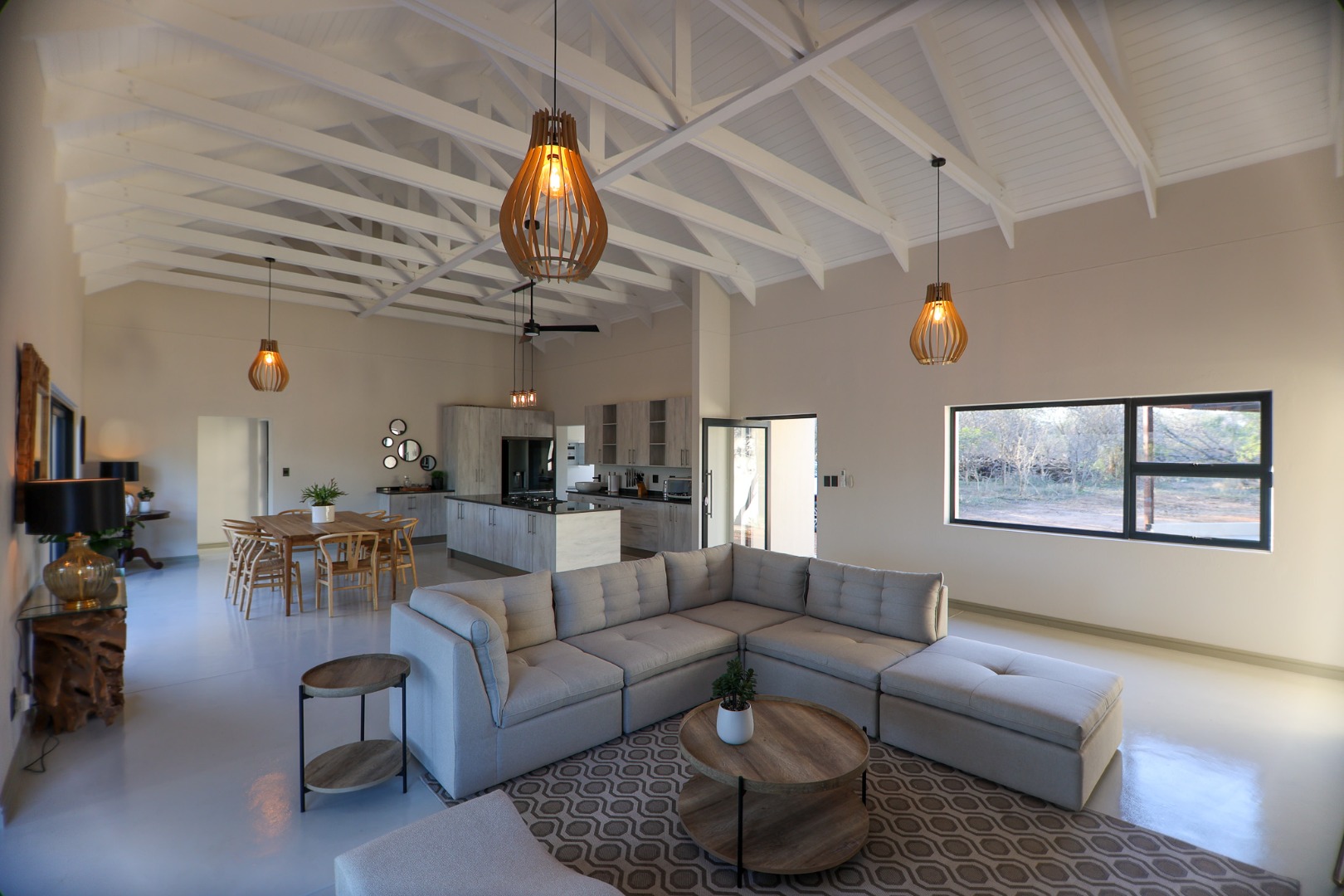 Discover an exceptional furnished rental opportunity within the prestigious Moditlo Nature Reserve, Hoedspruit. This modern 3-bedroom, 3.5-bathroom home offers a seamless blend of contemporary design and immersive bushveld living, ideal for those seeking a tranquil escape or a long-term nature-inspired lifestyle. The property boasts an expansive open-plan layout, featuring high vaulted ceilings with exposed trusses and large sliding doors that invite abundant natural light and connect effortlessly to the outdoors. The interior comprises a well-appointed kitchen, a dedicated dining room, a comfortable lounge, and an additional family TV room, all designed for spacious and functional living. Each of the three bedrooms benefits from an en-suite bathroom, ensuring privacy and convenience for all residents. The home is fully furnished, providing a ready-to-move-in experience with air conditioning for comfort in the African climate and a fireplace for cooler evenings. Step outside to embrace the quintessential bushveld lifestyle. The property features a generous patio, an expansive wooden deck, and a private swimming pool, perfect for relaxation and entertaining amidst the natural surroundings. A lapa further enhances the outdoor living experience, offering a shaded retreat. With 10,000 sqm of erf size, this eco-estate residence provides ample space and a scenic view, integrating seamlessly into the wildlife state environment. Security is paramount within this gated community and security estate, offering 24-hour security, a security post, access gates, electric fencing, and security gates for peace of mind. This property offers a unique opportunity to reside within a secure nature reserve, combining luxury with the untamed beauty of South Africa's Lowveld region, a renowned hub for wildlife and country living. Key Features: * Furnished 3-bedroom, 3.5-bathroom home * Open-plan living with vaulted ceilings * Private swimming pool, deck, and patio * Air conditioning and fireplace * Located in Moditlo Nature Reserve * Gated community with 24-hour security * Scenic bushveld views * 10,000 sqm erf size