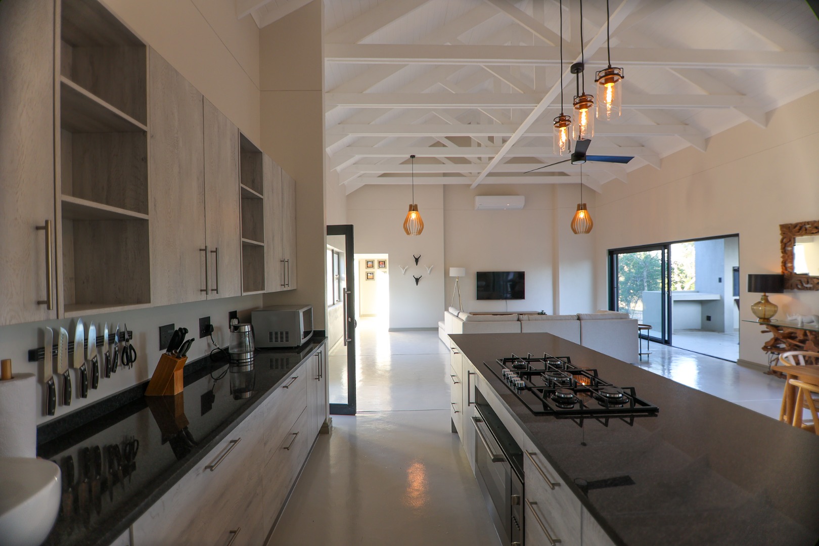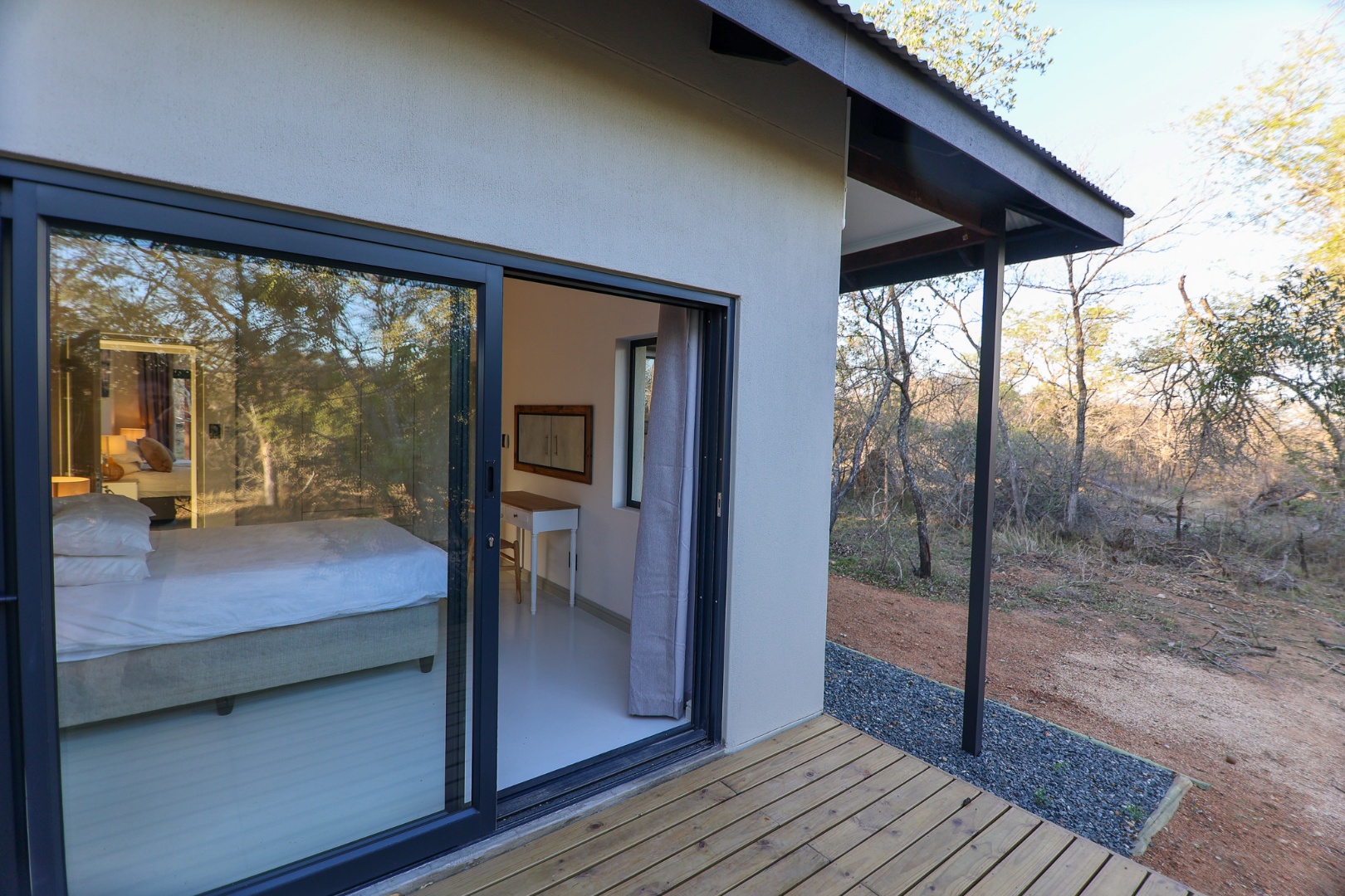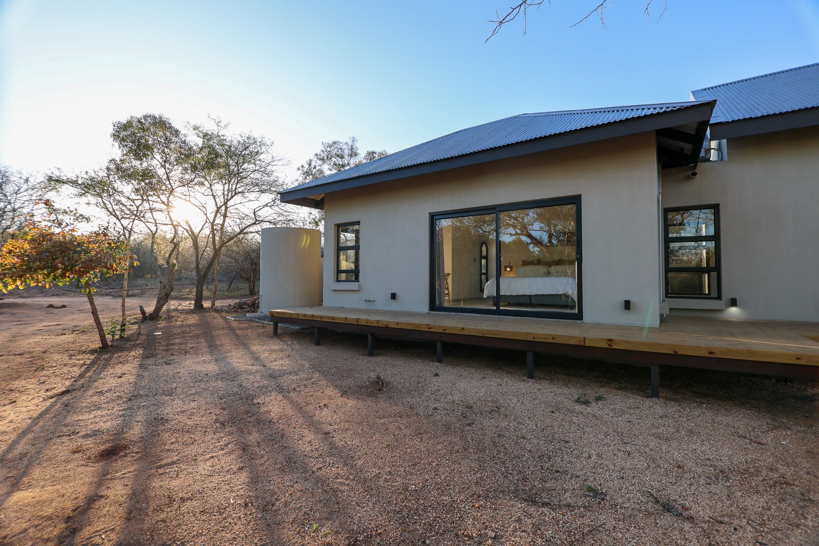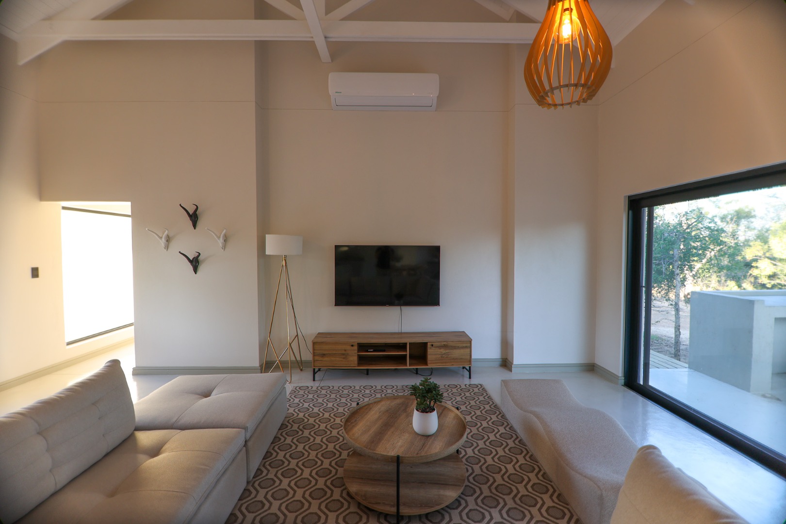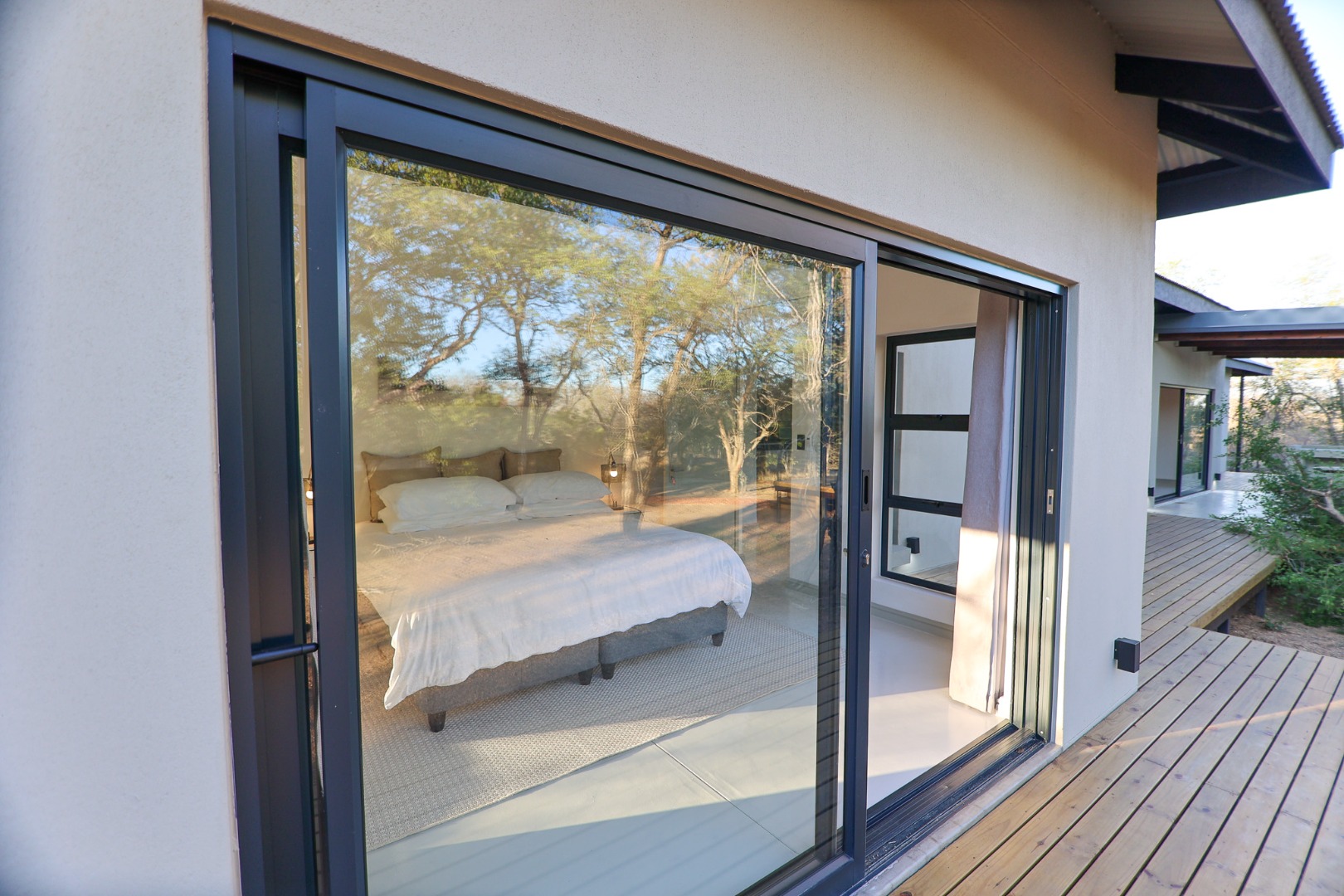 Discover an exceptional furnished rental opportunity within the prestigious Moditlo Nature Reserve, Hoedspruit. This modern 3-bedroom, 3.5-bathroom home offers a seamless blend of contemporary design and immersive bushveld living, ideal for those seeking a tranquil escape or a long-term nature-inspired lifestyle. The property boasts an expansive open-plan layout, featuring high vaulted ceilings with exposed trusses and large sliding doors that invite abundant natural light and connect effortlessly to the outdoors. The interior comprises a well-appointed kitchen, a dedicated dining room, a comfortable lounge, and an additional family TV room, all designed for spacious and functional living. Each of the three bedrooms benefits from an en-suite bathroom, ensuring privacy and convenience for all residents. The home is fully furnished, providing a ready-to-move-in experience with air conditioning for comfort in the African climate and a fireplace for cooler evenings. Step outside to embrace the quintessential bushveld lifestyle. The property features a generous patio, an expansive wooden deck, and a private swimming pool, perfect for relaxation and entertaining amidst the natural surroundings. A lapa further enhances the outdoor living experience, offering a shaded retreat. With 10,000 sqm of erf size, this eco-estate residence provides ample space and a scenic view, integrating seamlessly into the wildlife state environment. Security is paramount within this gated community and security estate, offering 24-hour security, a security post, access gates, electric fencing, and security gates for peace of mind. This property offers a unique opportunity to reside within a secure nature reserve, combining luxury with the untamed beauty of South Africa's Lowveld region, a renowned hub for wildlife and country living. Key Features: * Furnished 3-bedroom, 3.5-bathroom home * Open-plan living with vaulted ceilings * Private swimming pool, deck, and patio * Air conditioning and fireplace * Located in Moditlo Nature Reserve * Gated community with 24-hour security * Scenic bushveld views * 10,000 sqm erf size