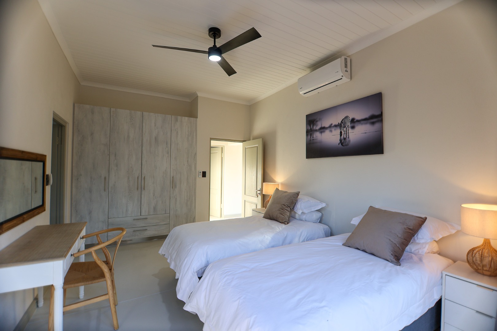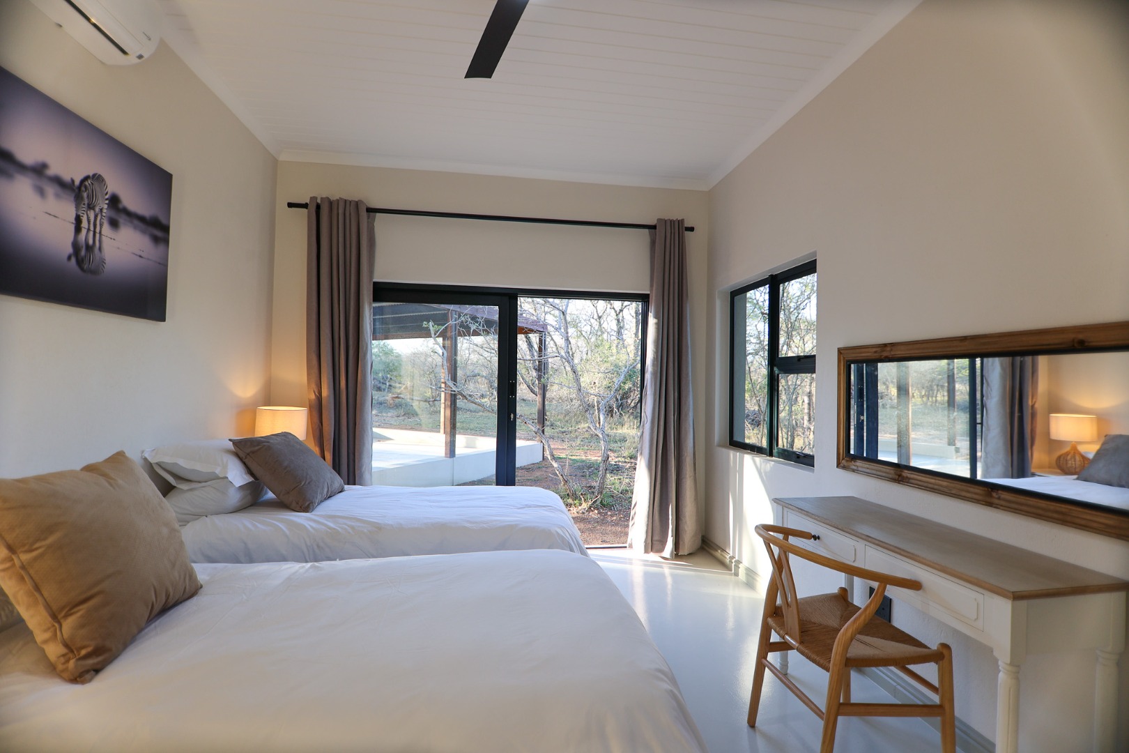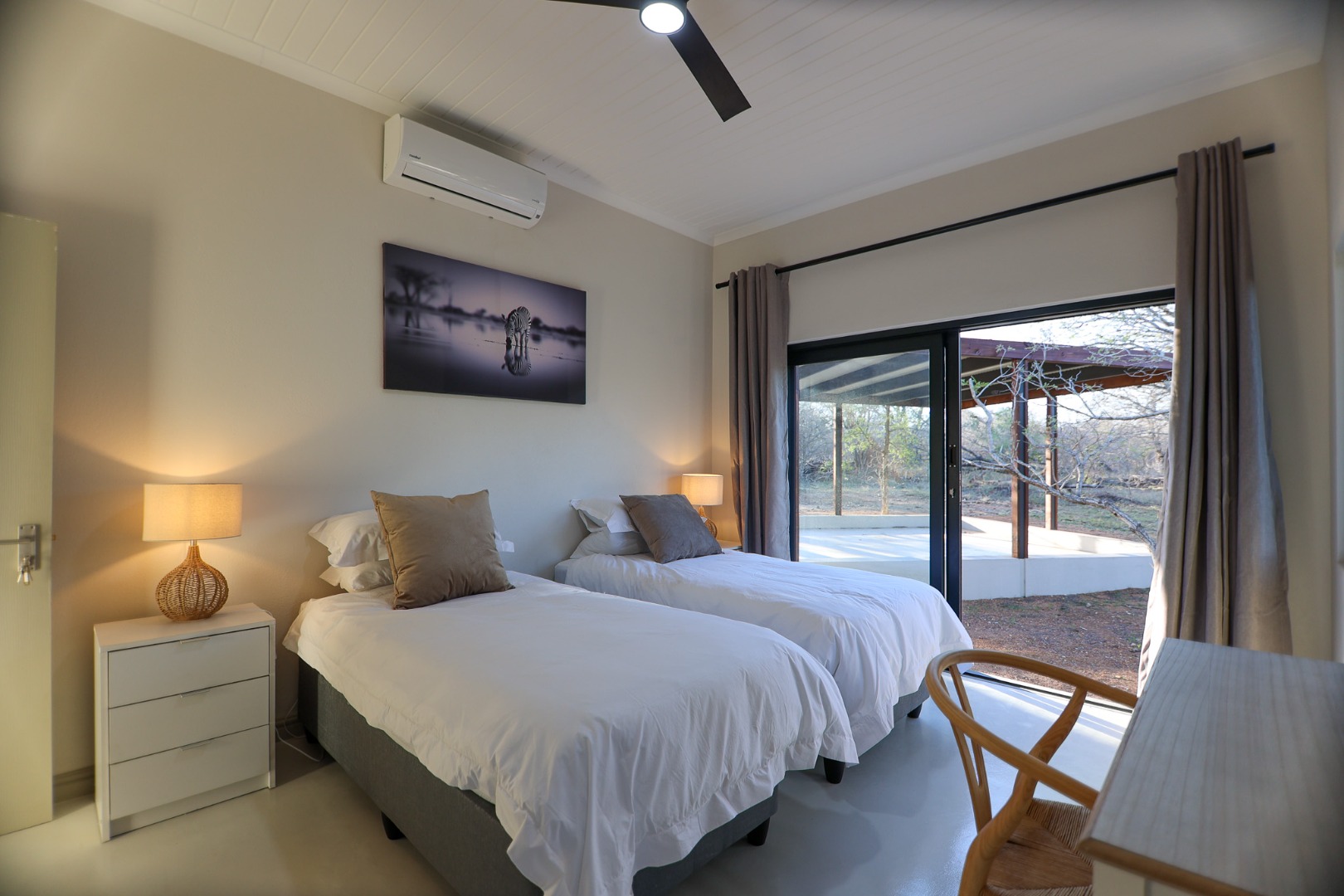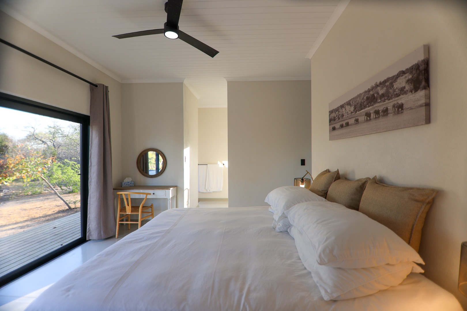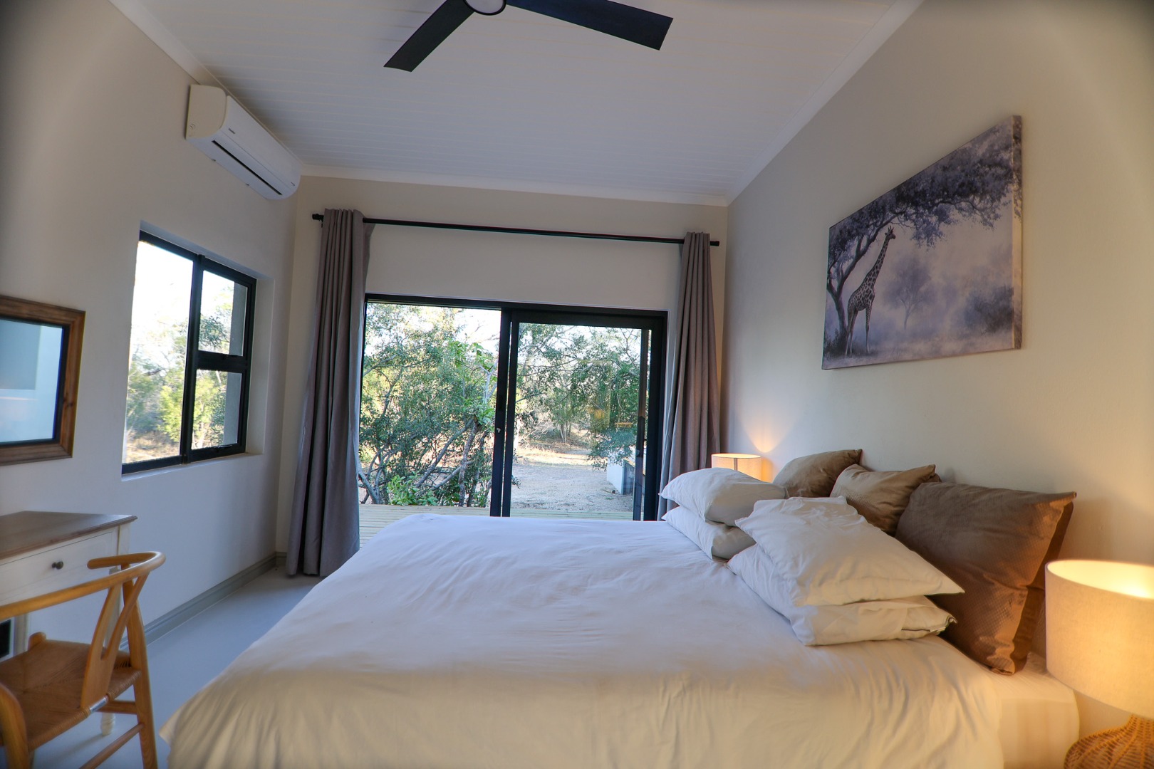 Discover an exceptional furnished rental opportunity within the prestigious Moditlo Nature Reserve, Hoedspruit. This modern 3-bedroom, 3.5-bathroom home offers a seamless blend of contemporary design and immersive bushveld living, ideal for those seeking a tranquil escape or a long-term nature-inspired lifestyle. The property boasts an expansive open-plan layout, featuring high vaulted ceilings with exposed trusses and large sliding doors that invite abundant natural light and connect effortlessly to the outdoors. The interior comprises a well-appointed kitchen, a dedicated dining room, a comfortable lounge, and an additional family TV room, all designed for spacious and functional living. Each of the three bedrooms benefits from an en-suite bathroom, ensuring privacy and convenience for all residents. The home is fully furnished, providing a ready-to-move-in experience with air conditioning for comfort in the African climate and a fireplace for cooler evenings. Step outside to embrace the quintessential bushveld lifestyle. The property features a generous patio, an expansive wooden deck, and a private swimming pool, perfect for relaxation and entertaining amidst the natural surroundings. A lapa further enhances the outdoor living experience, offering a shaded retreat. With 10,000 sqm of erf size, this eco-estate residence provides ample space and a scenic view, integrating seamlessly into the wildlife state environment. Security is paramount within this gated community and security estate, offering 24-hour security, a security post, access gates, electric fencing, and security gates for peace of mind. This property offers a unique opportunity to reside within a secure nature reserve, combining luxury with the untamed beauty of South Africa's Lowveld region, a renowned hub for wildlife and country living. Key Features: * Furnished 3-bedroom, 3.5-bathroom home * Open-plan living with vaulted ceilings * Private swimming pool, deck, and patio * Air conditioning and fireplace * Located in Moditlo Nature Reserve * Gated community with 24-hour security * Scenic bushveld views * 10,000 sqm erf size