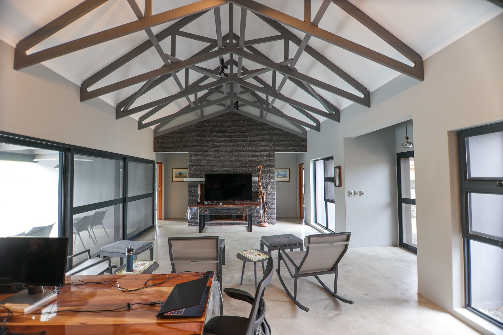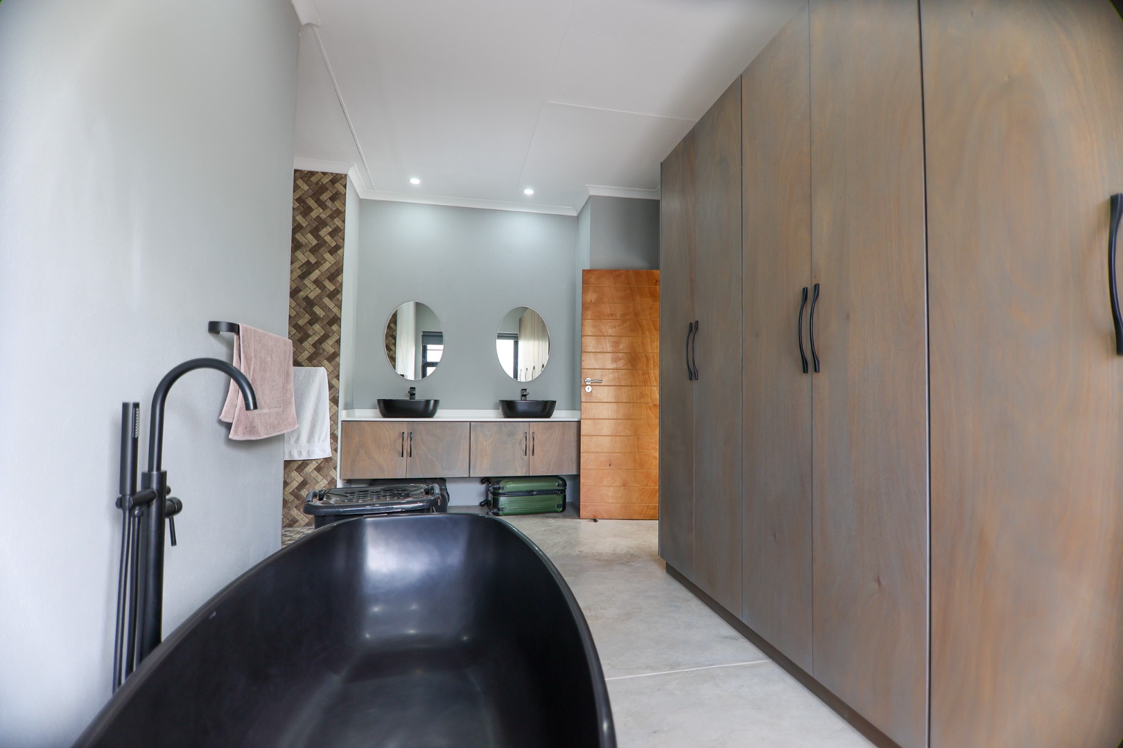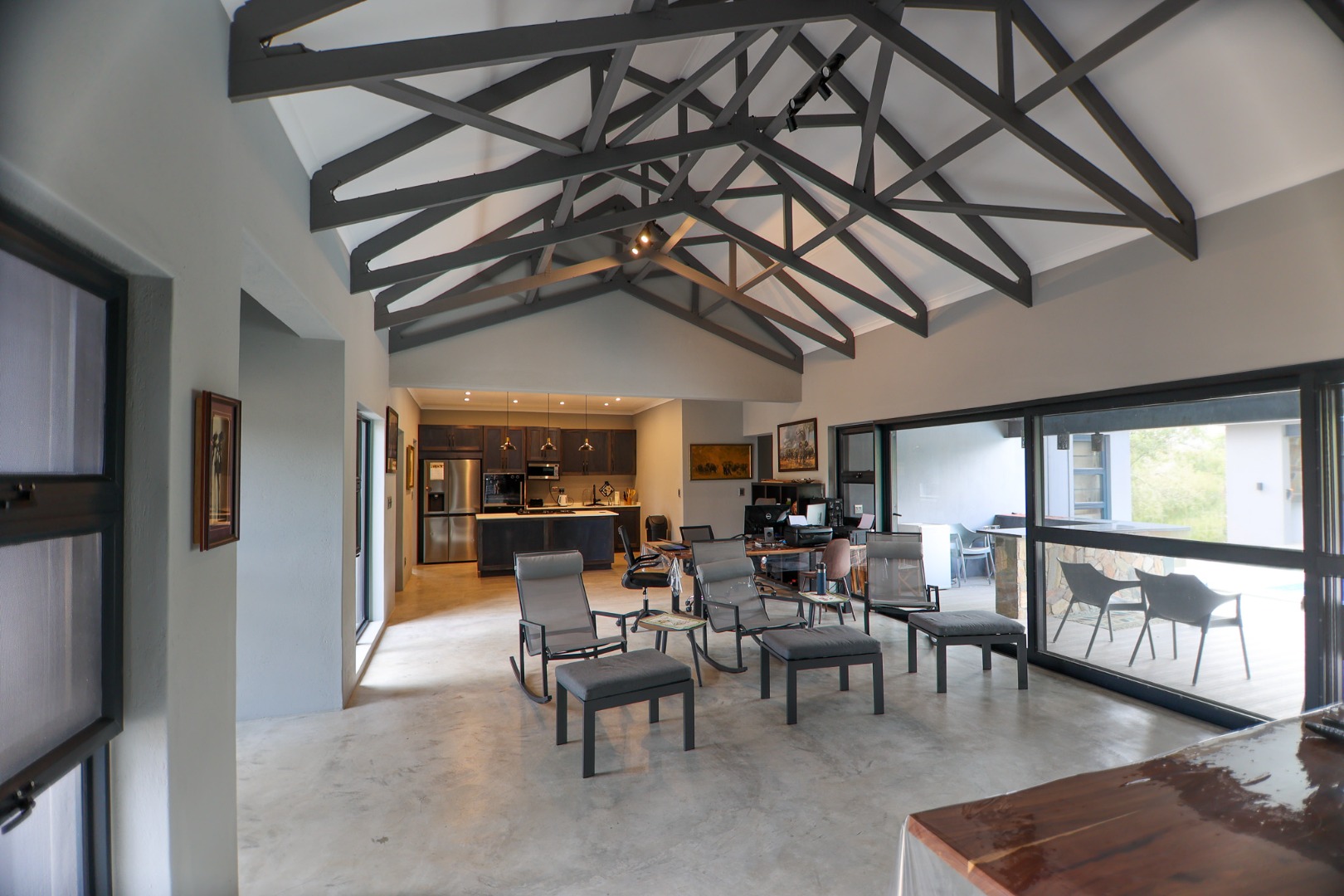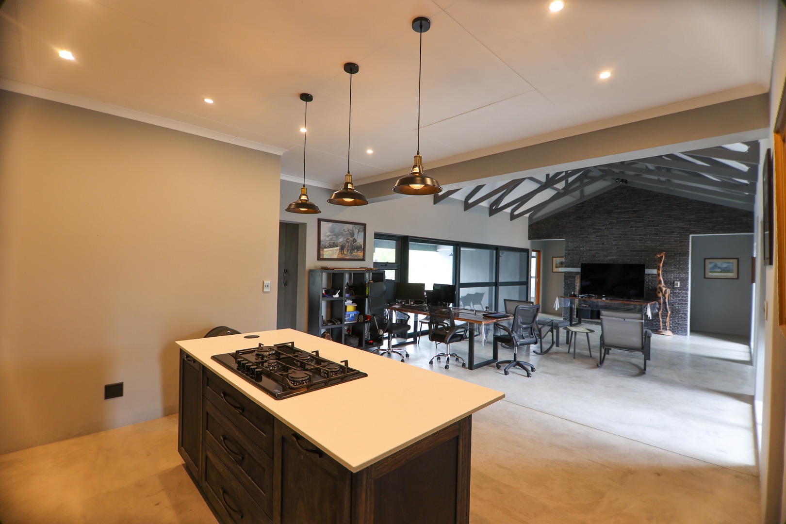 Discover modern bushveld living in this exquisite 3-bedroom, 3-bathroom home, perfectly situated within a secure eco-estate. Each of the three bedrooms boasts an en-suite bathroom, ensuring privacy and comfort. The residence features an open-plan layout, seamlessly connecting the contemporary kitchen, complete with a pantry, to the dining and lounge areas. Large sliding doors enhance the indoor-outdoor flow, leading to expansive entertainment spaces.