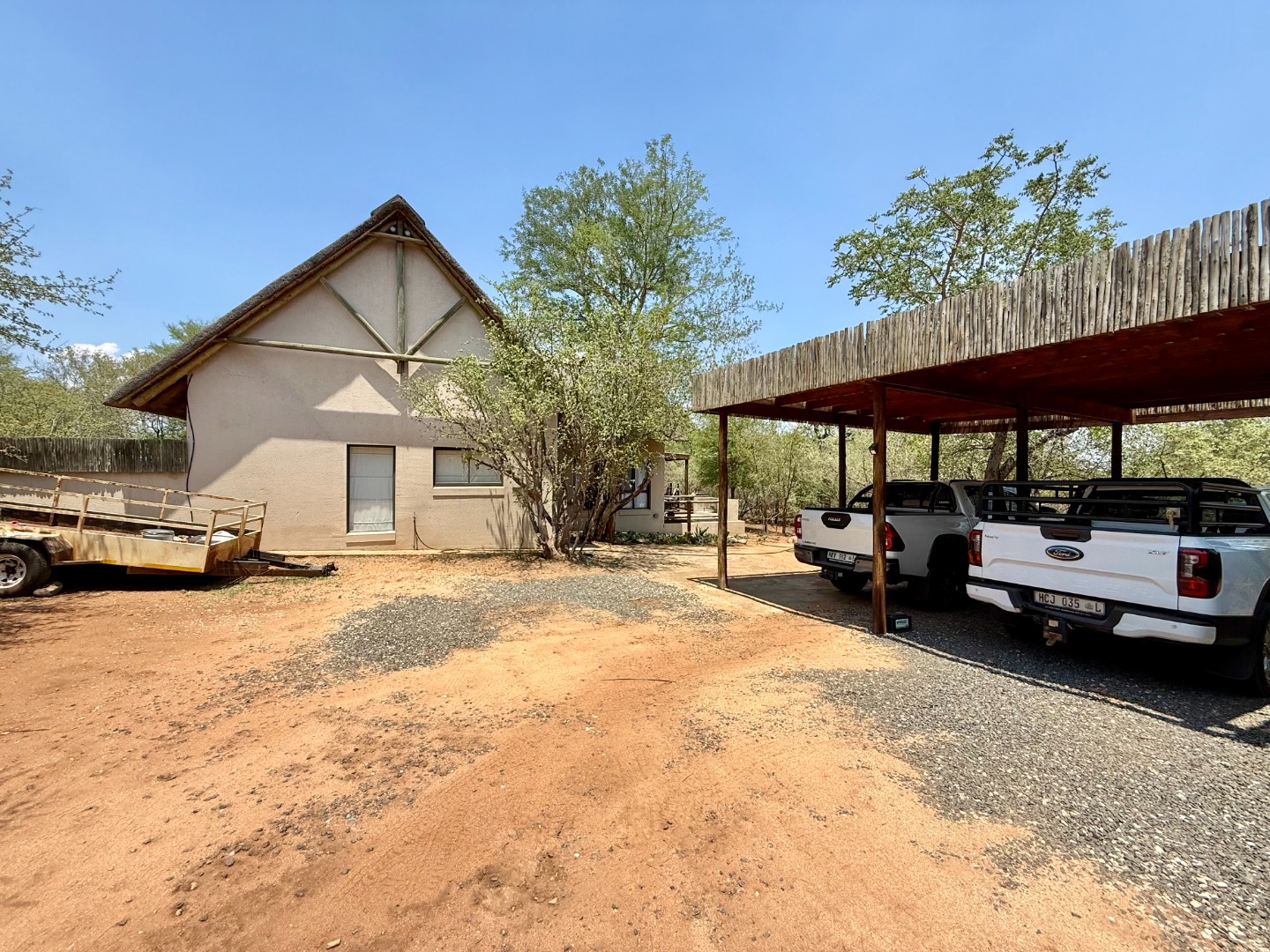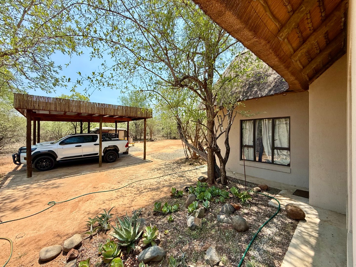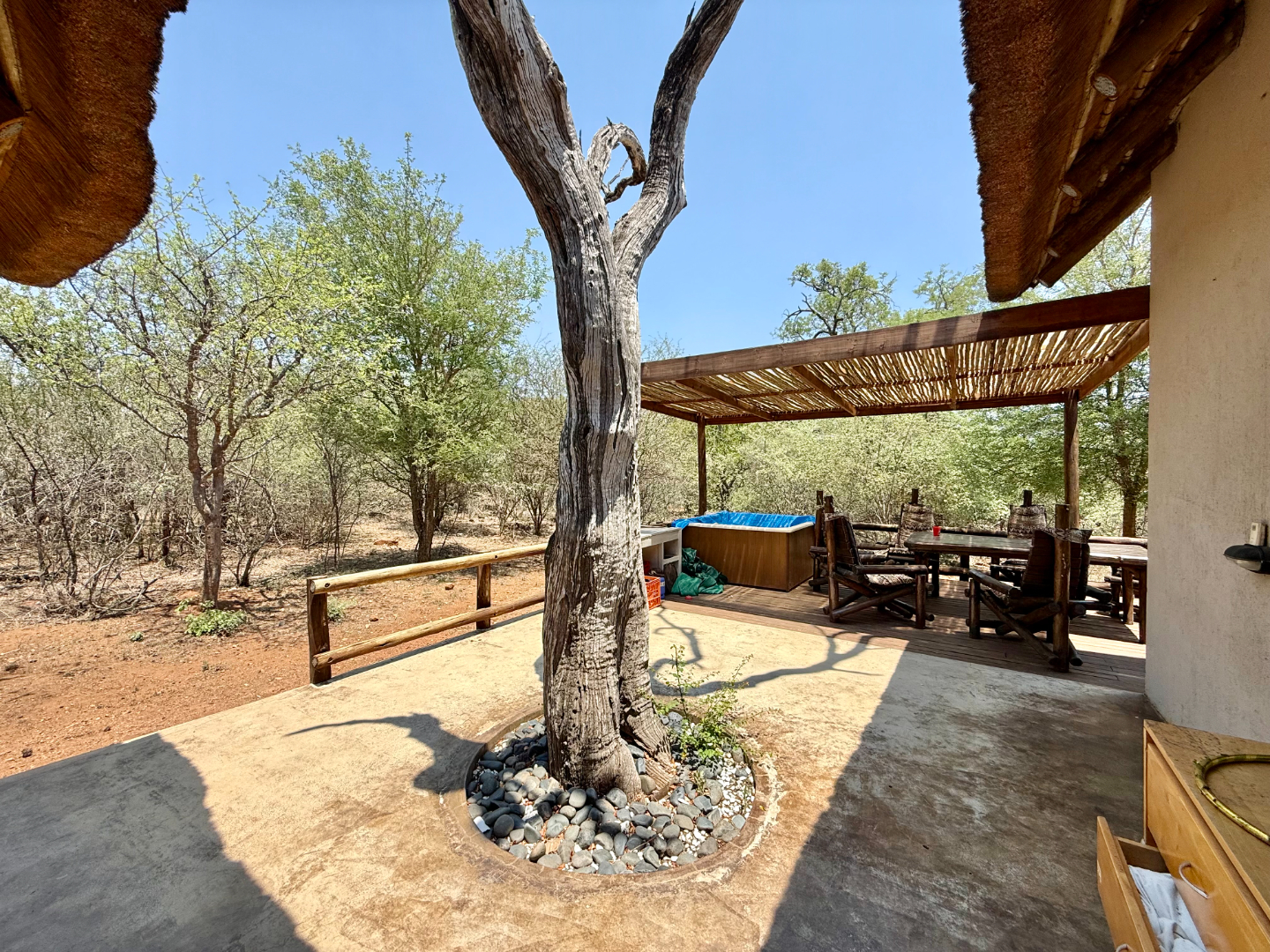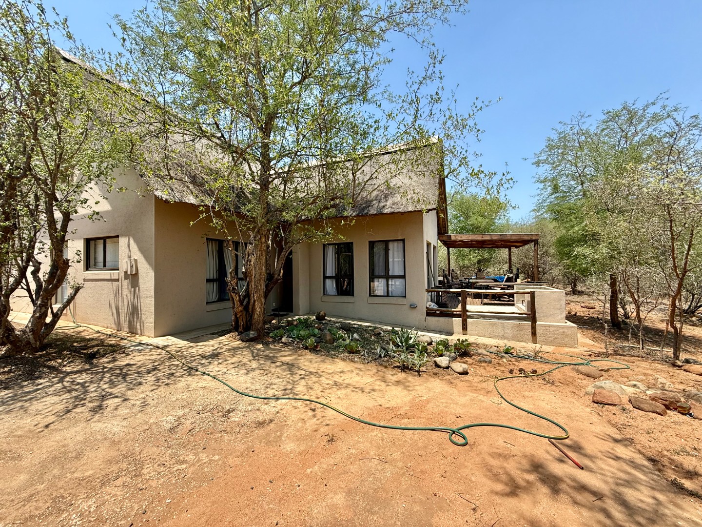 Discover an exceptional rental opportunity within the prestigious Raptors View Wildlife Estate in Hoedspruit, South Africa. This charming 3-bedroom, 2-bathroom home offers a unique bushveld living experience, blending rustic elegance with modern comfort. The residence features a spacious open-plan layout, seamlessly connecting the lounge, dining area, and a well-appointed kitchen with a pantry. Striking vaulted thatched ceilings and pressed ceilings add character, while sliding doors invite natural light and scenic views. One bathroom is en-suite, providing privacy.