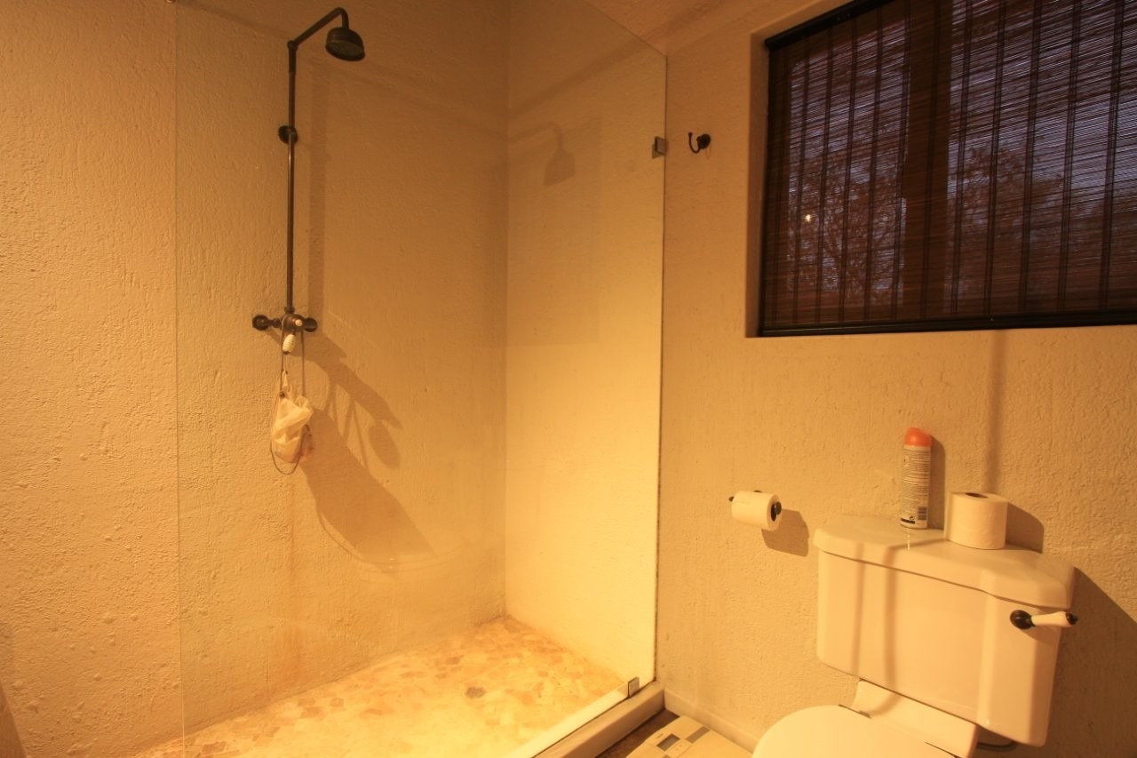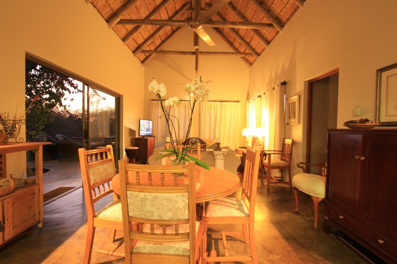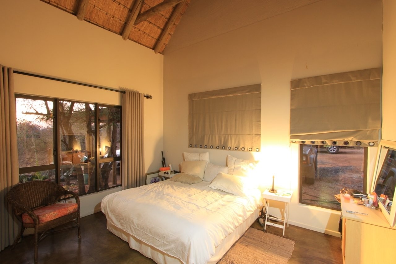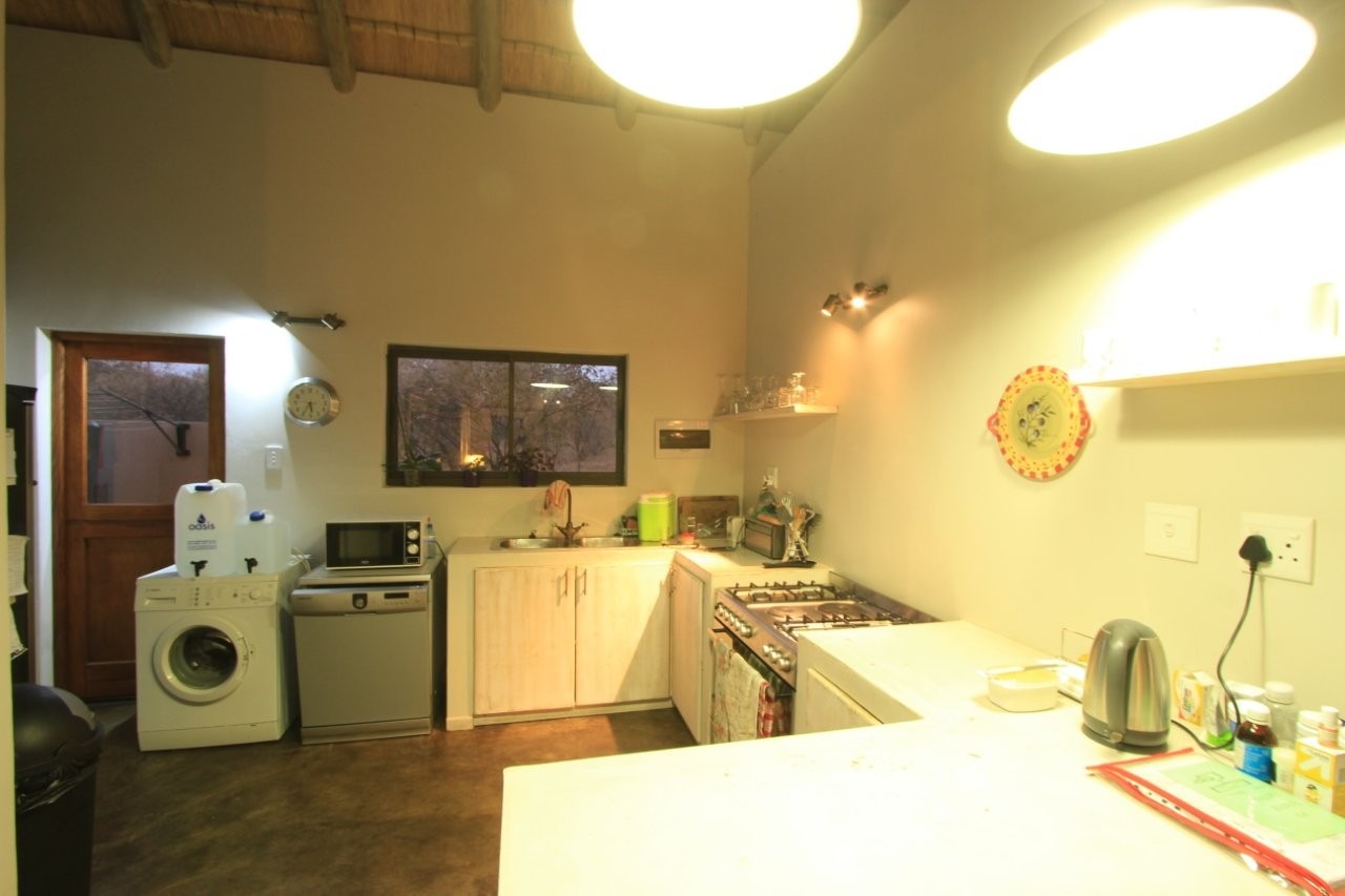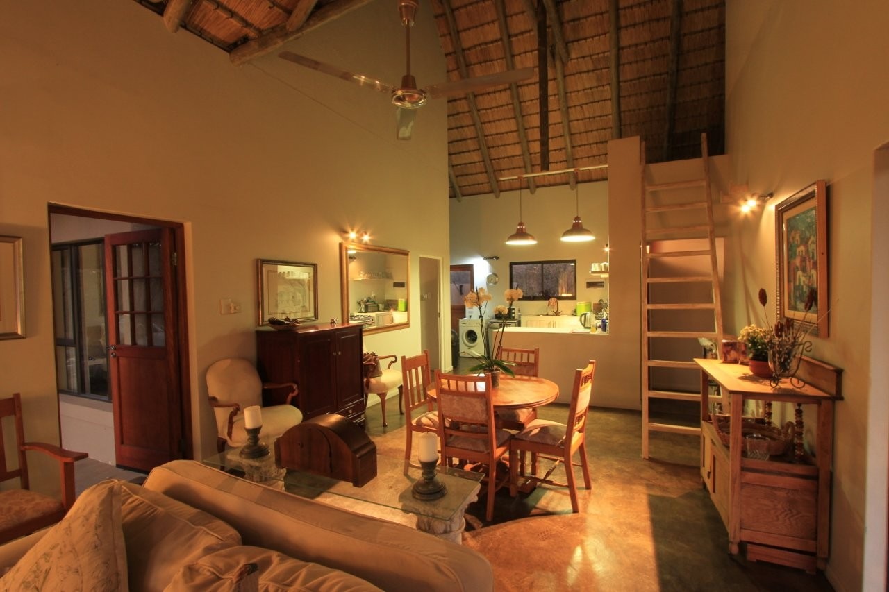 Discover an exceptional rental opportunity within the prestigious Raptors View Wildlife Estate in Hoedspruit, South Africa. This charming 3-bedroom, 2-bathroom home offers a unique bushveld living experience, blending rustic elegance with modern comfort. The residence features a spacious open-plan layout, seamlessly connecting the lounge, dining area, and a well-appointed kitchen with a pantry. Striking vaulted thatched ceilings and pressed ceilings add character, while sliding doors invite natural light and scenic views. One bathroom is en-suite, providing privacy.