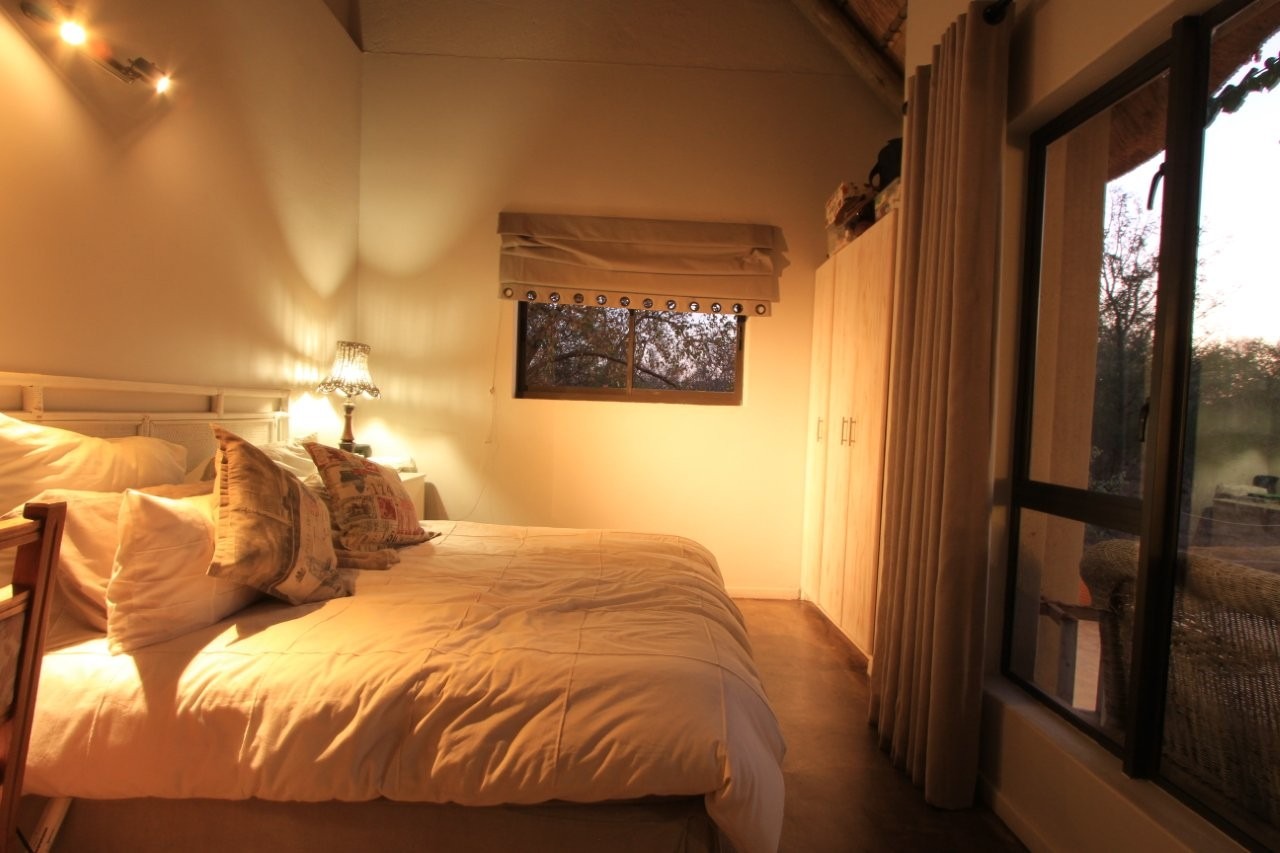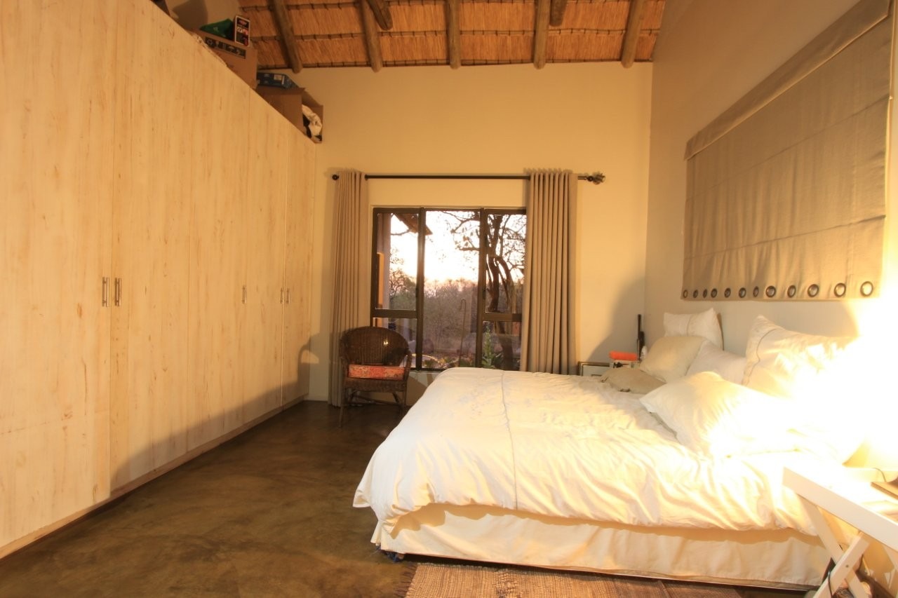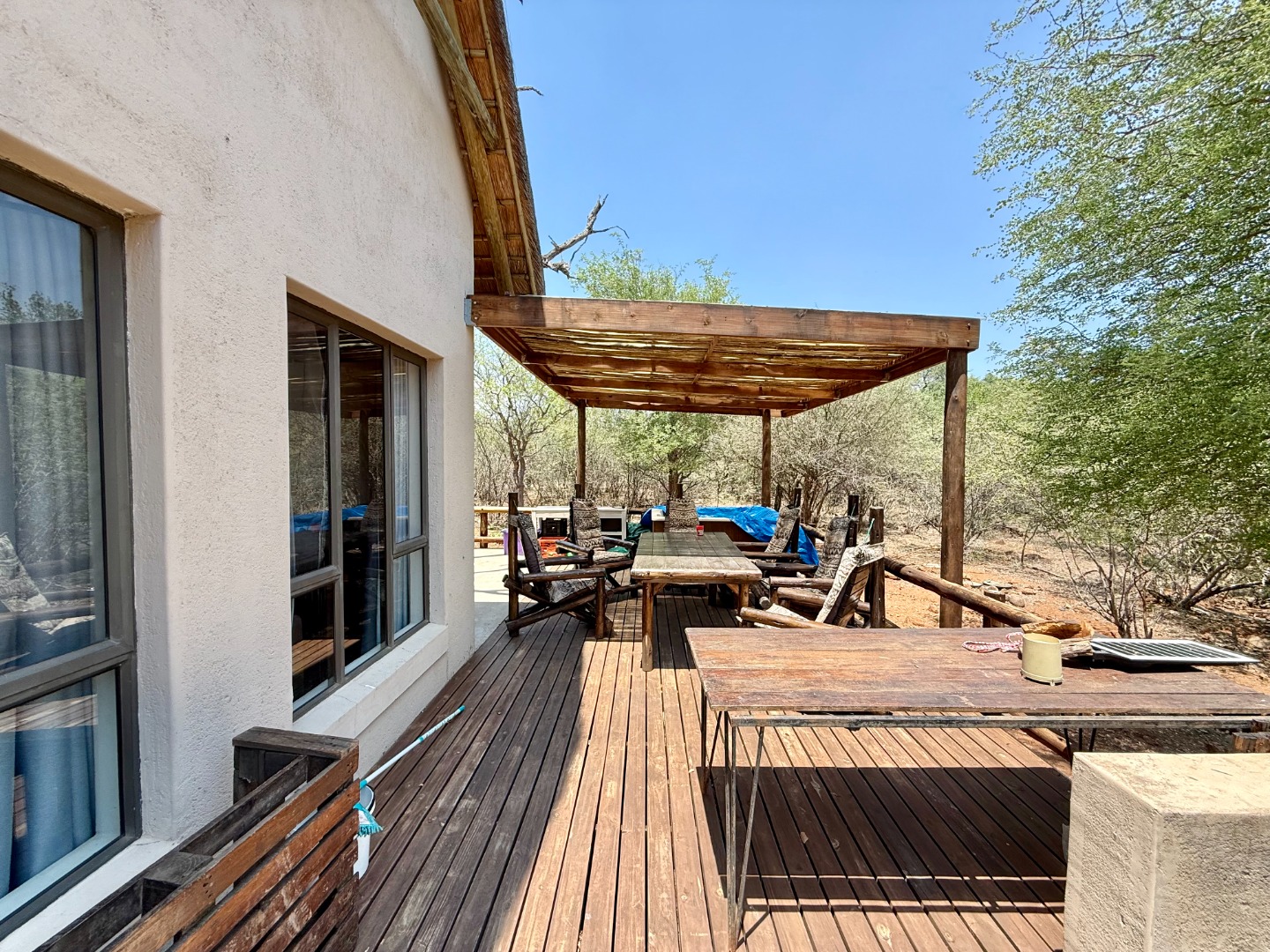 Discover an exceptional rental opportunity within the prestigious Raptors View Wildlife Estate in Hoedspruit, South Africa. This charming 3-bedroom, 2-bathroom home offers a unique bushveld living experience, blending rustic elegance with modern comfort. The residence features a spacious open-plan layout, seamlessly connecting the lounge, dining area, and a well-appointed kitchen with a pantry. Striking vaulted thatched ceilings and pressed ceilings add character, while sliding doors invite natural light and scenic views. One bathroom is en-suite, providing privacy.