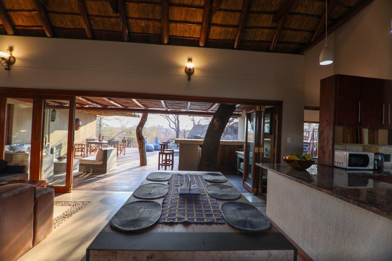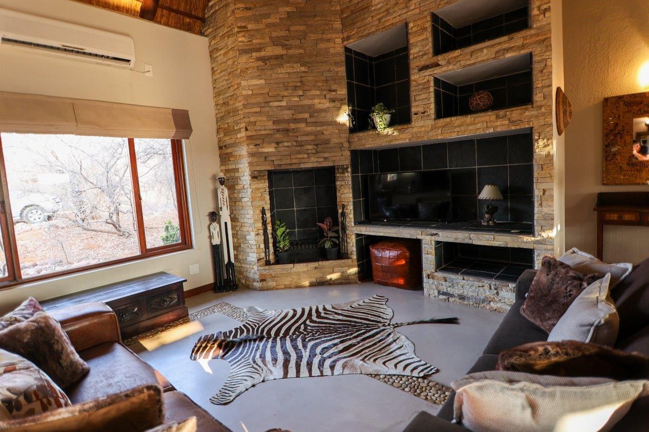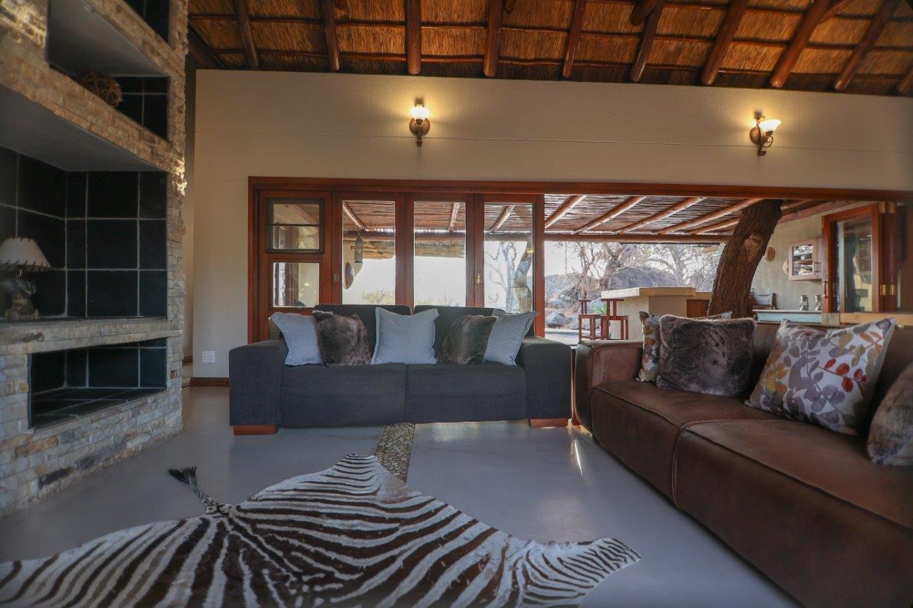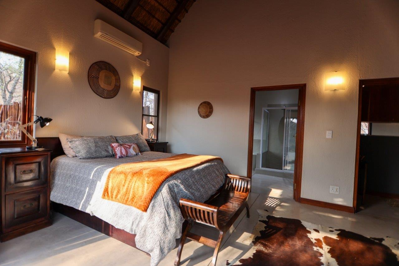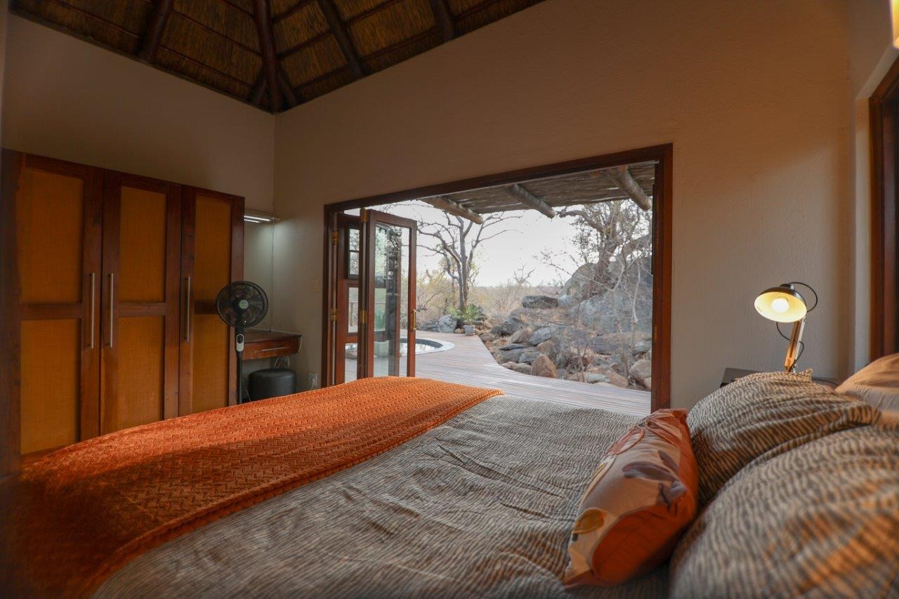 The outside entertainment area is a serene oasis, with two outdoor lounges, sparkling pool, built-in bar and braai, and a raised boma area offering a magnificent mountain view, perfect for evening gatherings watching the sun go down. The house itself is meticulously maintained, with modern fittings and comfortable, air conditioned, living spaces. It is fully furnished, including TV, oven/hob, fridge freezer, washing machine, dish washer etc, with bedding and towels included, and is also equipped with battery power backup. There are three double bedrooms, with their own en-suite bathrooms, each with bifold doors opening up onto the bushveld, with two luxurious outdoor showers completing the immersive experience and providing that unique connection to nature.