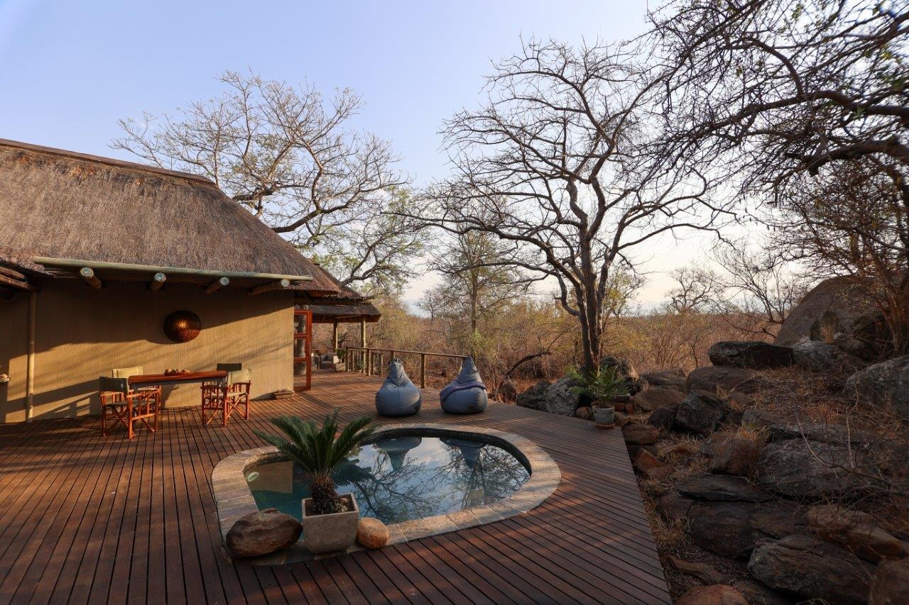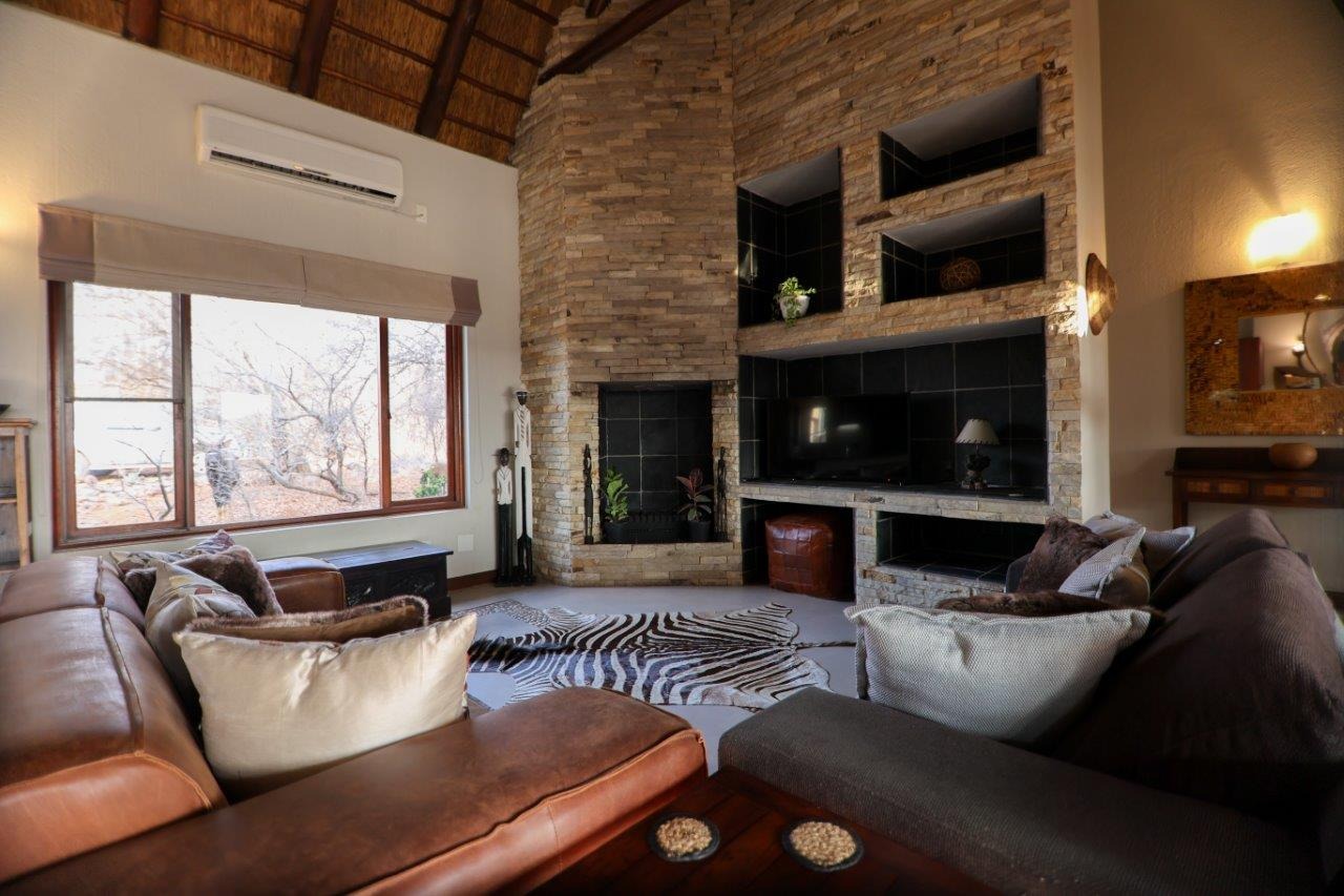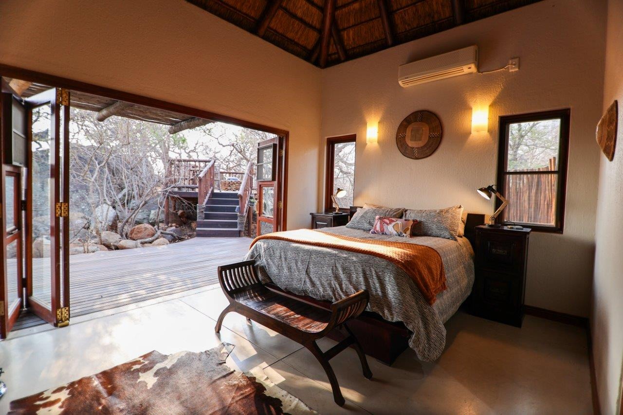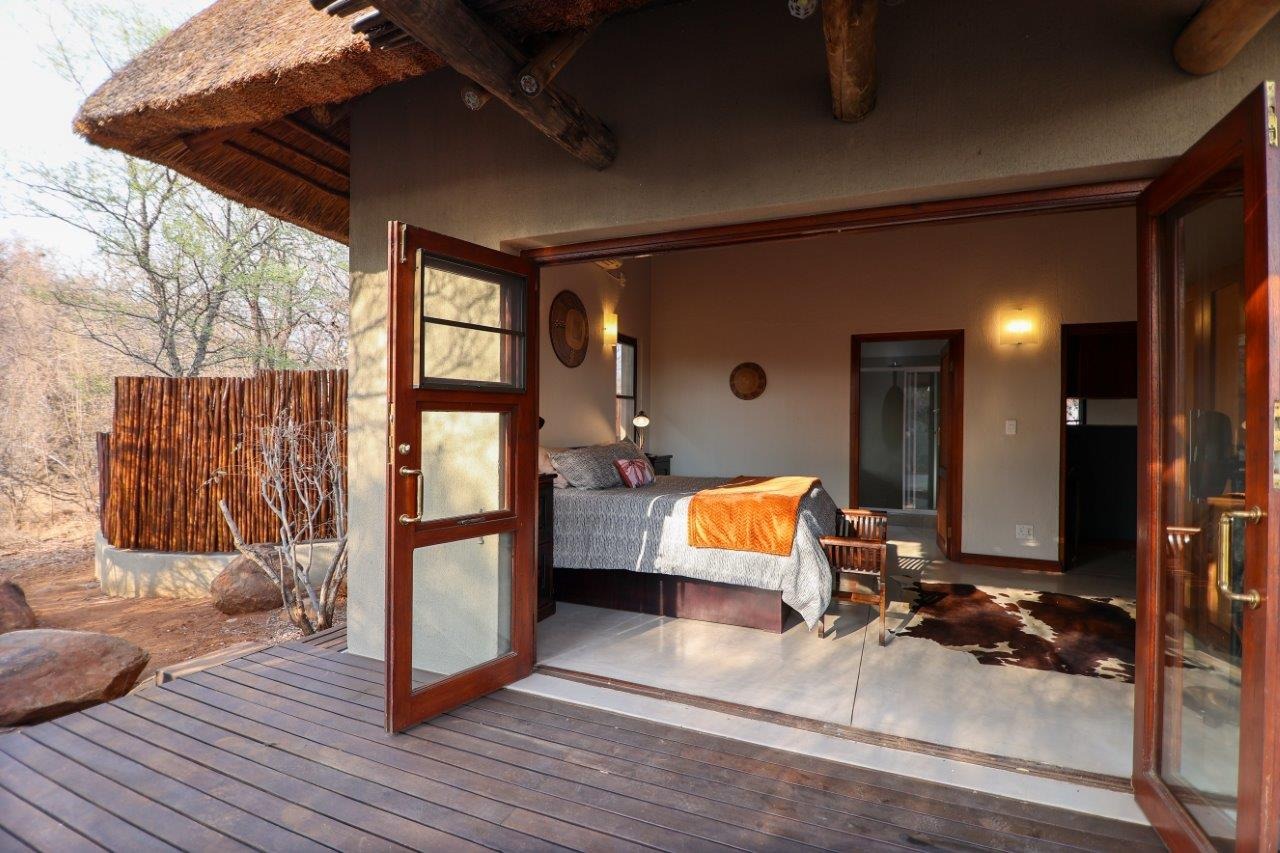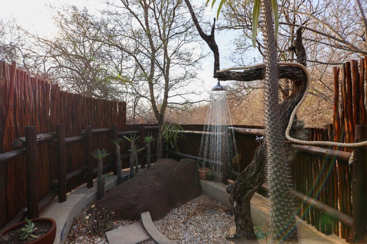 The outside entertainment area is a serene oasis, with two outdoor lounges, sparkling pool, built-in bar and braai, and a raised boma area offering a magnificent mountain view, perfect for evening gatherings watching the sun go down. The house itself is meticulously maintained, with modern fittings and comfortable, air conditioned, living spaces. It is fully furnished, including TV, oven/hob, fridge freezer, washing machine, dish washer etc, with bedding and towels included, and is also equipped with battery power backup. There are three double bedrooms, with their own en-suite bathrooms, each with bifold doors opening up onto the bushveld, with two luxurious outdoor showers completing the immersive experience and providing that unique connection to nature.