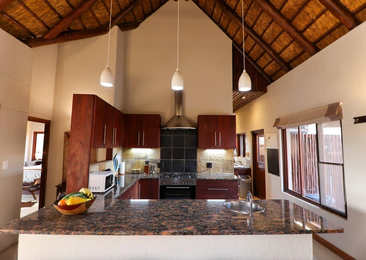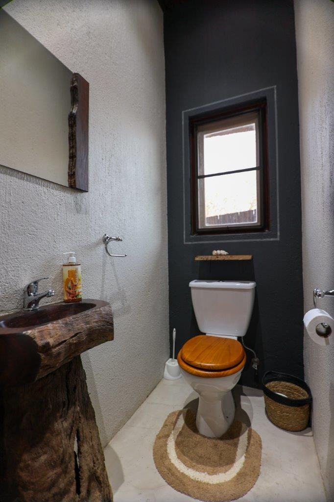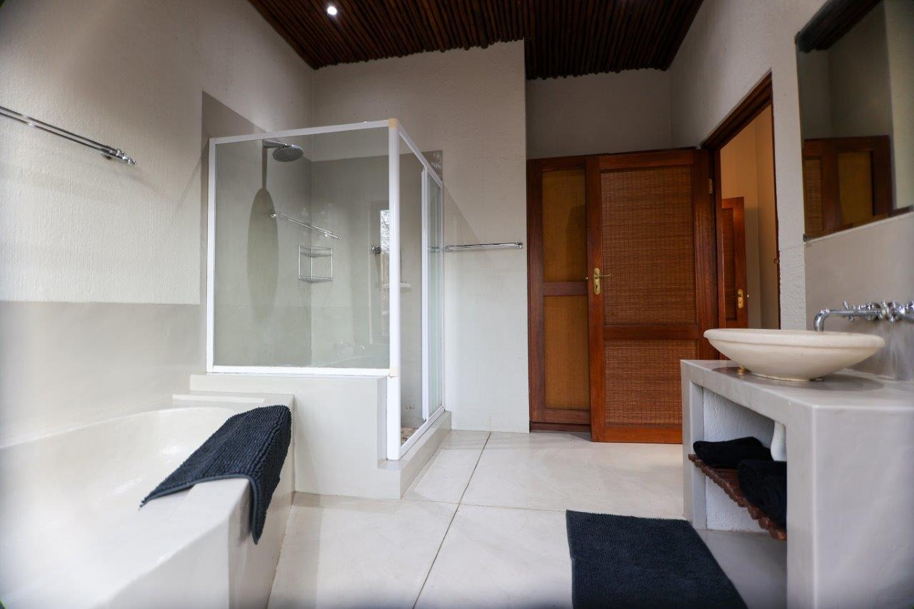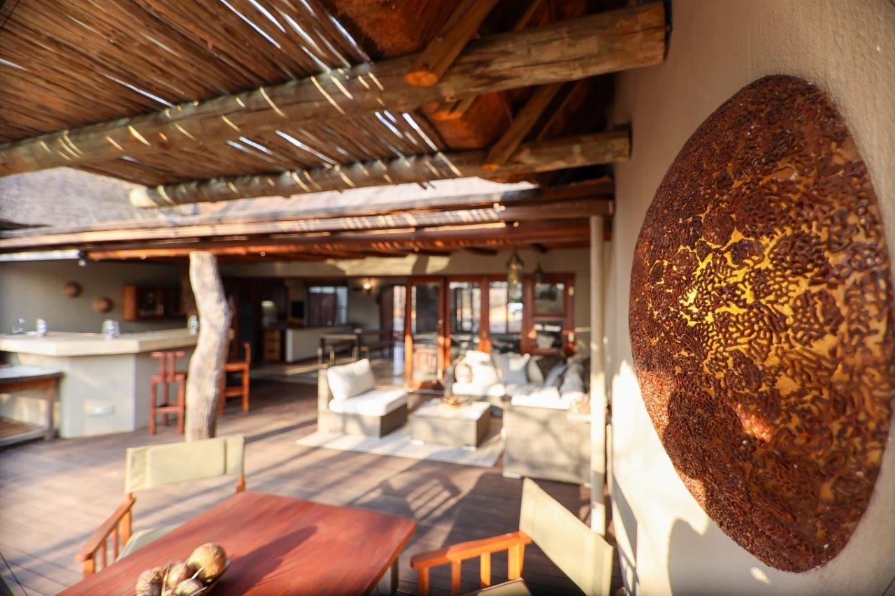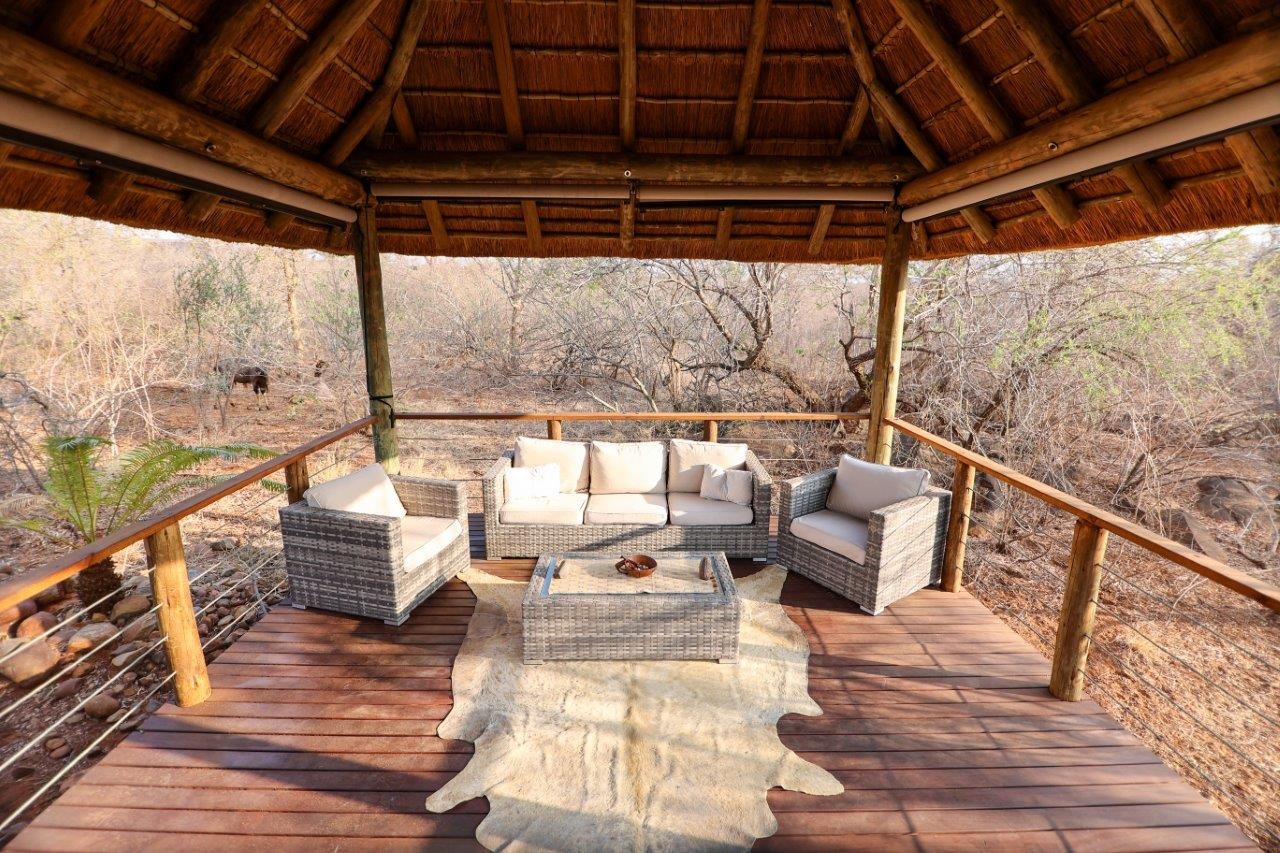 The outside entertainment area is a serene oasis, with two outdoor lounges, sparkling pool, built-in bar and braai, and a raised boma area offering a magnificent mountain view, perfect for evening gatherings watching the sun go down. The house itself is meticulously maintained, with modern fittings and comfortable, air conditioned, living spaces. It is fully furnished, including TV, oven/hob, fridge freezer, washing machine, dish washer etc, with bedding and towels included, and is also equipped with battery power backup. There are three double bedrooms, with their own en-suite bathrooms, each with bifold doors opening up onto the bushveld, with two luxurious outdoor showers completing the immersive experience and providing that unique connection to nature.