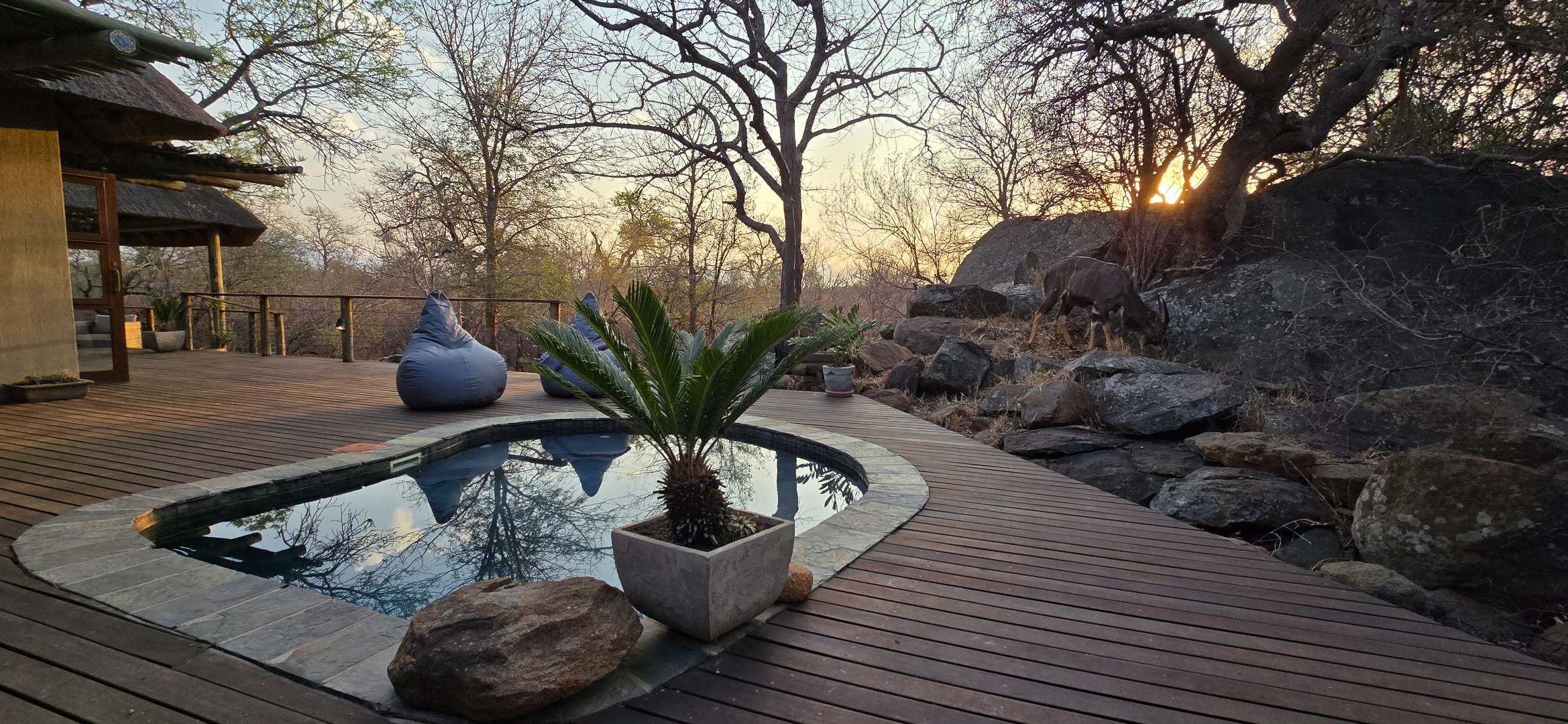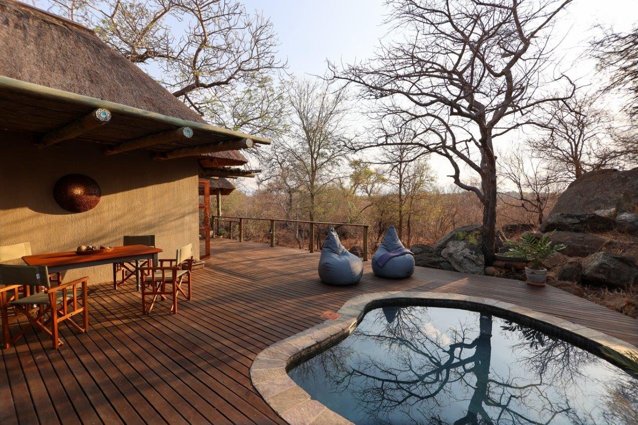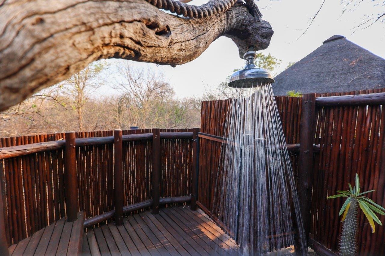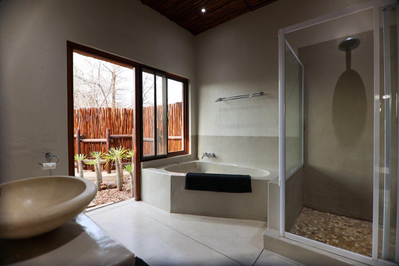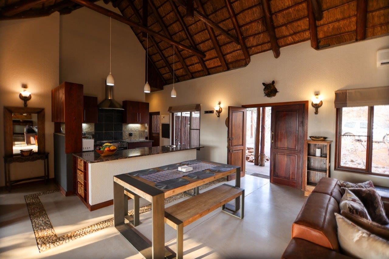 The outside entertainment area is a serene oasis, with two outdoor lounges, sparkling pool, built-in bar and braai, and a raised boma area offering a magnificent mountain view, perfect for evening gatherings watching the sun go down. The house itself is meticulously maintained, with modern fittings and comfortable, air conditioned, living spaces. It is fully furnished, including TV, oven/hob, fridge freezer, washing machine, dish washer etc, with bedding and towels included, and is also equipped with battery power backup. There are three double bedrooms, with their own en-suite bathrooms, each with bifold doors opening up onto the bushveld, with two luxurious outdoor showers completing the immersive experience and providing that unique connection to nature.