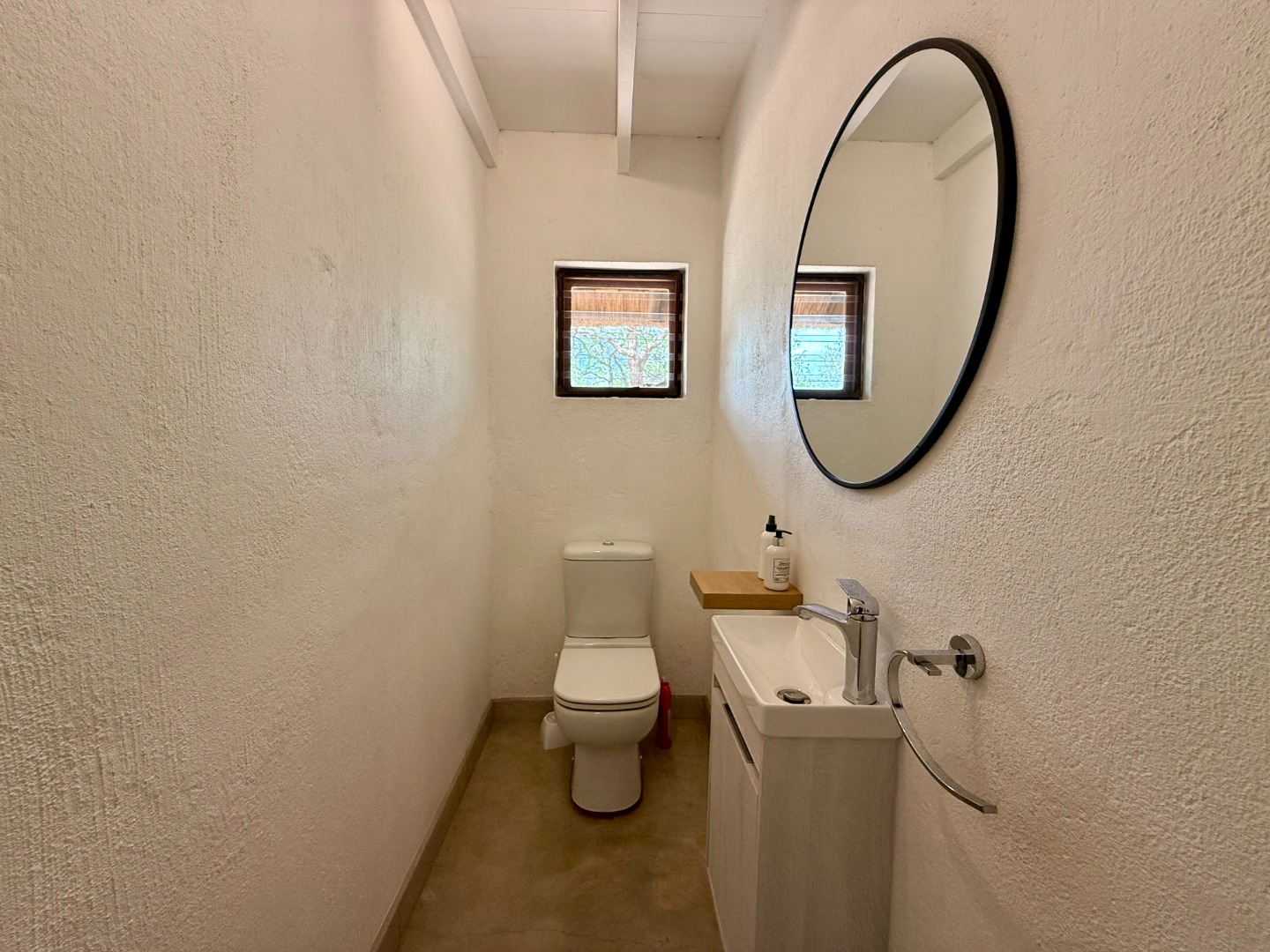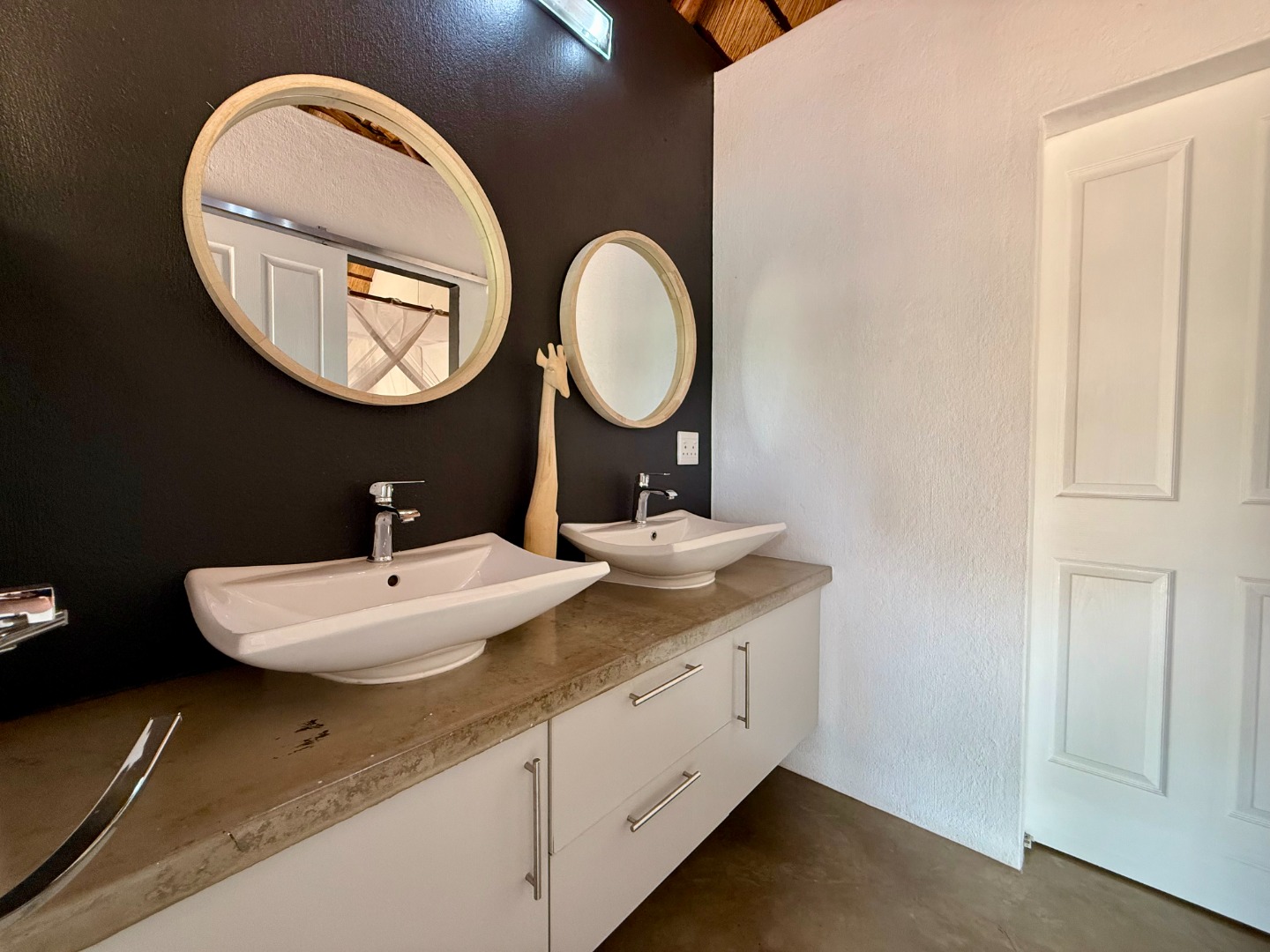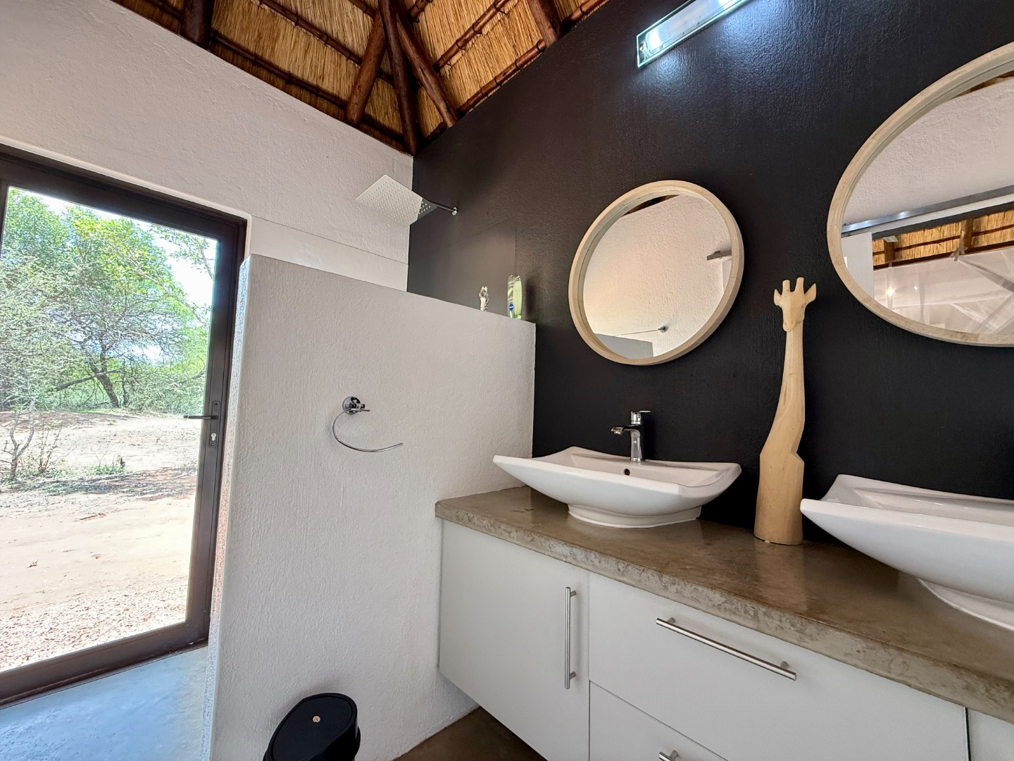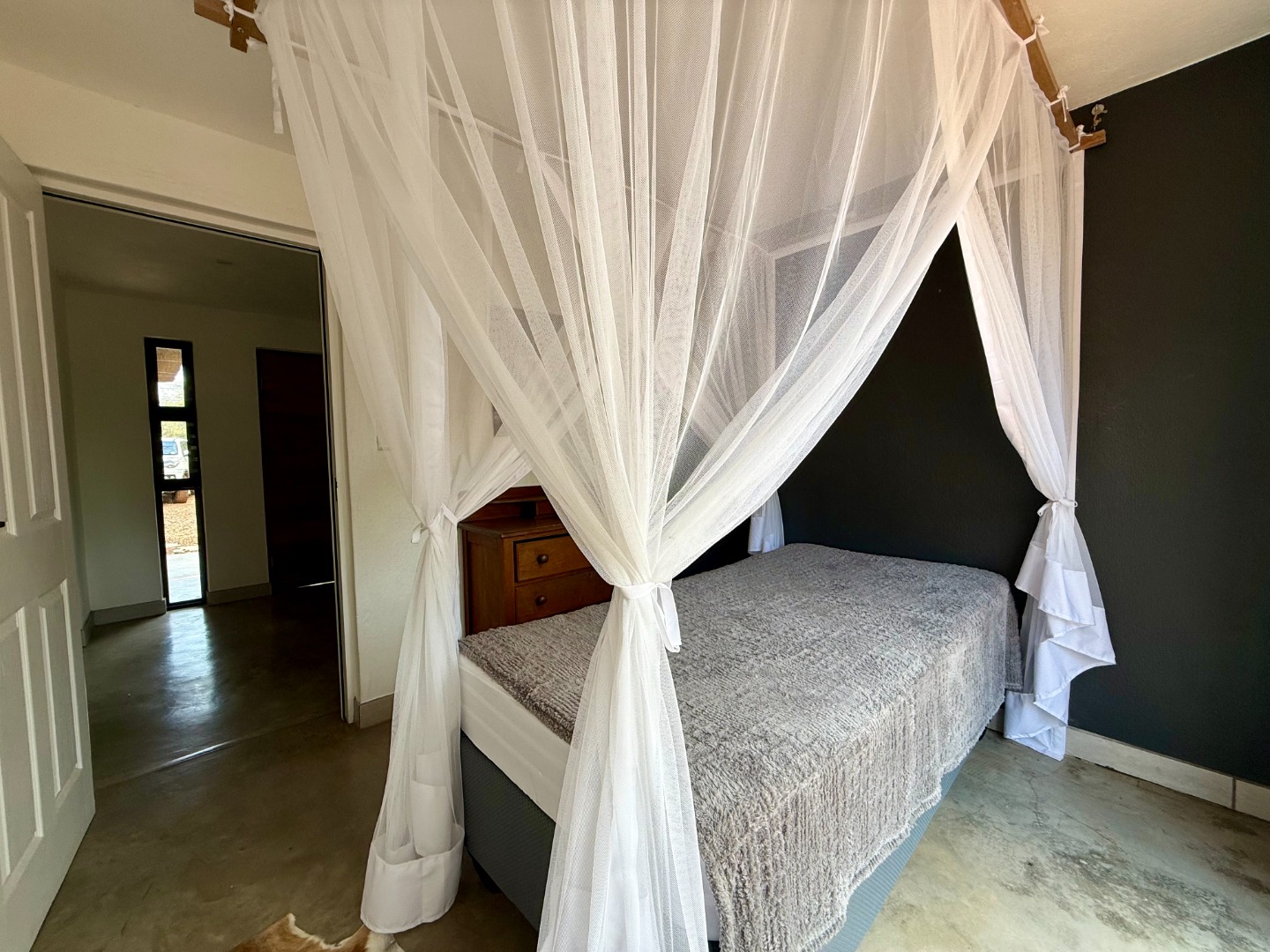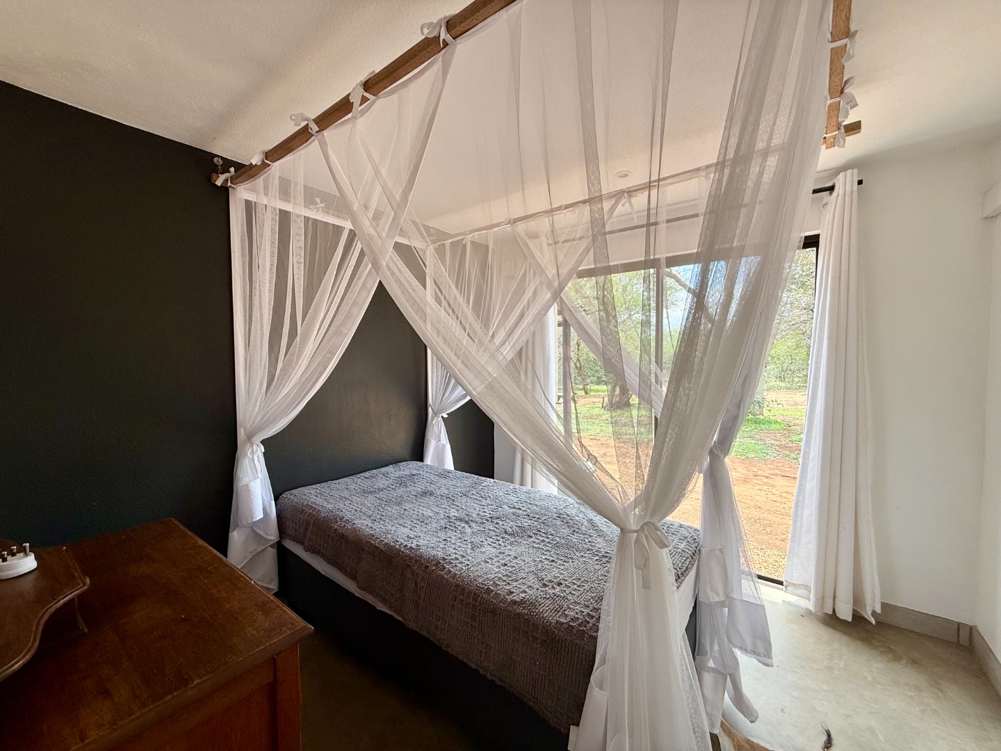 Step outside to embrace the quintessential bushveld lifestyle. The property features an expansive wooden deck, perfect for relaxation and entertaining, complemented by a refreshing plunge pool. A covered patio, lapa, and built-in braai area provide ideal settings for outdoor dining and social gatherings, all set within a private garden with scenic views. Comfort is assured with air conditioning throughout and a cosy fireplace for cooler evenings. Additional practicalities include a laundry area and ample storage.